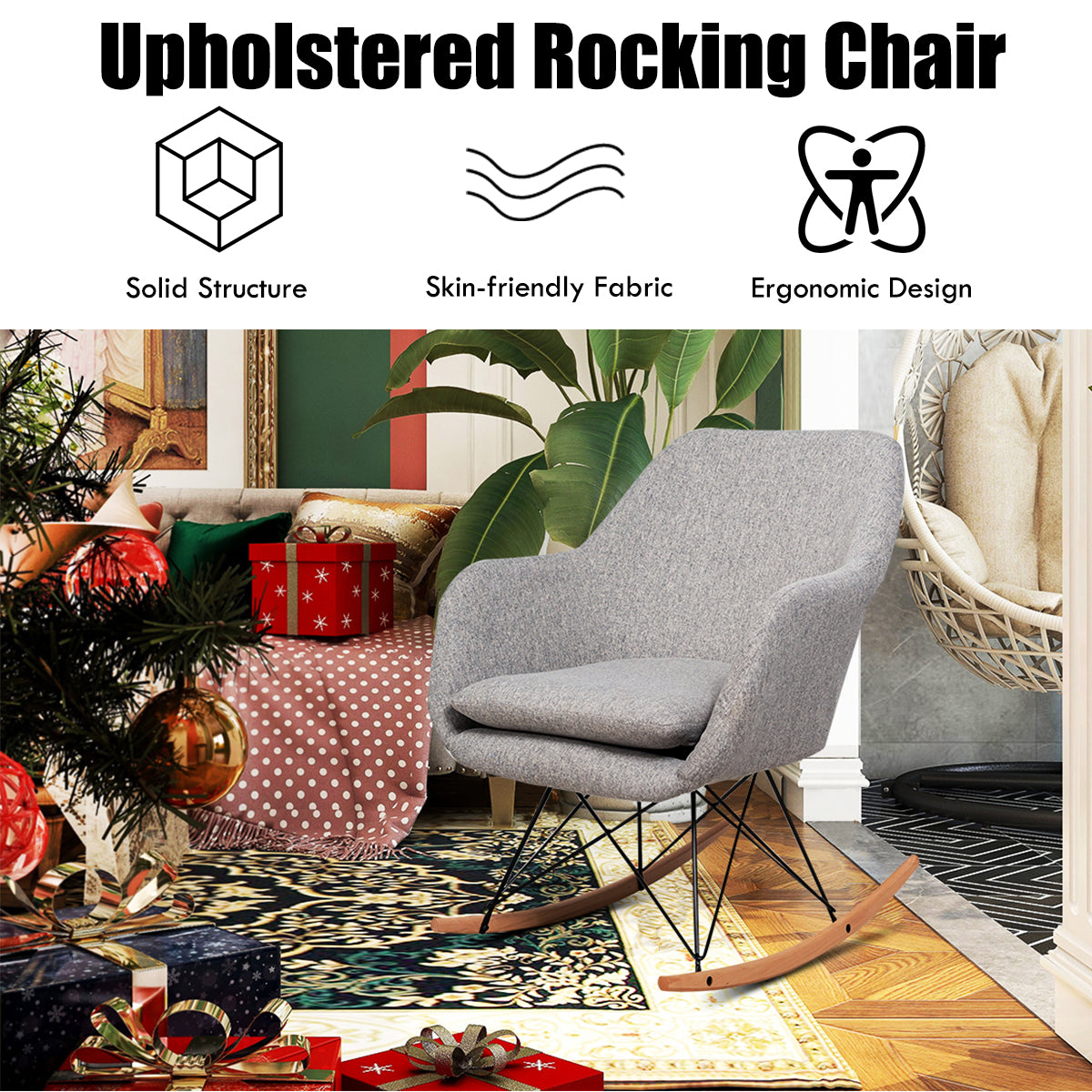 Comfortable Rocking Experience: Thanks to the steel base with solid beech wood rocker bottom, this rocking chair will give you a comfortable and safe sitting experience. In addition, its curved shape provides you with a rocking feeling that will help you fall asleep quickly and have better relaxation.