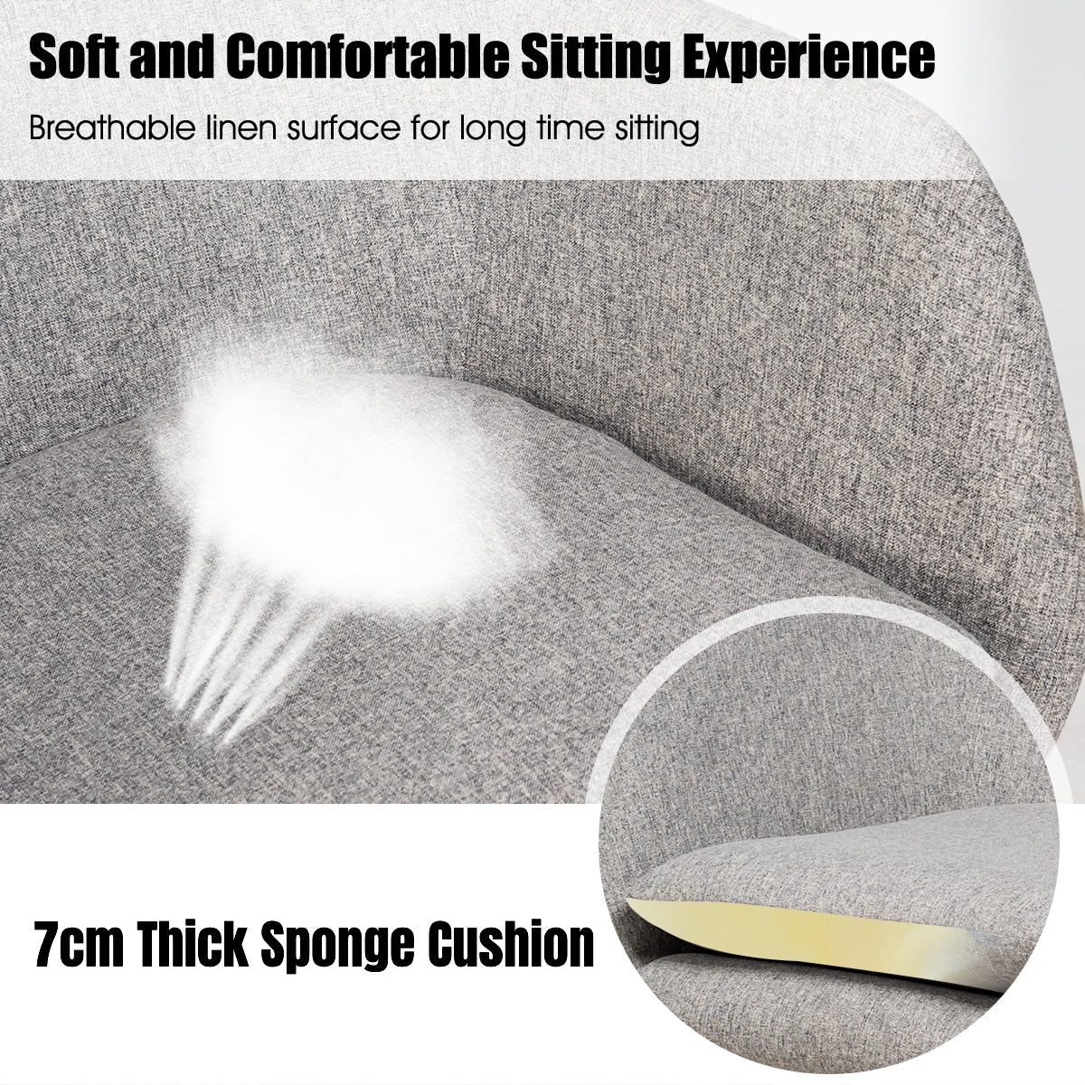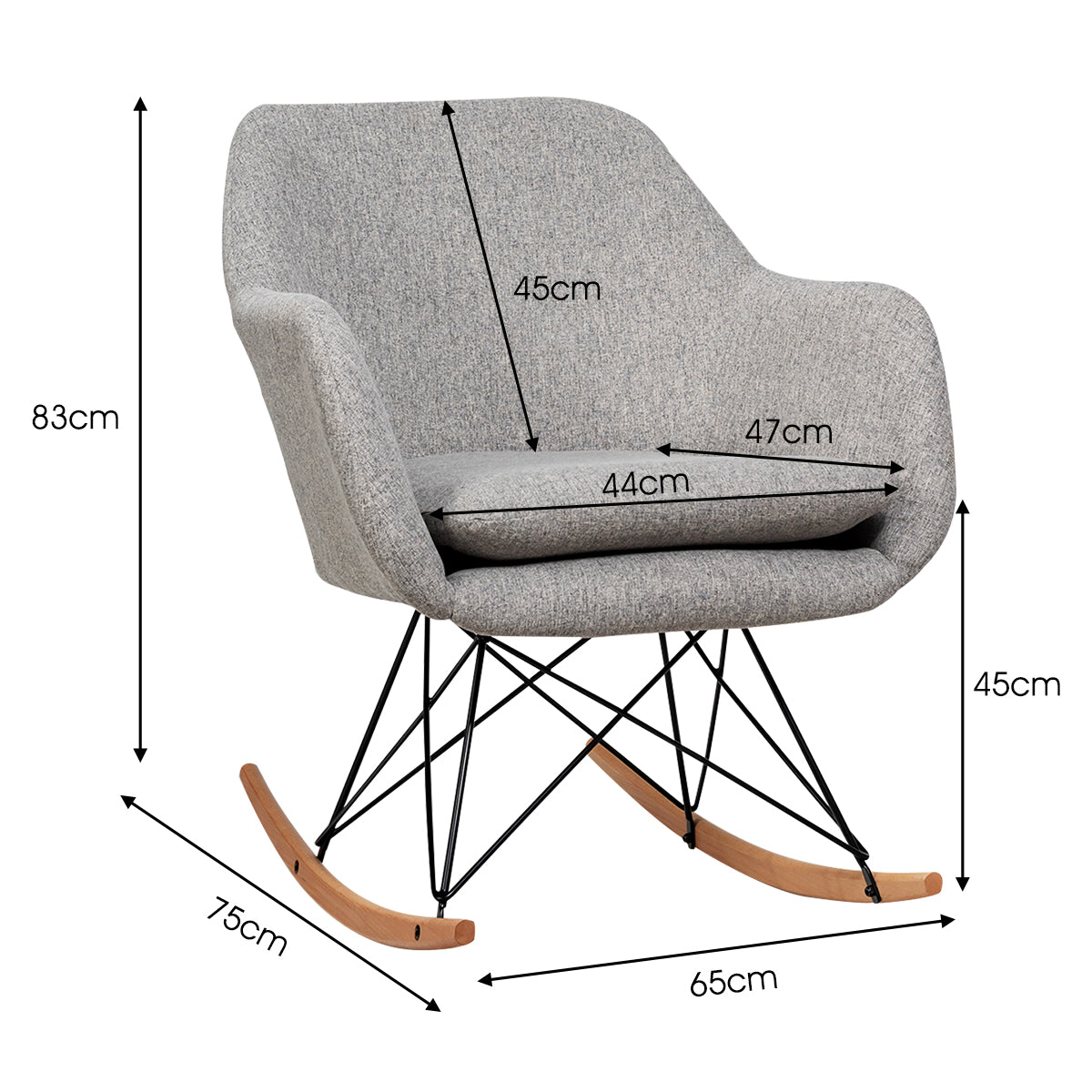 Covered by linen fabric and constructed by steel and beech wood, this single chair is comfortable, durable, and stable. You will sit comfortably and feel relax with a 7kg cushioned seat and cozy armrests. The specially designed arc base with perfect angle can effectively help you relax your body, thus you will have a super smooth and comfortable rocking experience. High-quality wood and steel frame ensures long-term service so that the rocking chair is strong enough to withstand the weight of 113kg.