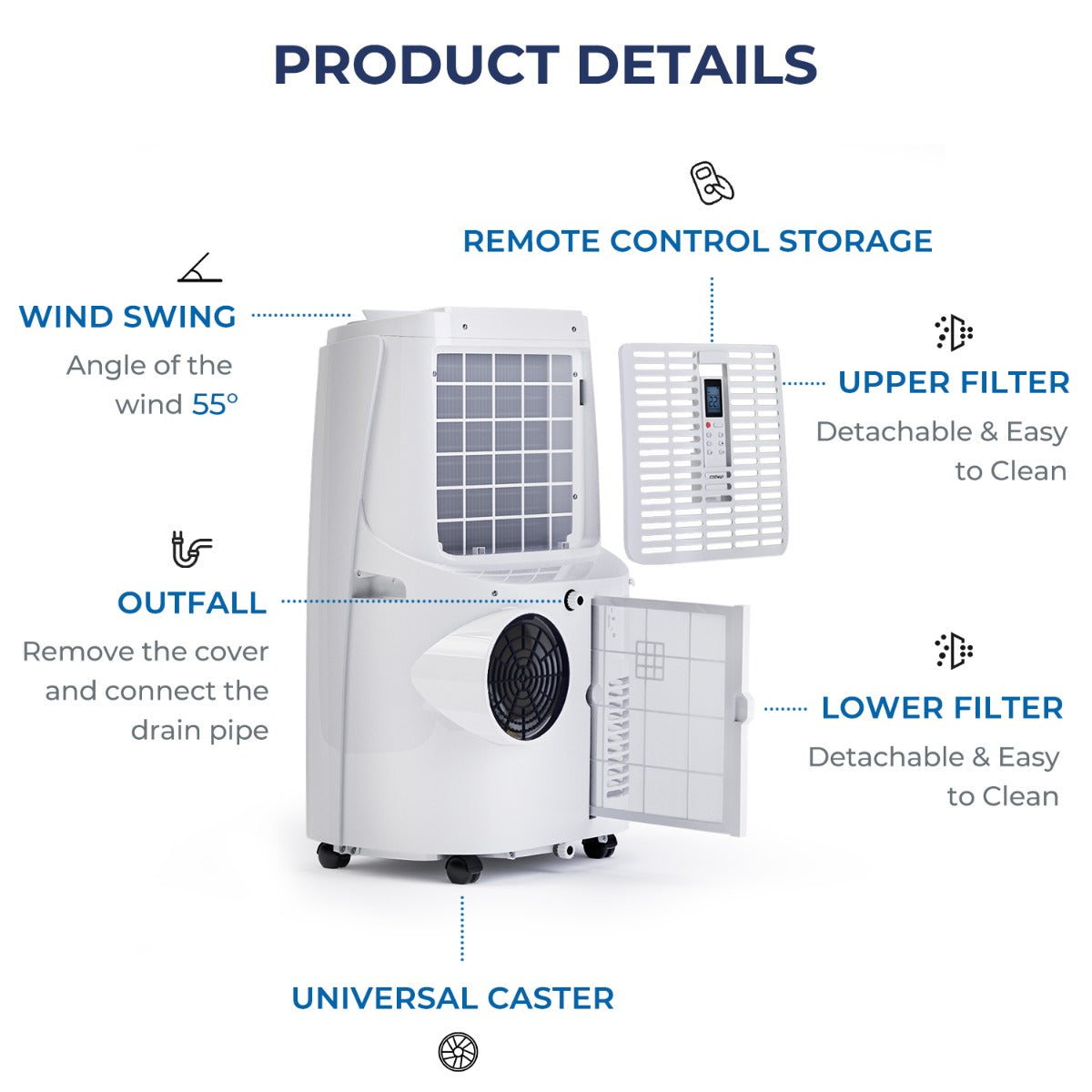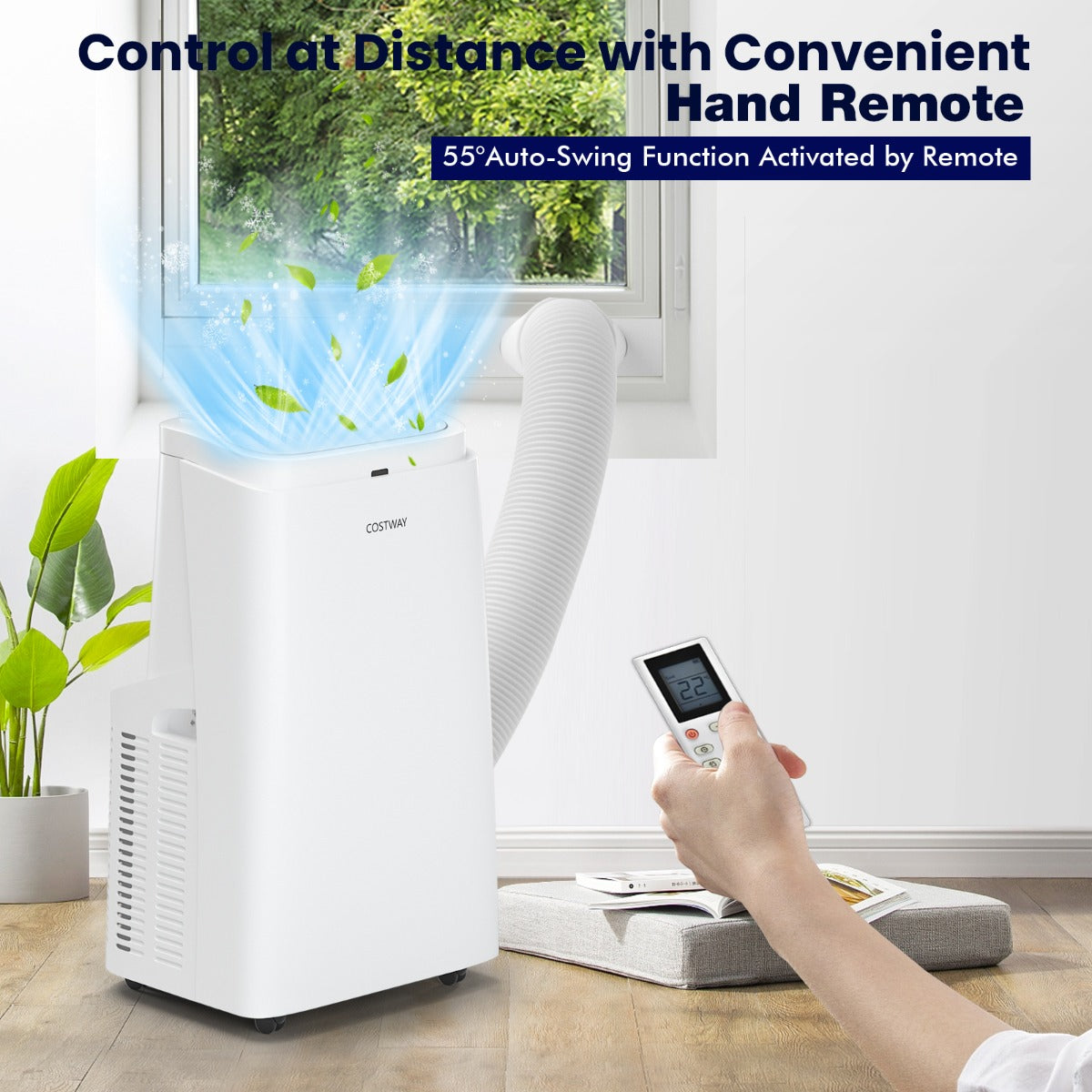 Simple to Set Up & Use: It's easy to set up the air cooler with the detailed manual and adjustable window kit. Simply attach the exhaust hose to any vertical or horizontal sliding windows. The top digital control panel and remote control help you operate easier. And there is a compartment on the back to store the remote after use.