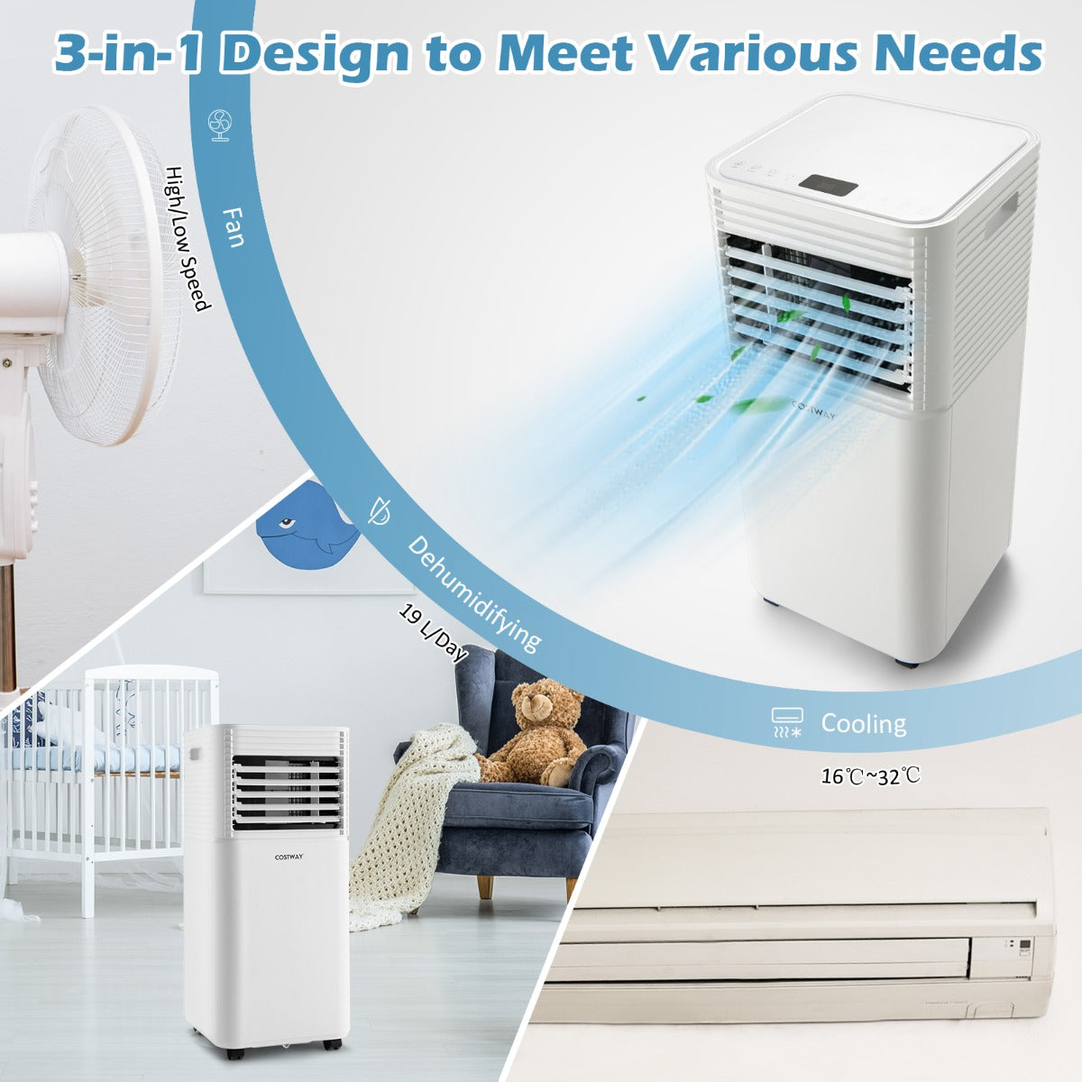 3-in-1 Multifunctional Design: This air conditioner has 3 modes to choose from - cooling, dehumidifying and fan, which can perfectly meet different needs. WiA 19L moisture removal capacity per day keeps your room cool and dry. Besides, in fan mode, you can set the fan speed to high or low according to your needs.