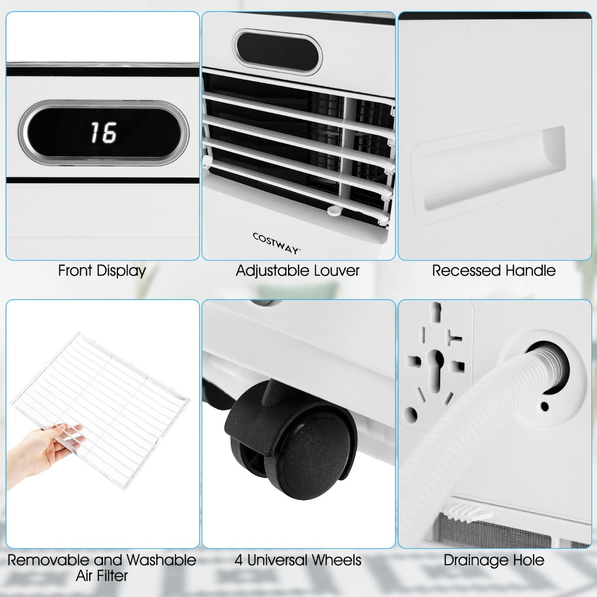 Compact but Powerful Air Conditioner: This 9000 BTU air conditioner is suitable for various locations including home and office, cooling space up to 30? without occupying much space. Also, the air conditioner is designed with a recessed handle and rolling wheels, which makes it easy to move around.