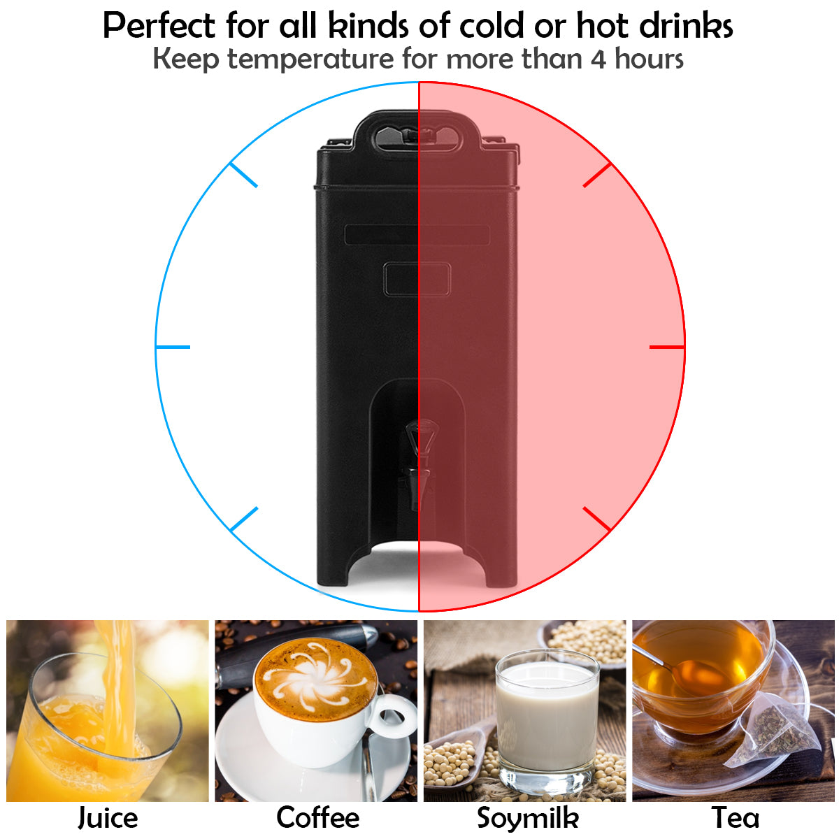 High Quality Guarantee: The insulated beverage dispenser is mainly made of two layers of LLDPE material inside and outside, which is sturdy and durable to support your long-term use. What's more, the food-grade material ensures that it is environment-friendly and harmless to humans for safe use.