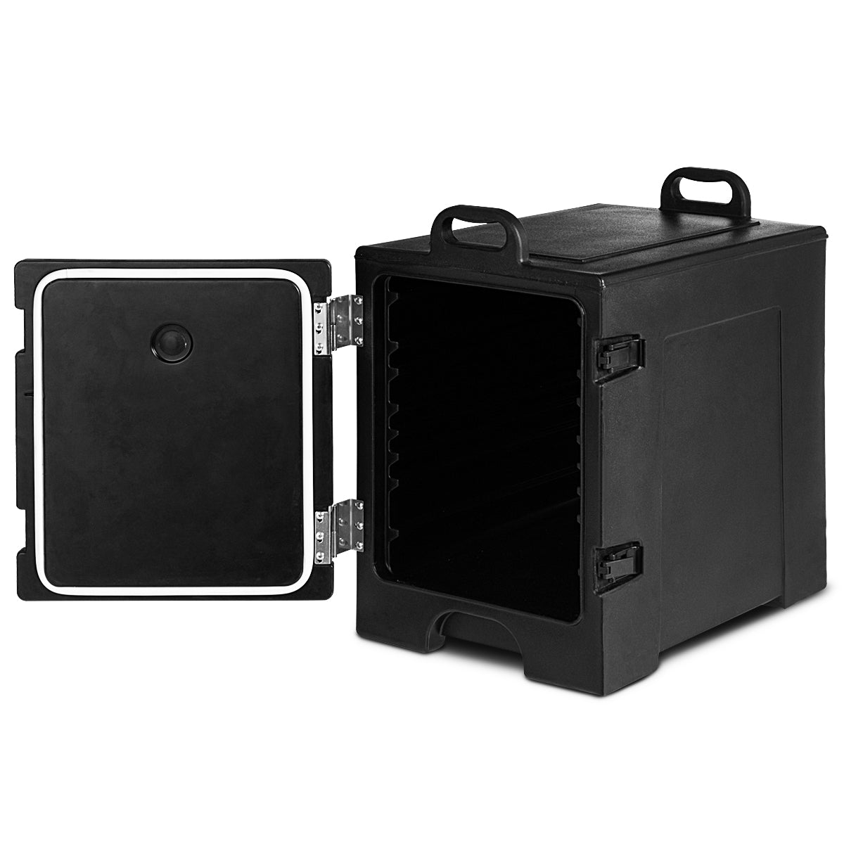 Humanized Design: This insulated food pan carrier is equipped with two ergonomic handles for easy carrying anywhere you want. The maximum angle to open the door is 270 degrees, so you can easily unload meal tray and take out the items. And it comes with nylon latches, which won't rust or dent.