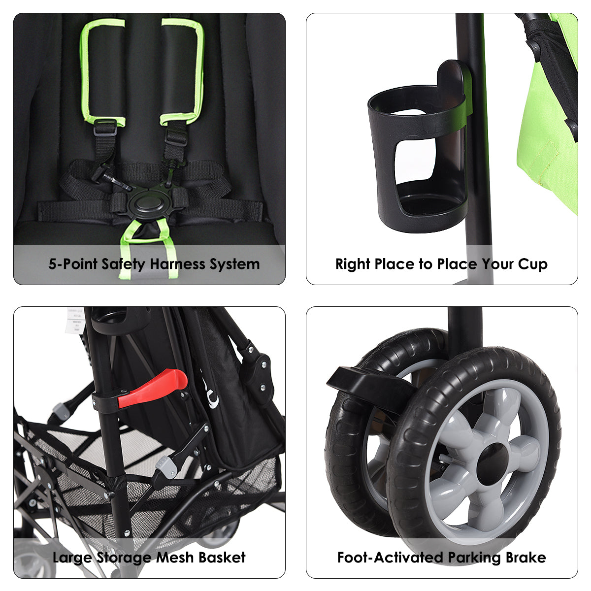Safe and Durable Construction: This infant stroller is constructed from high quality aluminum frame with powder coating, which is stable, durable and anti-corrosion. Equipped with 5-point safety harness and padded belt, ensuring a secure and comfortable seat feeling for your baby.