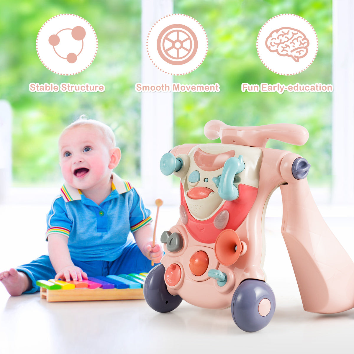 Multifunctional Game Panel: With music, soft lights and inlaid cute toys, this fun panel can exercise babies' hand-eye coordination and sense of rhythm, while cultivating their cognition. As a combination of entertainment and education, the walker is dedicated to enlightening children's minds and promoting their healthy growth.