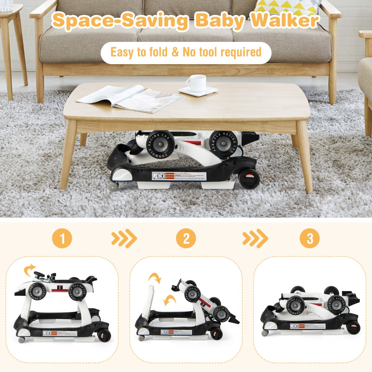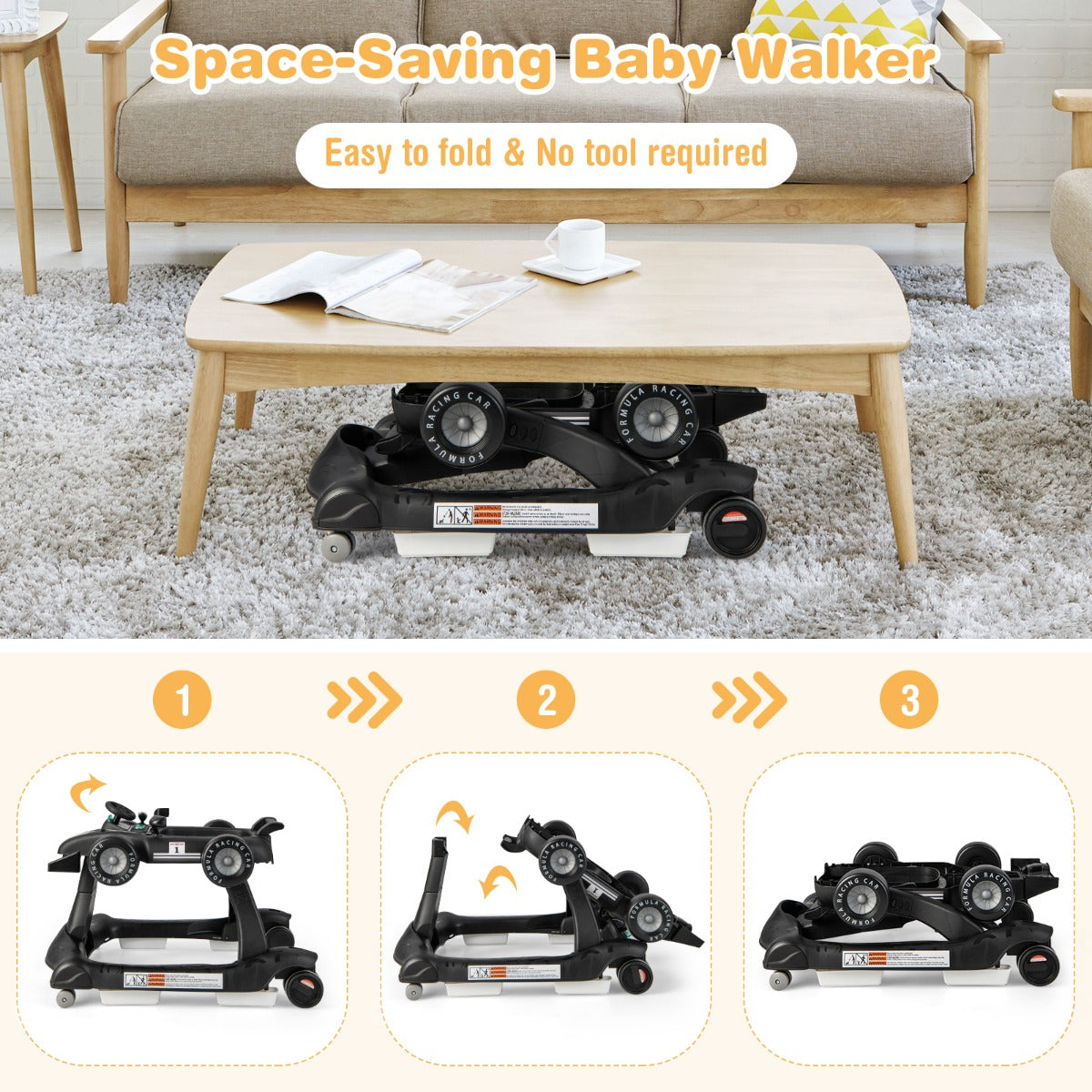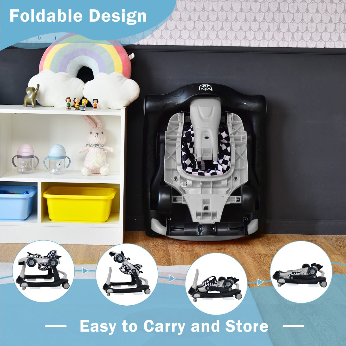 Designed for Space-saving: With the foldable design, this activity walker is convenient to store against the wall or under the bed/sofa to save your home space when out of use. In addition, the installation is easy with detailed and easy-to-understand instruction.
