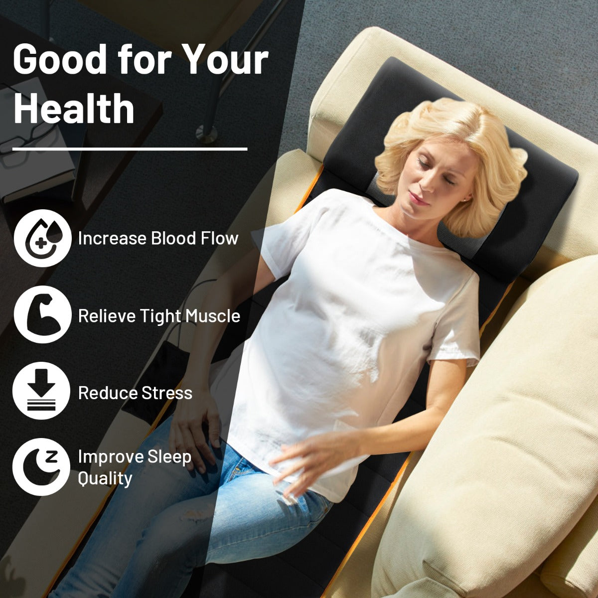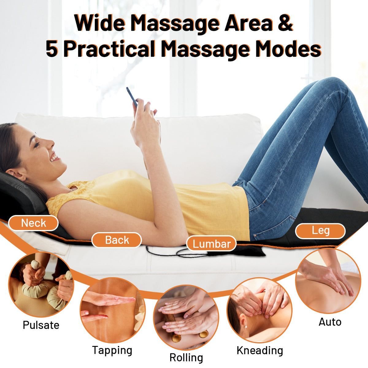 Multiple Massaging Mode: To satisfy your diverse needs, the massage mat has five different massaging modes, pulsate, tapping, rolling, kneading, auto massage mode, and each massaging mode provides you with special relaxation and eliminates your fatigue from a long day of work.