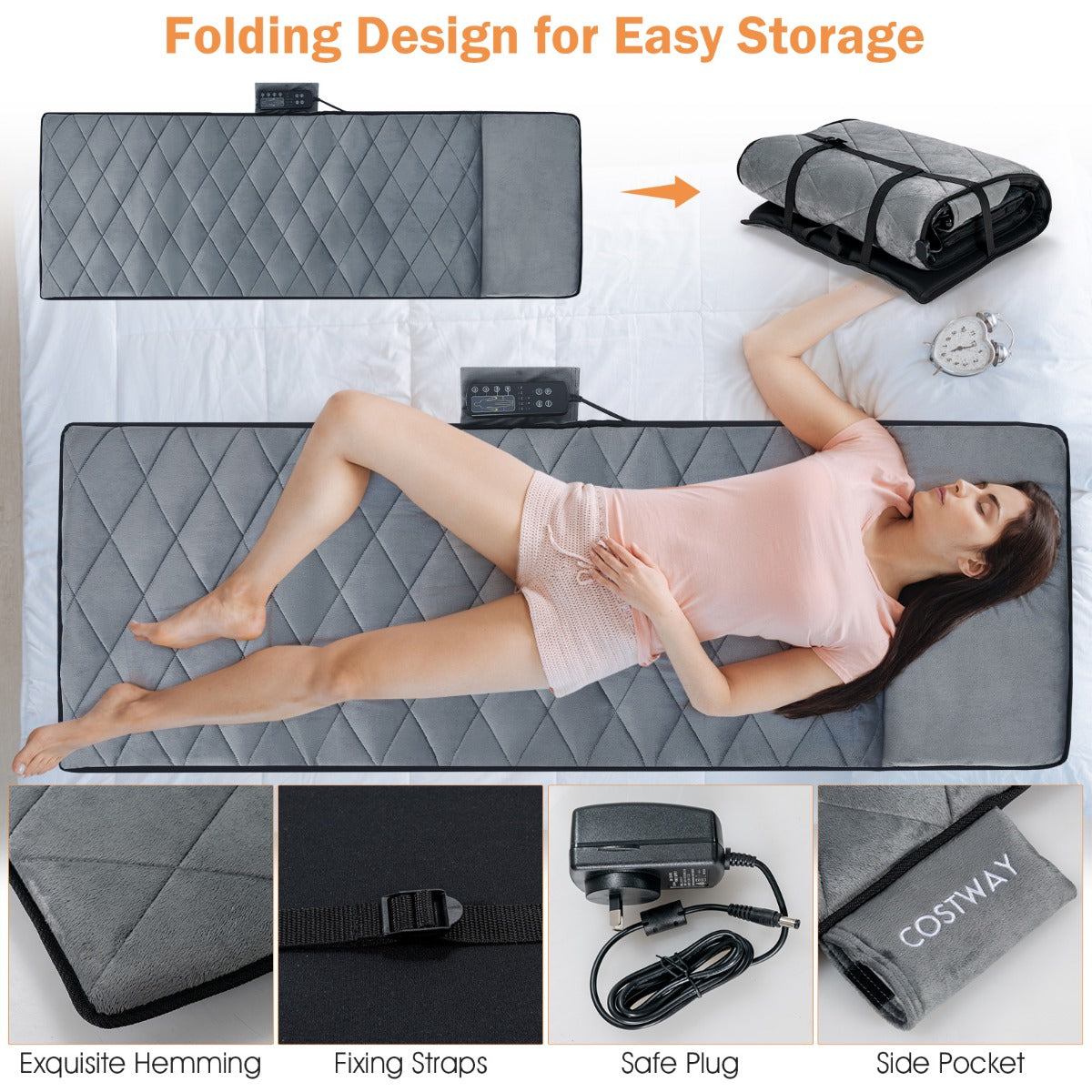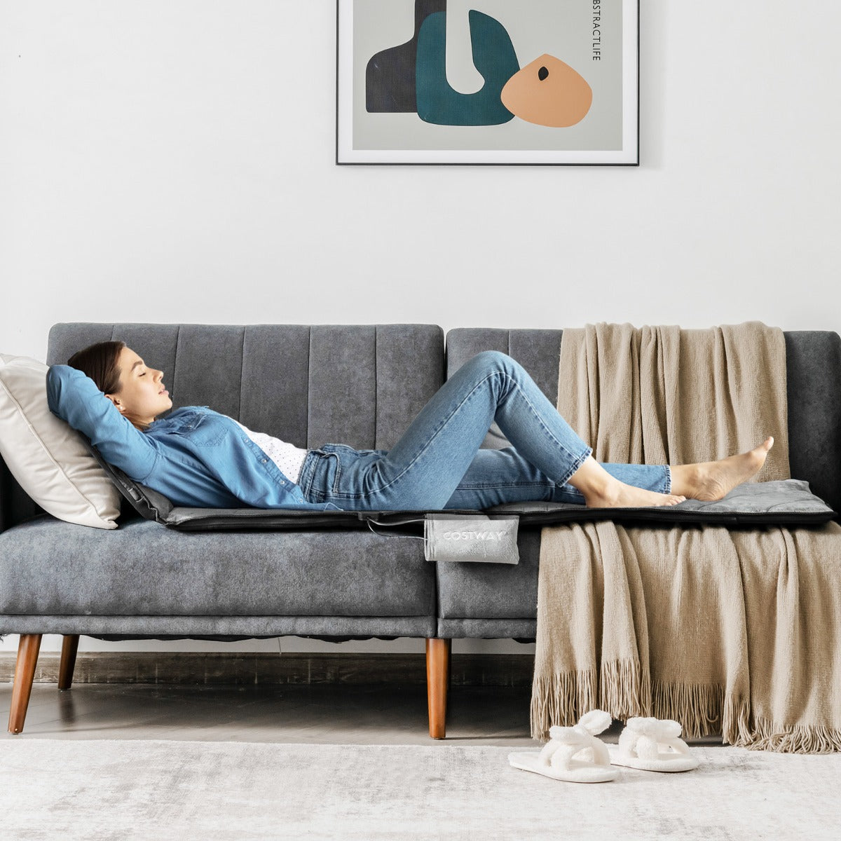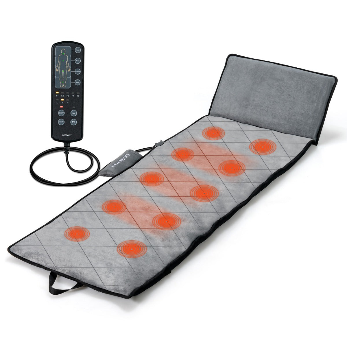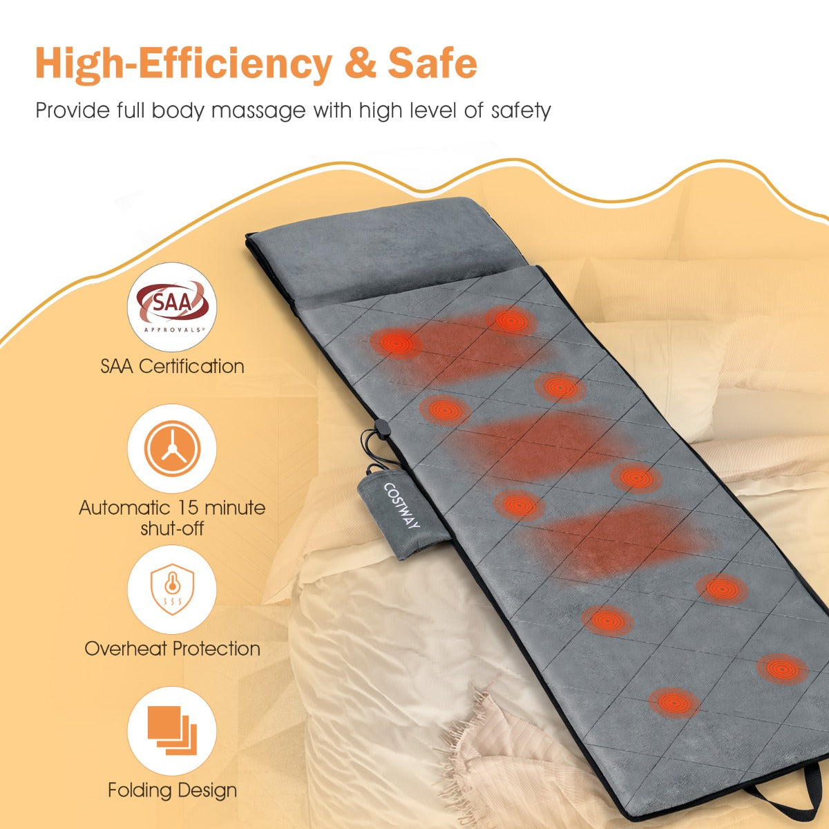 There are 10 evenly distributed massage motors inside our massage mat, which can help to relax the whole body. 3 heating pads can provide you with soothing heating and help your body warm up. In addition, the massage pad can provide 5 different vibration modes and 3 different intensities to provide you with an excellent experience. Folding design and compact size can greatly improve space utilization. Why don't you buy such a multifunctional body massage mat? It is the perfect gift for your family and friends!