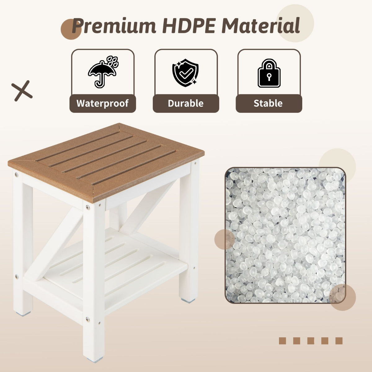Ample Storage Space: Equipped with a spacious top and a bottom storage shelf, this 2-tier shower bath seat can keep all your items in order and accessible, including towels, toilet soaps, body washes, candles, books, decorations, etc.