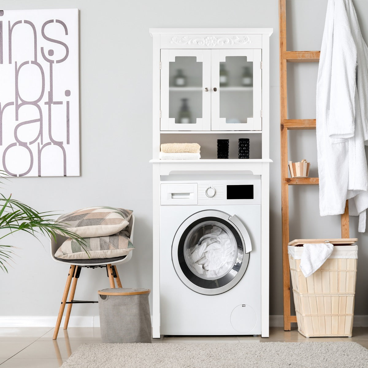 Wide Application for Home Use: Its size is perfect for standing over most standard toilet or washing machines. You can use it in bathroom or laundry for storing bathroom things and it can also serve as a premium storage cabinet in your living room and adding elegance.