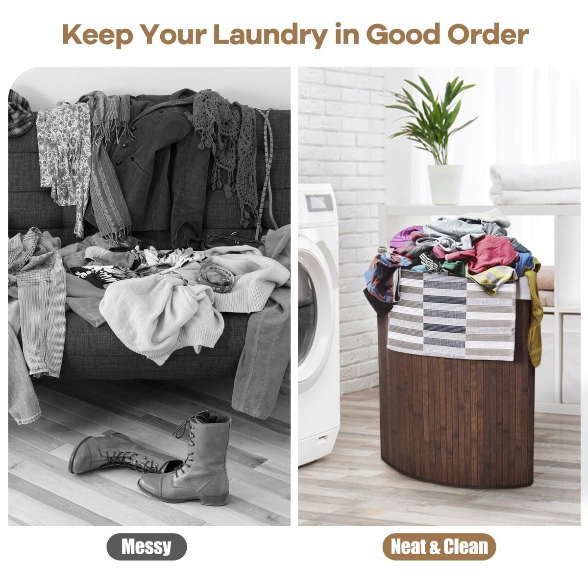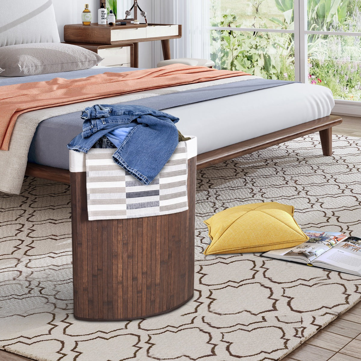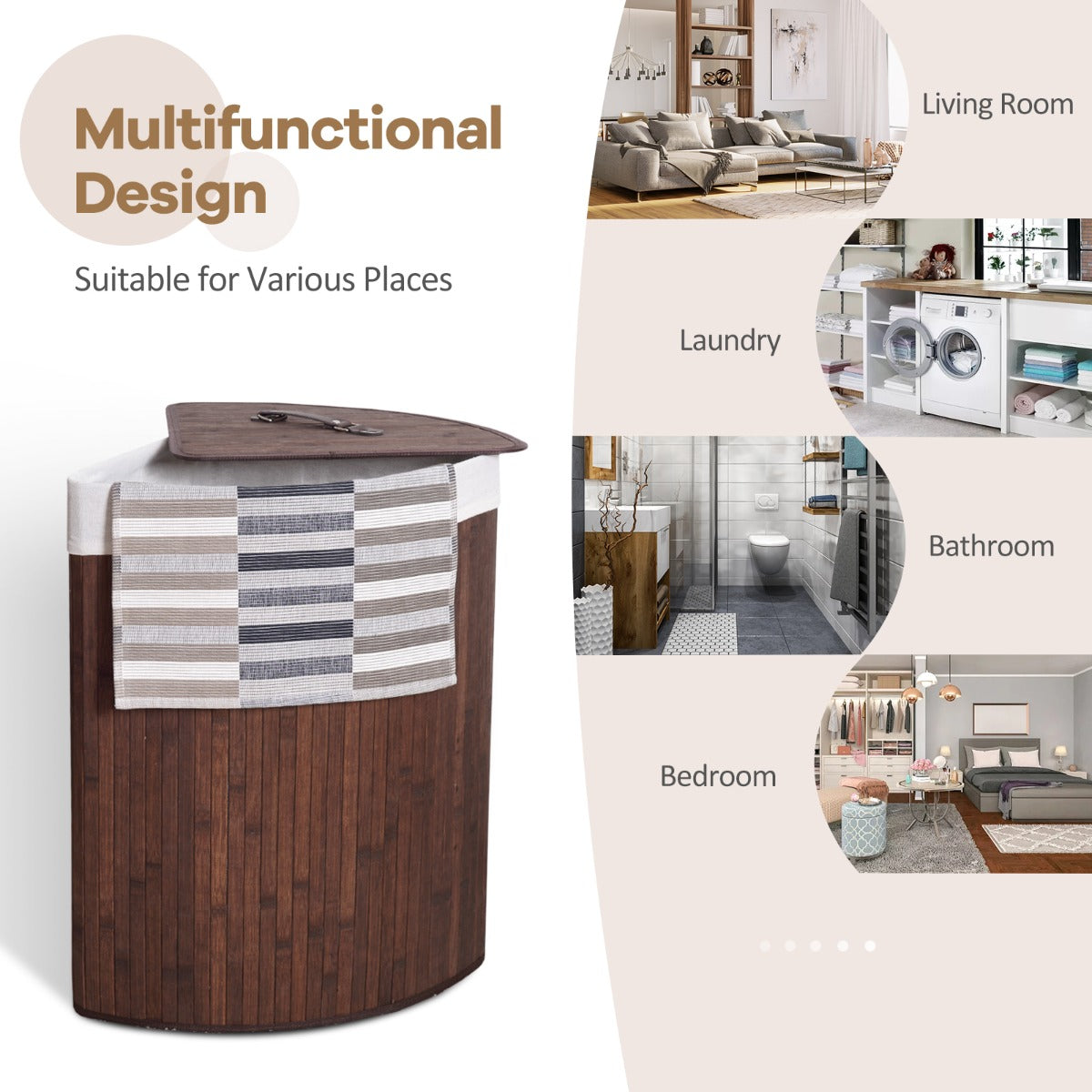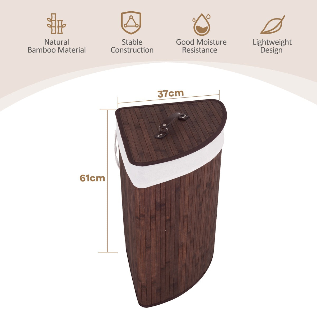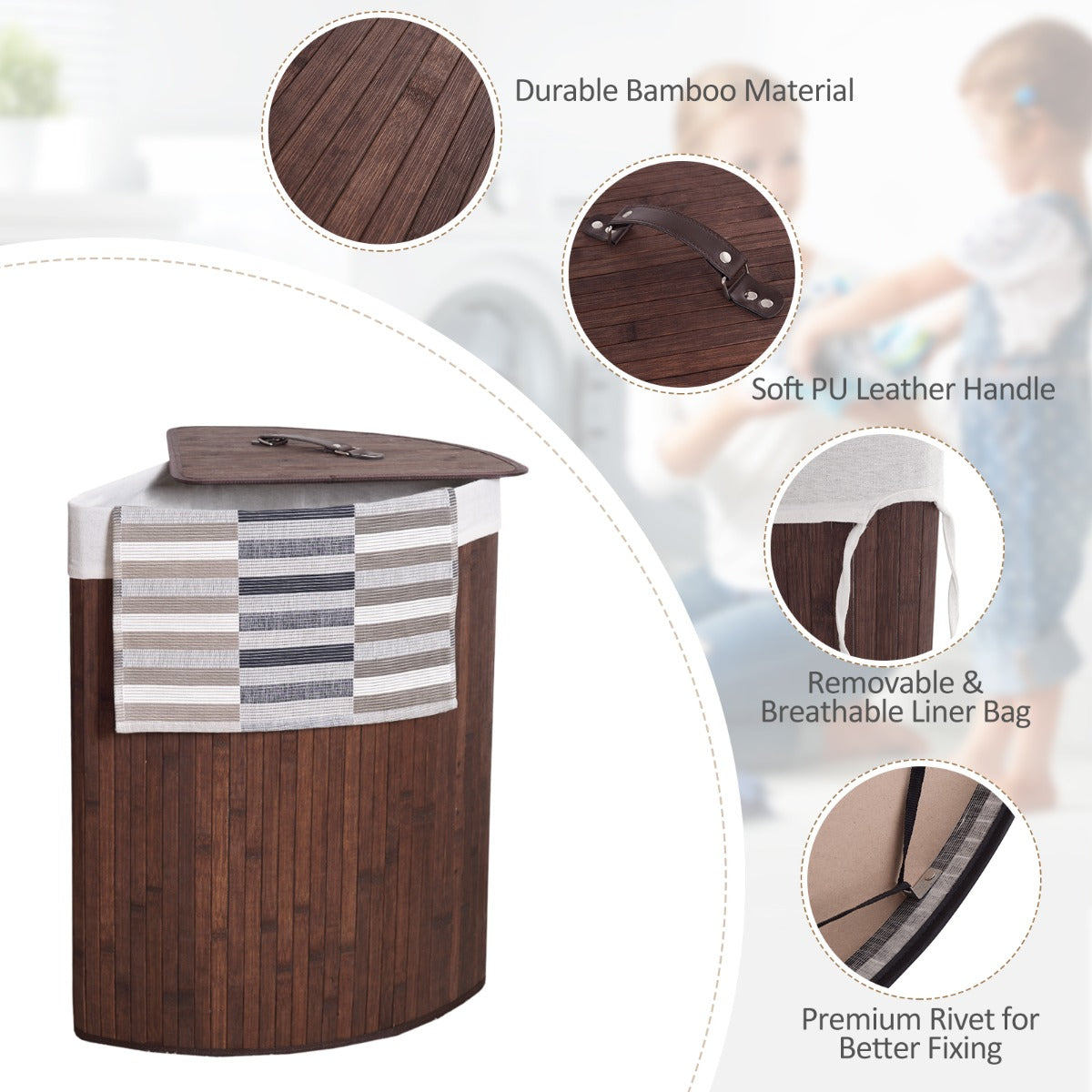 Aussies Market Bamboo Corner Laundry Hamper with Lid & PU Handle for Bedroom/Bathroom