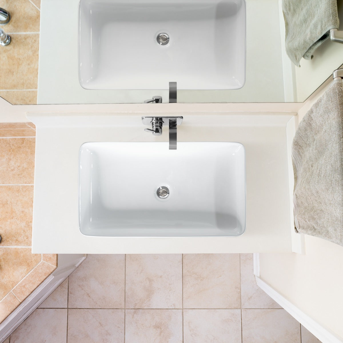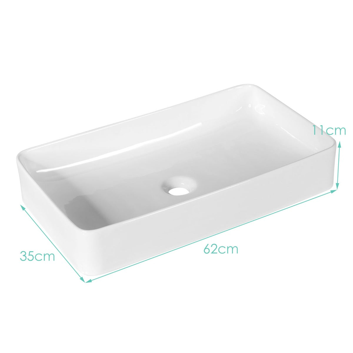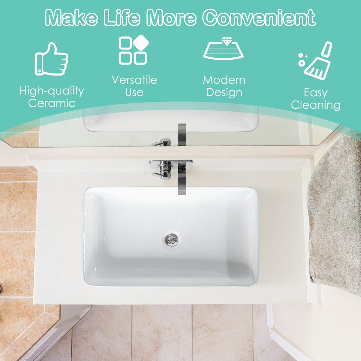 Convenient Versatility: With a simple and elegant design, the minimalist style ceramic basin has a bright white luster that can embellish your bathroom. And the rectangular vessel style features a symmetrical and deep basin, which is perfect for home, hotel, restaurant, etc.