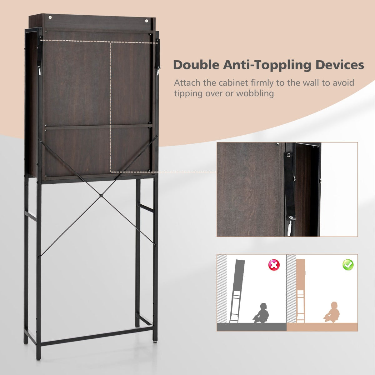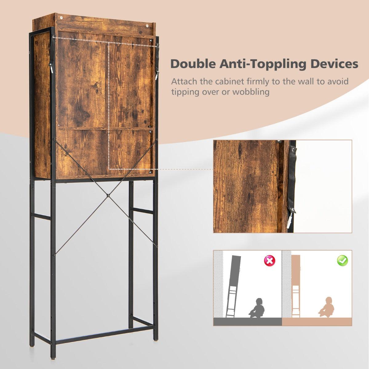 Stable Steel Frame: The over-toilet storage rack is made of high-quality engineered wood and a sturdy steel frame, which ensures high weight capacity and durability. The X-shaped structure increases the stability of the structure and the anti-toppling device allows you to fix the storage cabinet to the wall for additional safety.