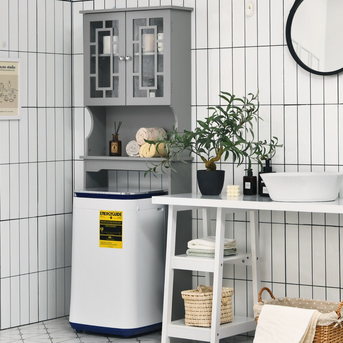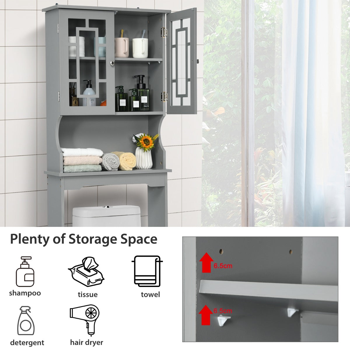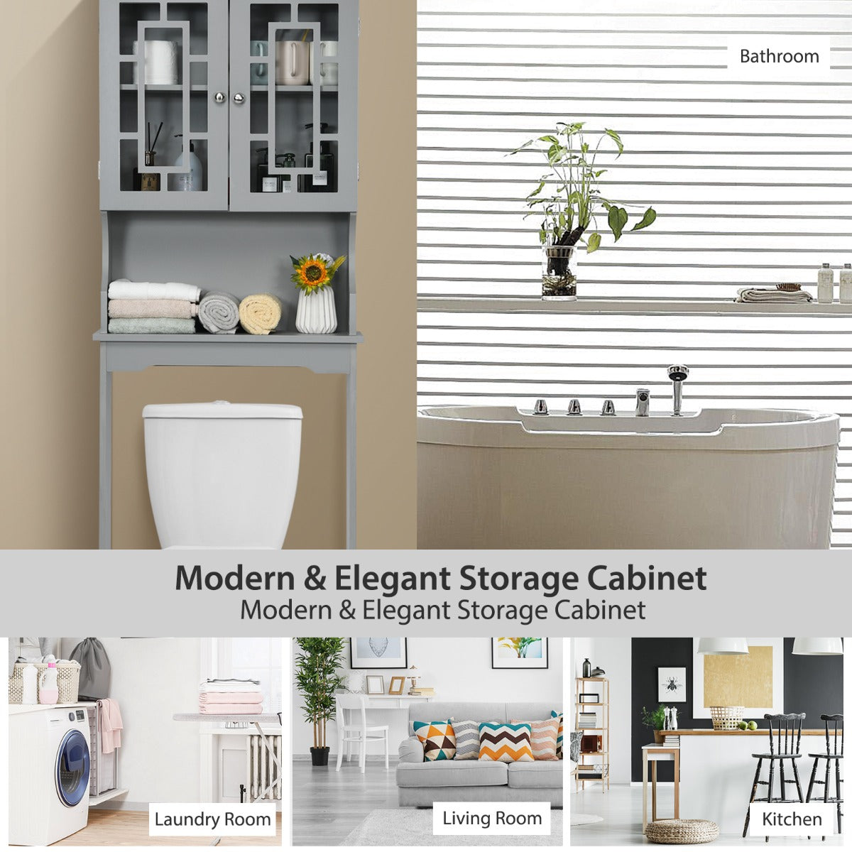 Our brand new and high quality bathroom spacesaver adds storage space in even small bathrooms. Using space above a standard toilet, the space saver has a hidden cabinet area behind doors and an open storage shelf which can meet all your storage needs. Such as storing and organizing linens, toiletries, and bath essentials like soaps, shampoos, body wash, and more. Plus, with intimate glass door design, this bathroom spacesaver non only can keep dampness out the cabinet, but convenient to find what you need. Furthermore, this spacesaver cabinet features a modern-contemporary design with grey finish which can perfectly blend in various decoration styles and leave your guests a deep impression. And besides, this bathroom spacesaver made of durable and solid MDF and Engineered Wood, which ensures sturdy and heavy-duty. So, it can provide long-term service to your family. Don't hesitant to buy it now!