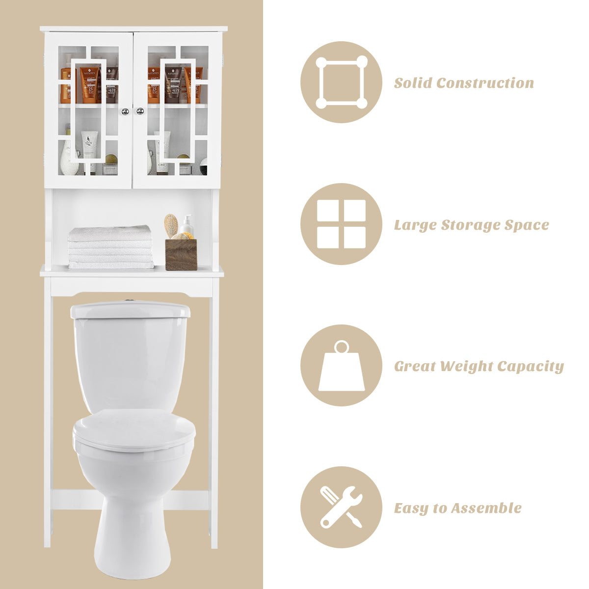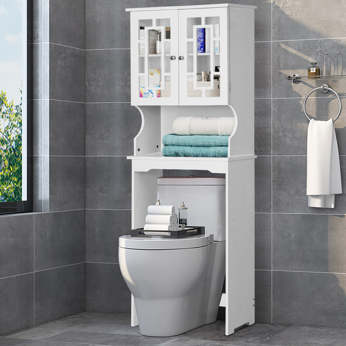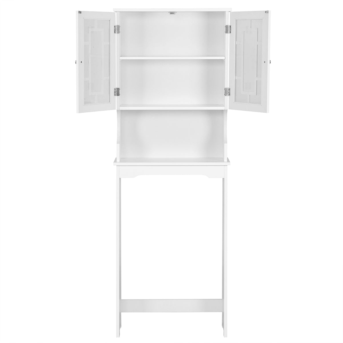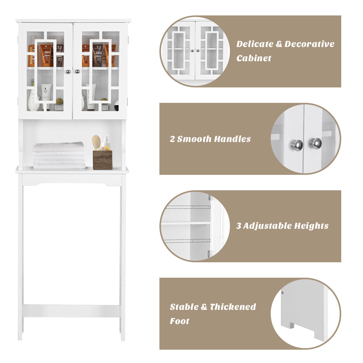Double-Door Cabinet & Open Shelf: This over the toilet storage cabinet is designed with an enclosed double-door cabinet and an open storage shelf to meet your different storage needs. The cabinet is built with round door knobs and magnetic catch for convenience.