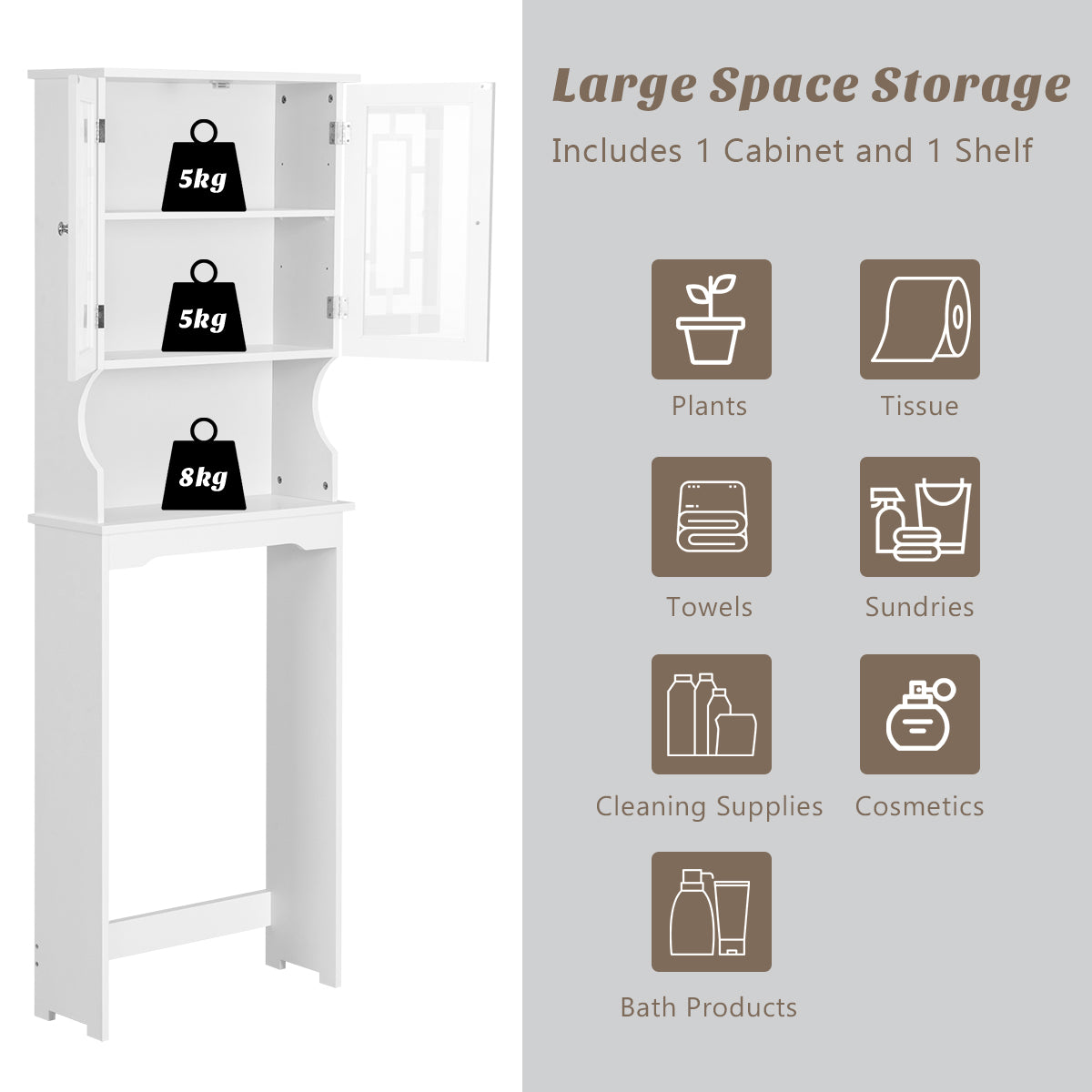 Maximize the Utilization of Wall Space: This bathroom storage cabinet over the toilet allows you to utilize the wall space to create more storage space and keeps you away from mess, which is perfect for small bathrooms or laundry rooms. Ground clearance: 54 cm x 83 cm (W x H).