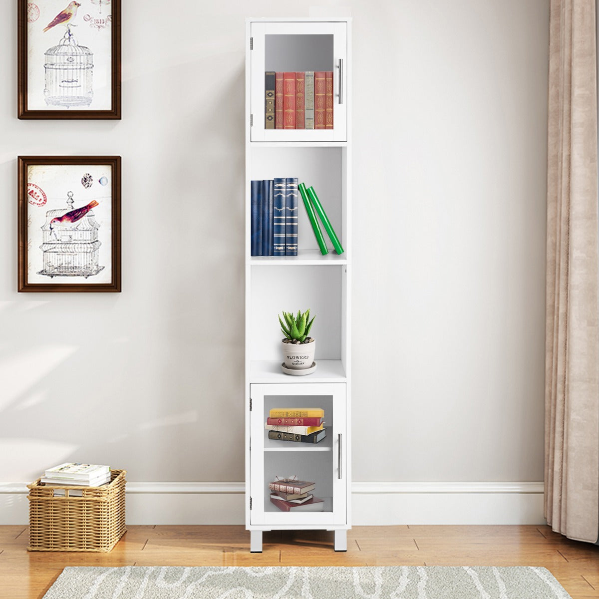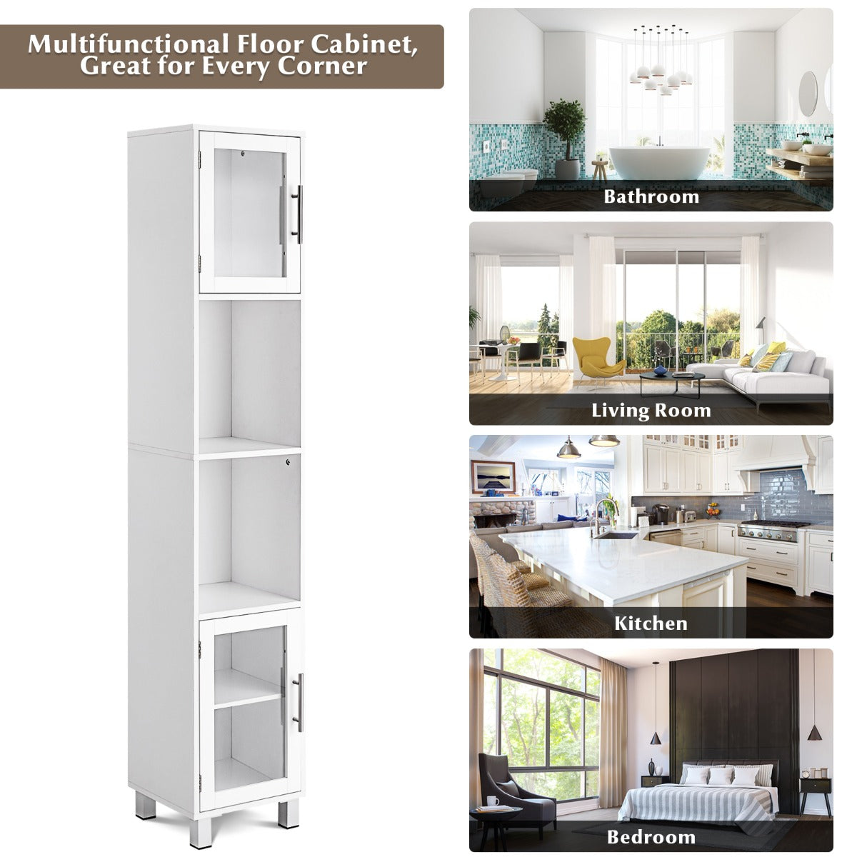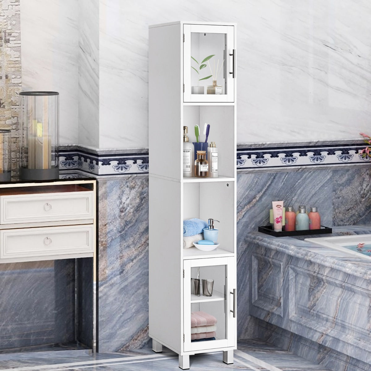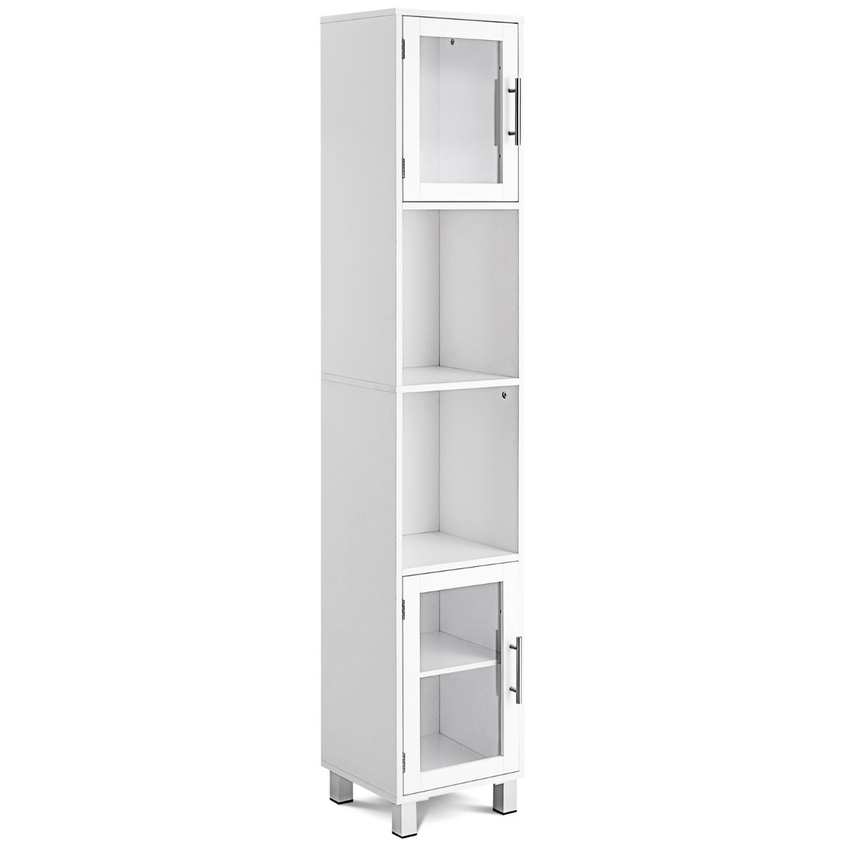 Aussies Market Tall Bathroom Storage Cabinet with 2 Open Shelves& 1 Adjustable Shelf