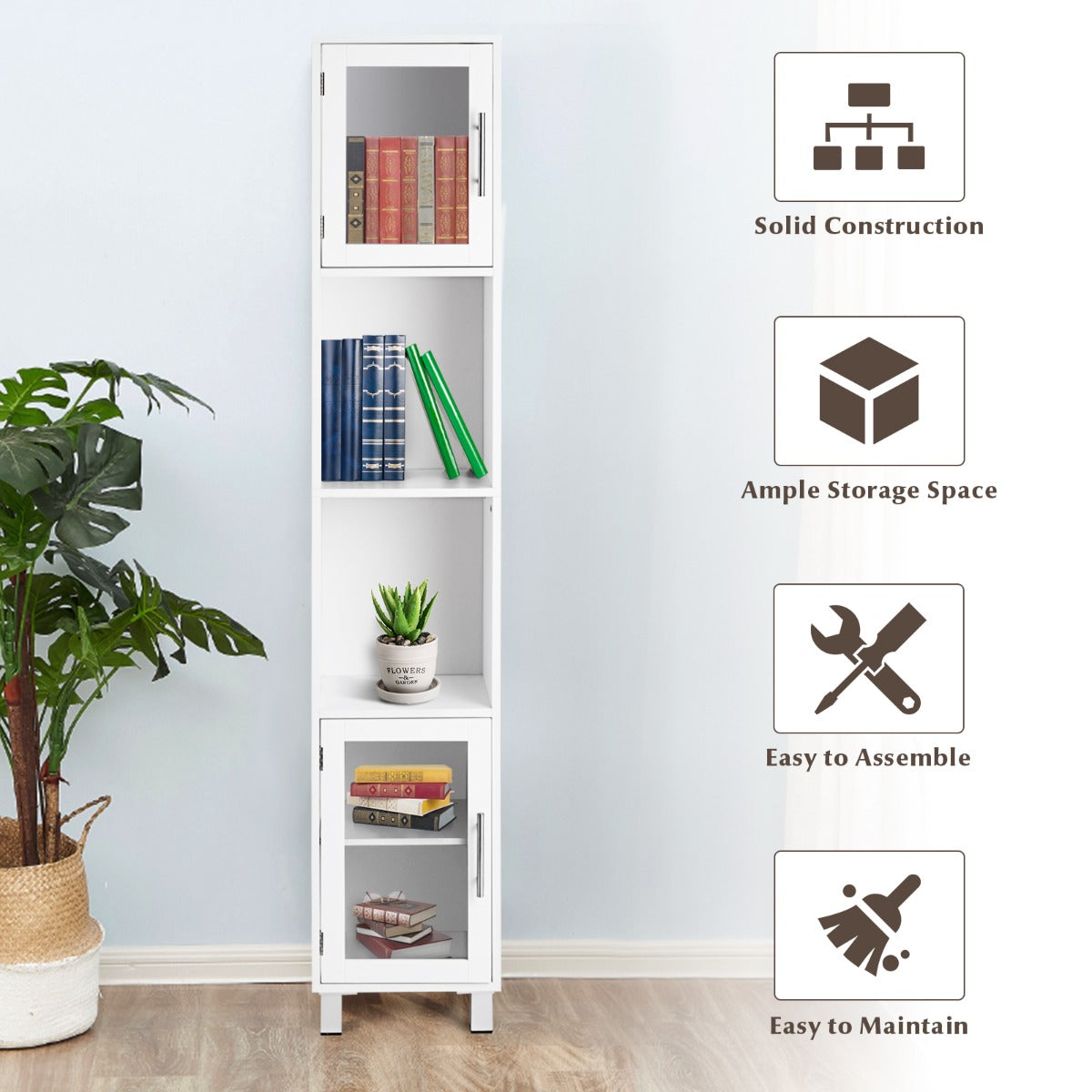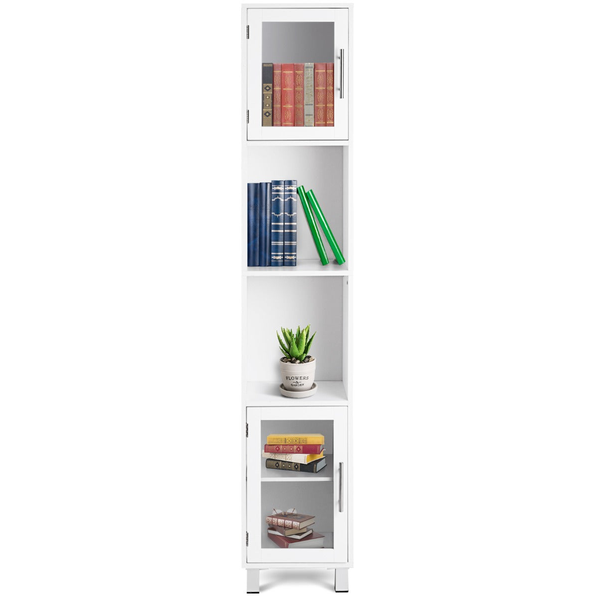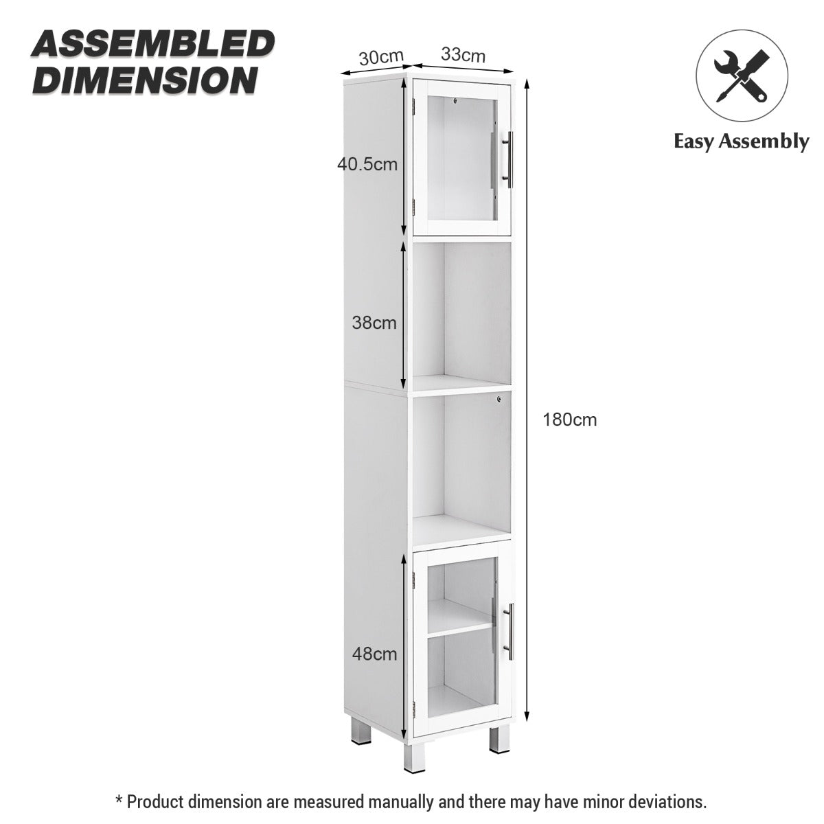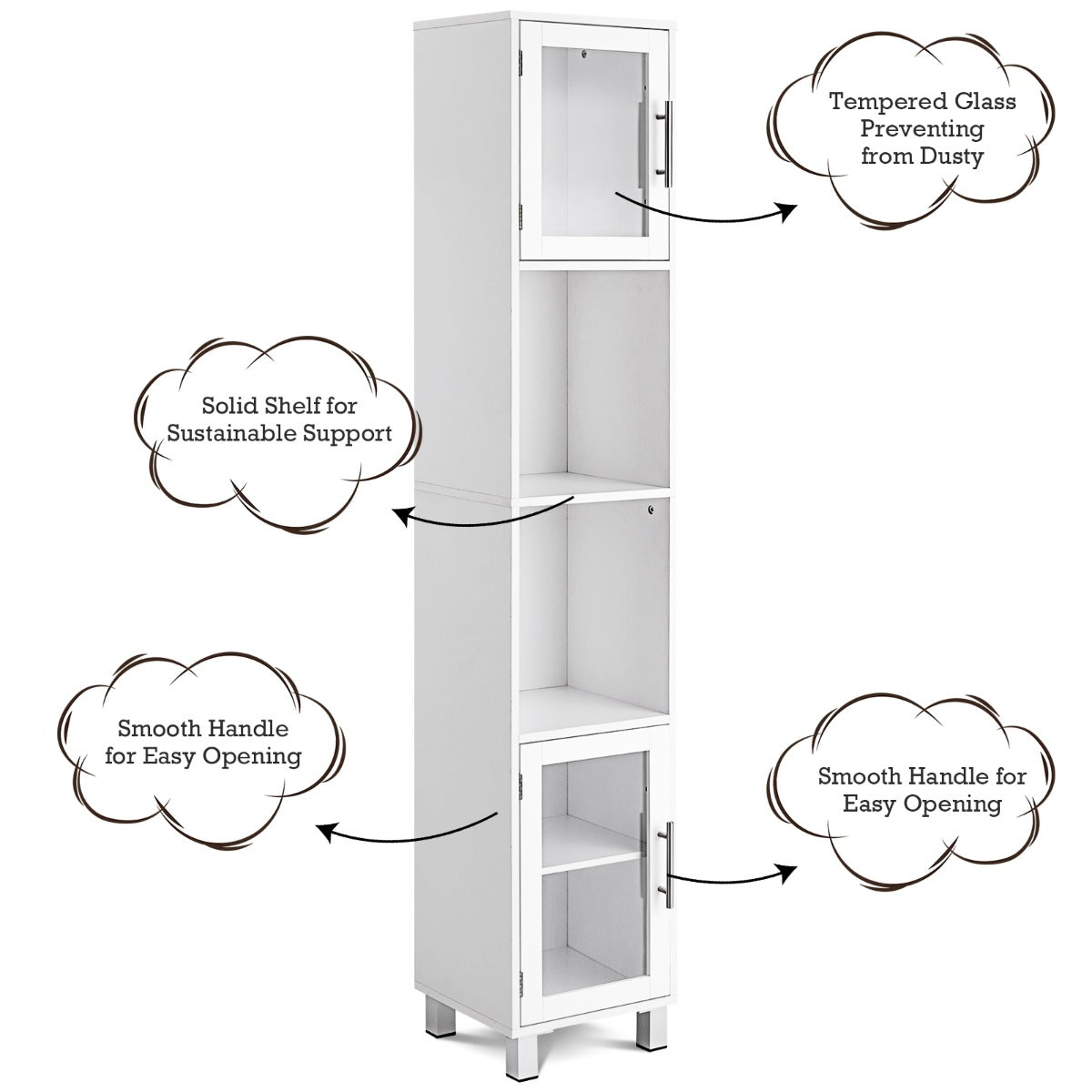 Aussies Market Tall Bathroom Storage Cabinet with 2 Open Shelves& 1 Adjustable Shelf