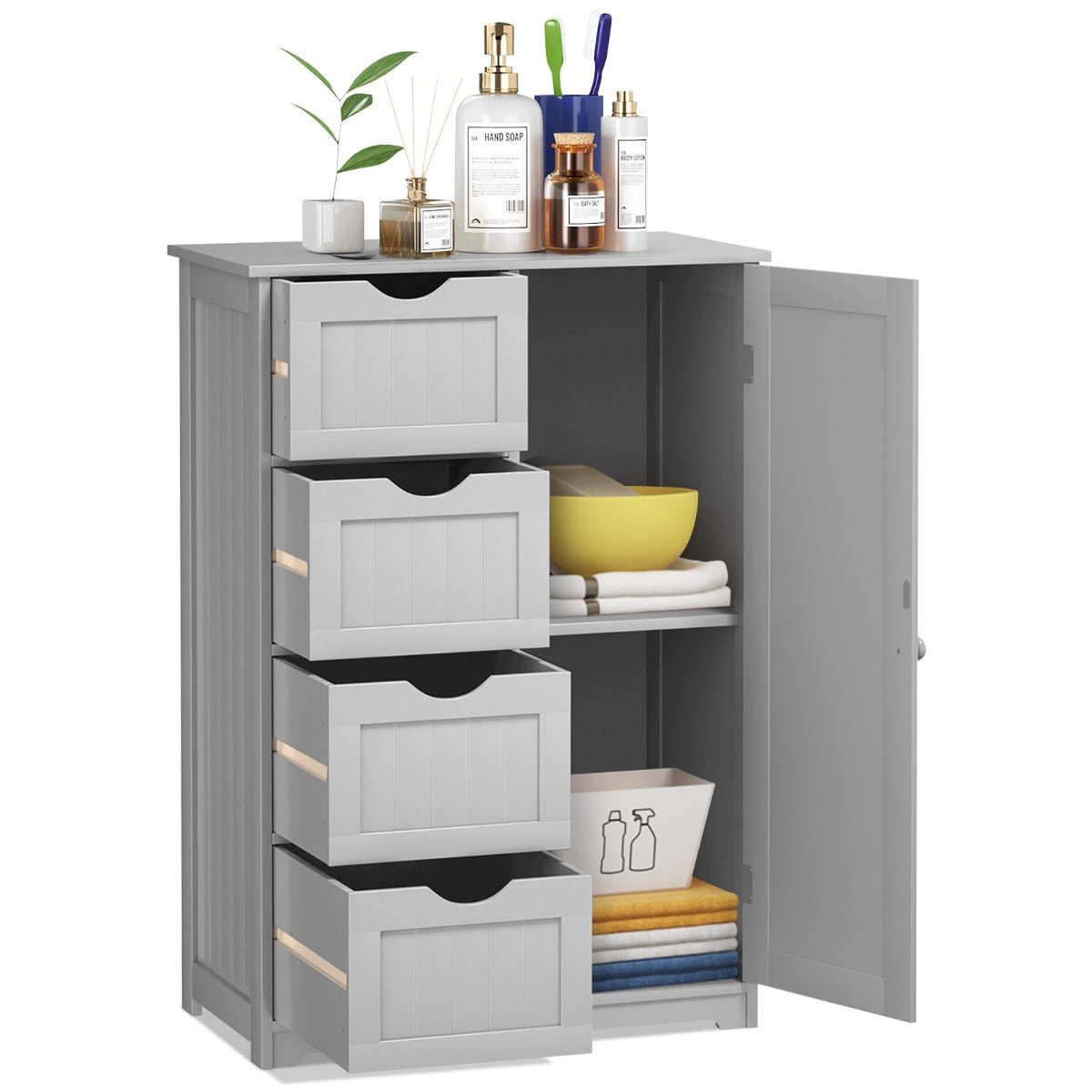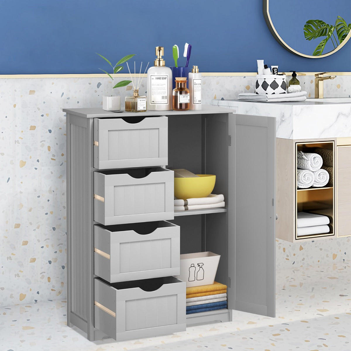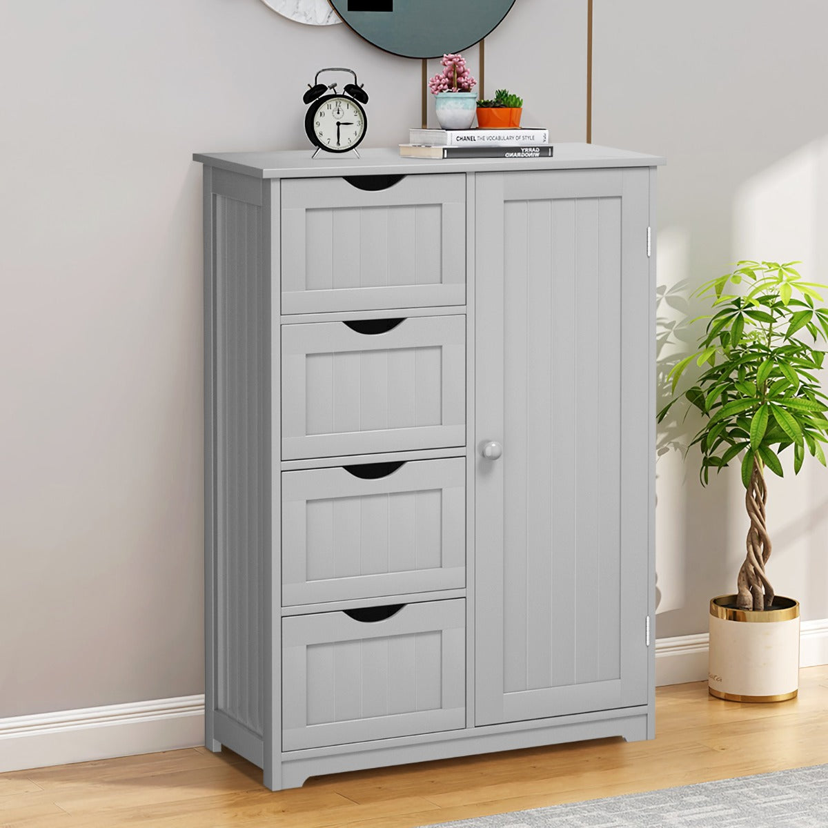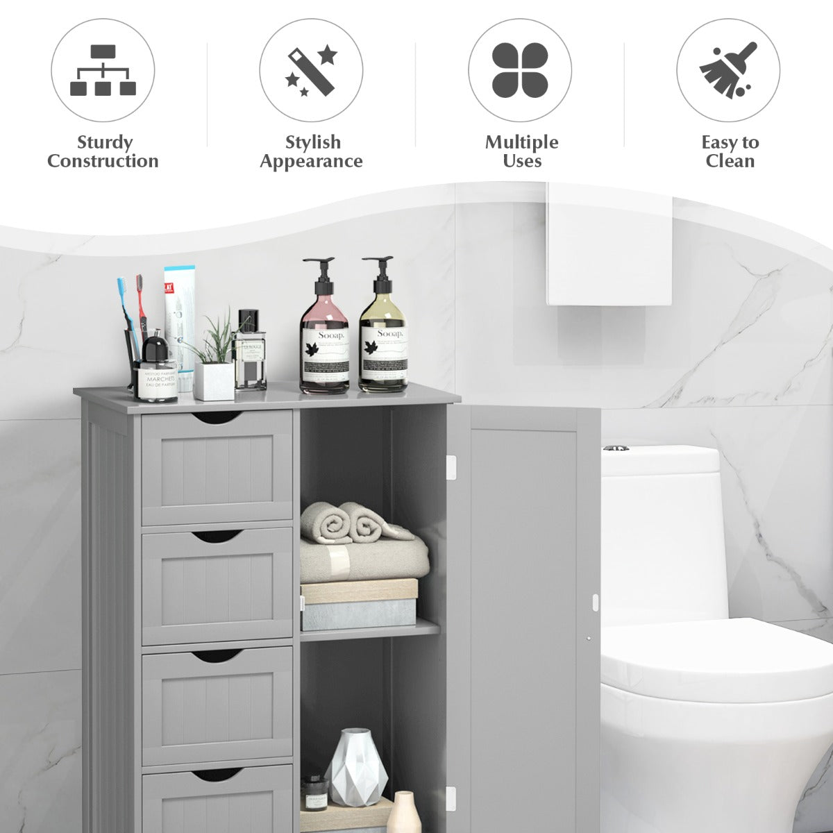 This floor storage cabinet is a perfect addition to your home! Made of high-quality MDF with premium paint, this bathroom floor storage cabinet is very durable and stable, which can serve you for a long time. The surface of this cabinet is smooth and waterproof, making it easy to clean just with a damp cloth. Equipped with 4 drawers and 1 single-door cupboard, this storage cabinet can hold a variety of items while keeping them well organized. And the inner shelf can be adjusted to 3 heights to meet different storage needs. Besides, with elegant appearance and simple design, this multifunctional floor cabinet can perfectly blend in various decoration styles and is perfect to be used in your bathroom, bedroom, living room or entryway.