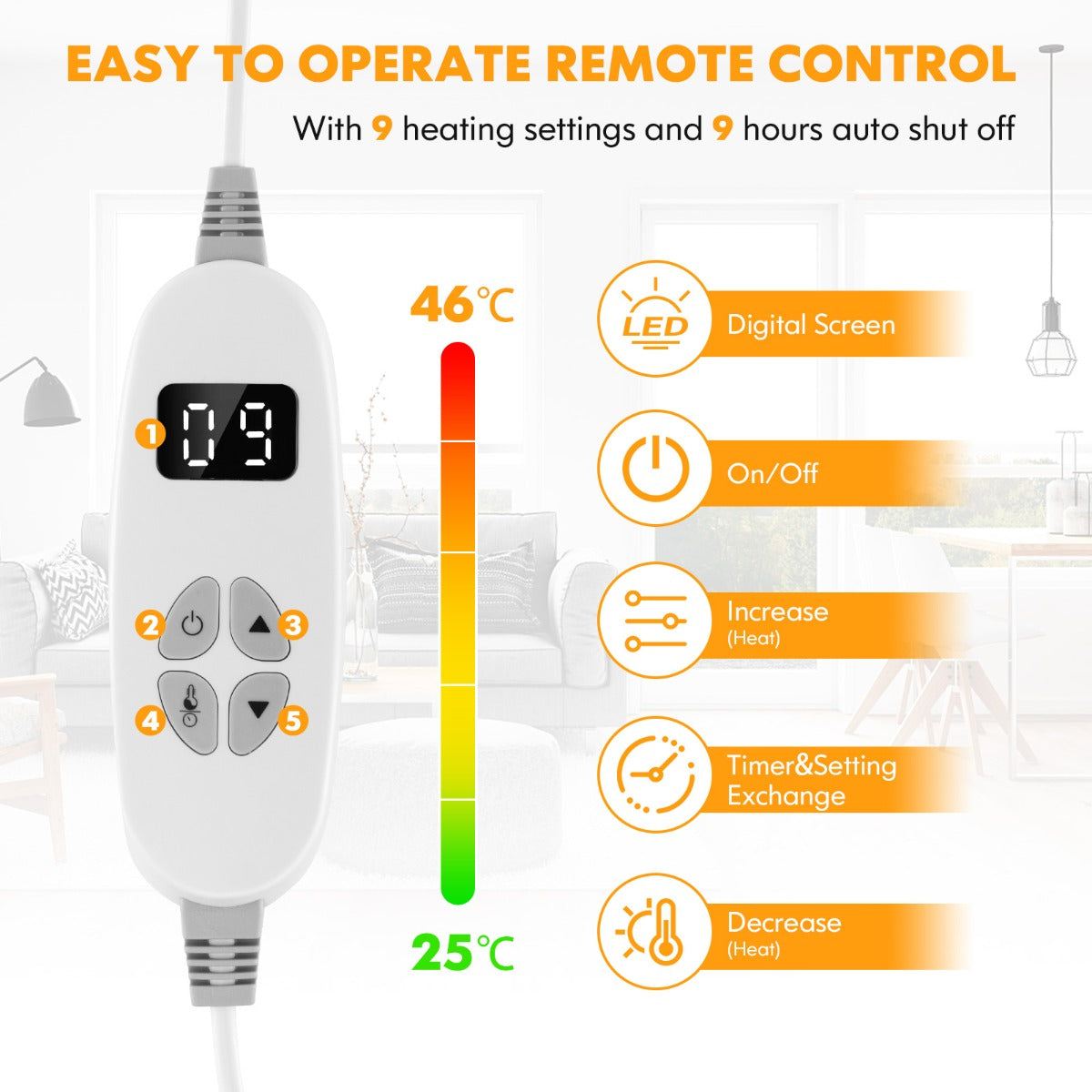 Aussies Market 230GSM Soft Fast Heating Blanket with 9 Heat Settings & 9 Hours Timing Function