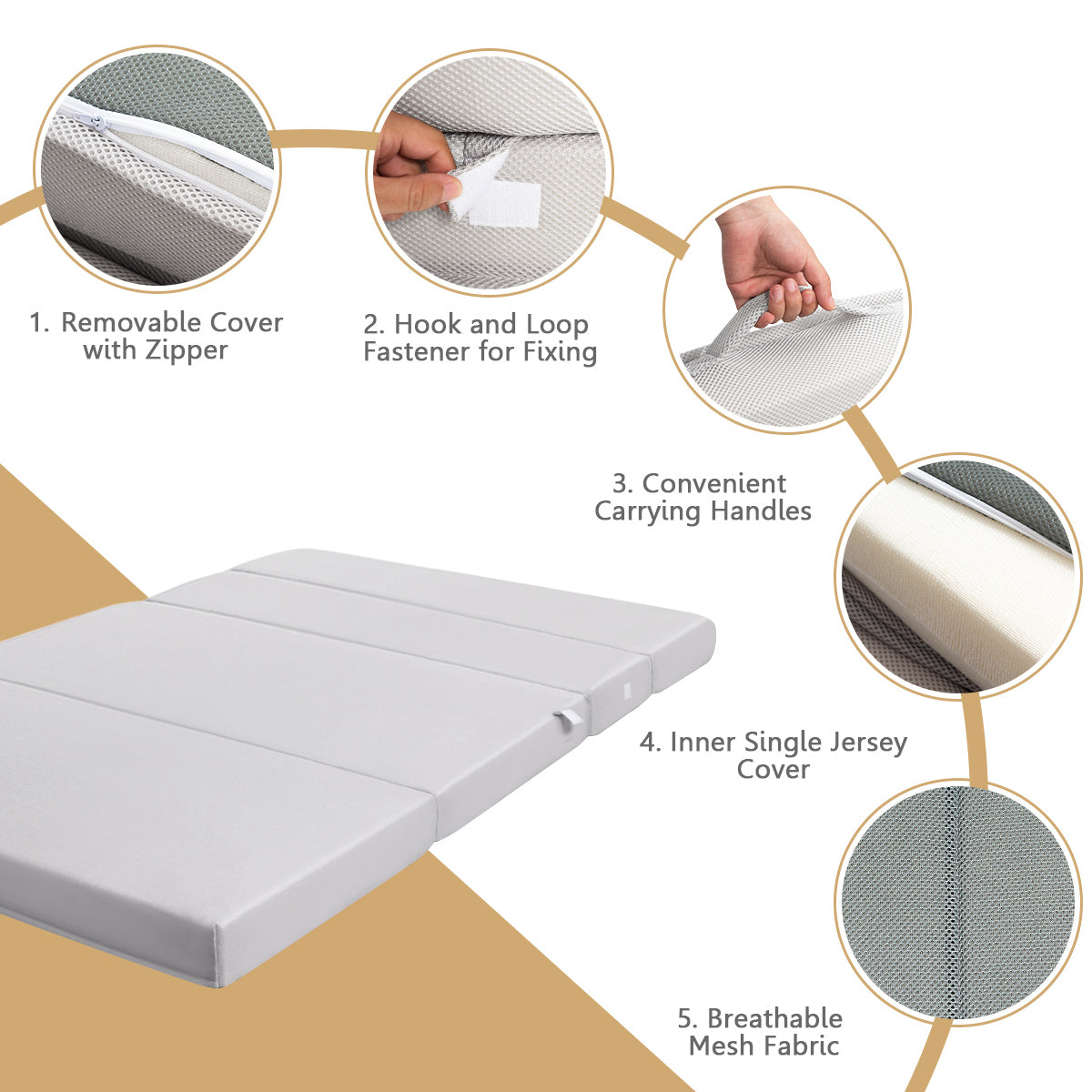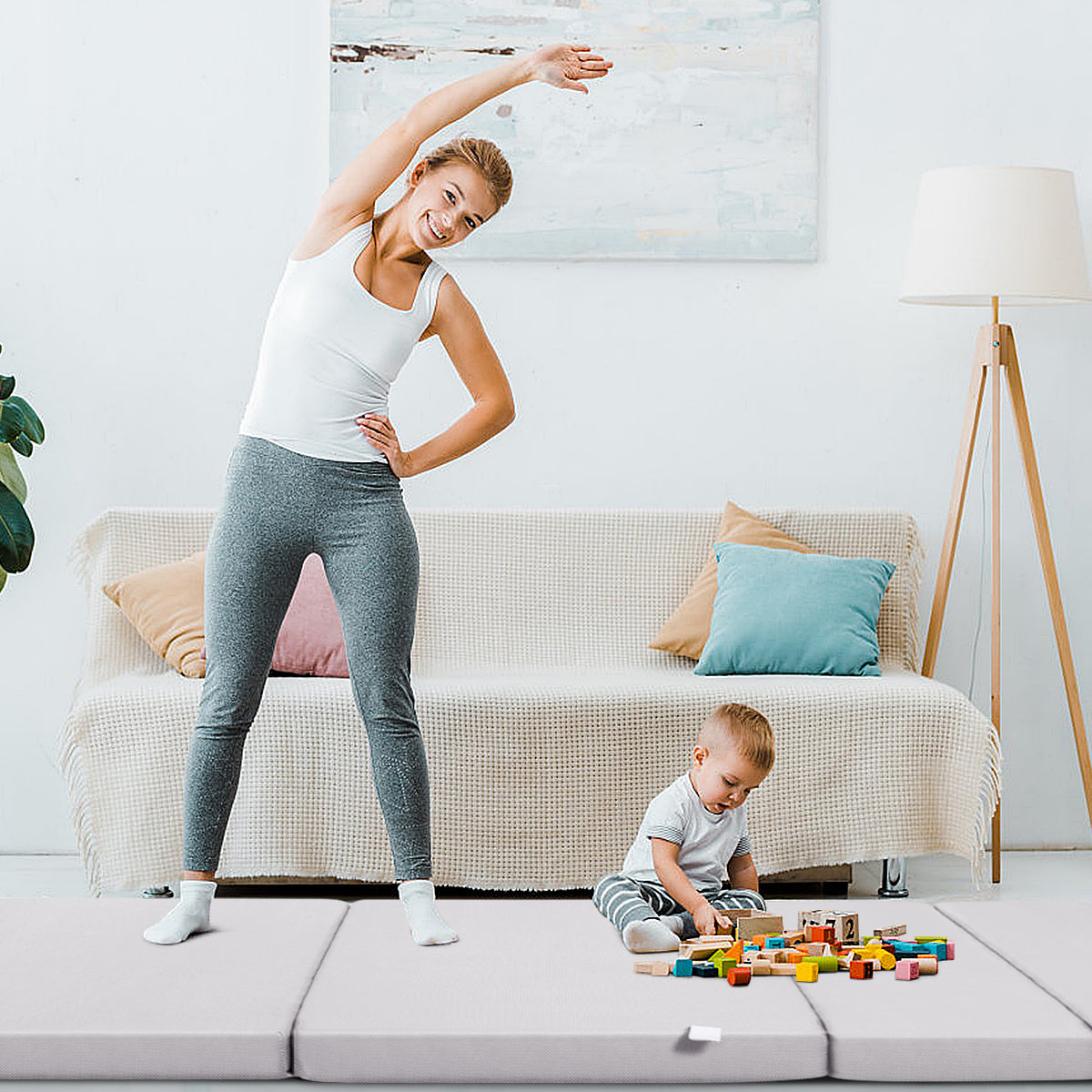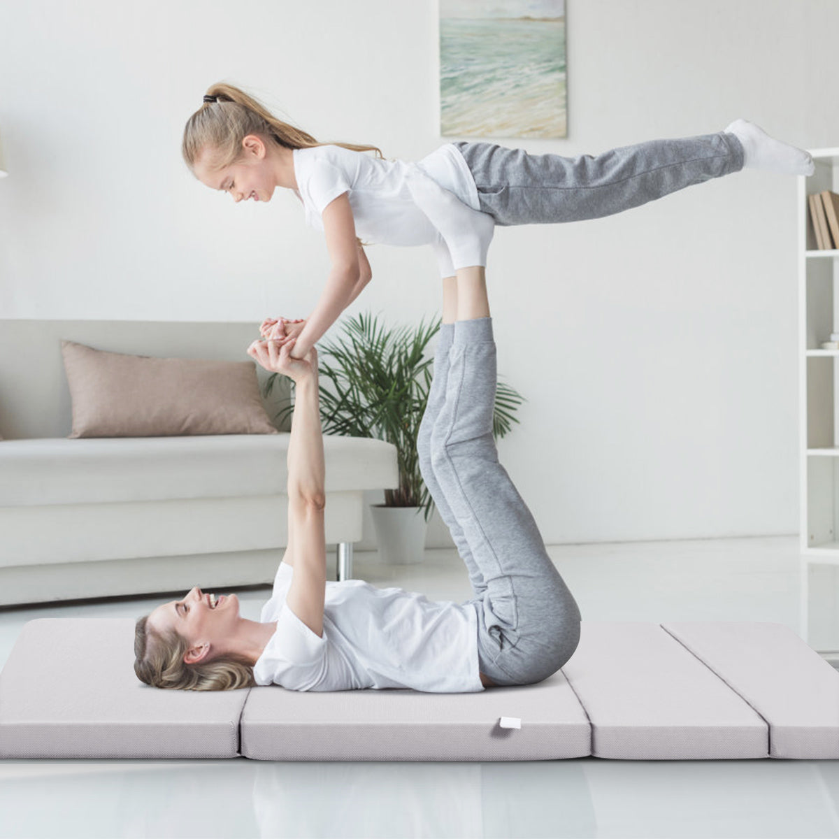Modern & Stylish Style: The 2 sides of our folding mattress are respectively designed in light grey and dark grey, so you can choose the upturned face according to your preference. Concise and modern appearance can well match with your home décor, which is best for living rooms, dorm rooms and children's playrooms