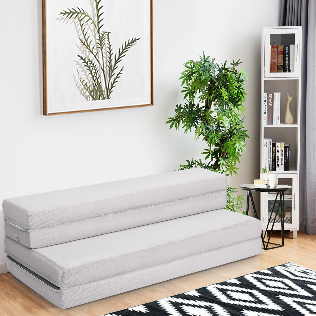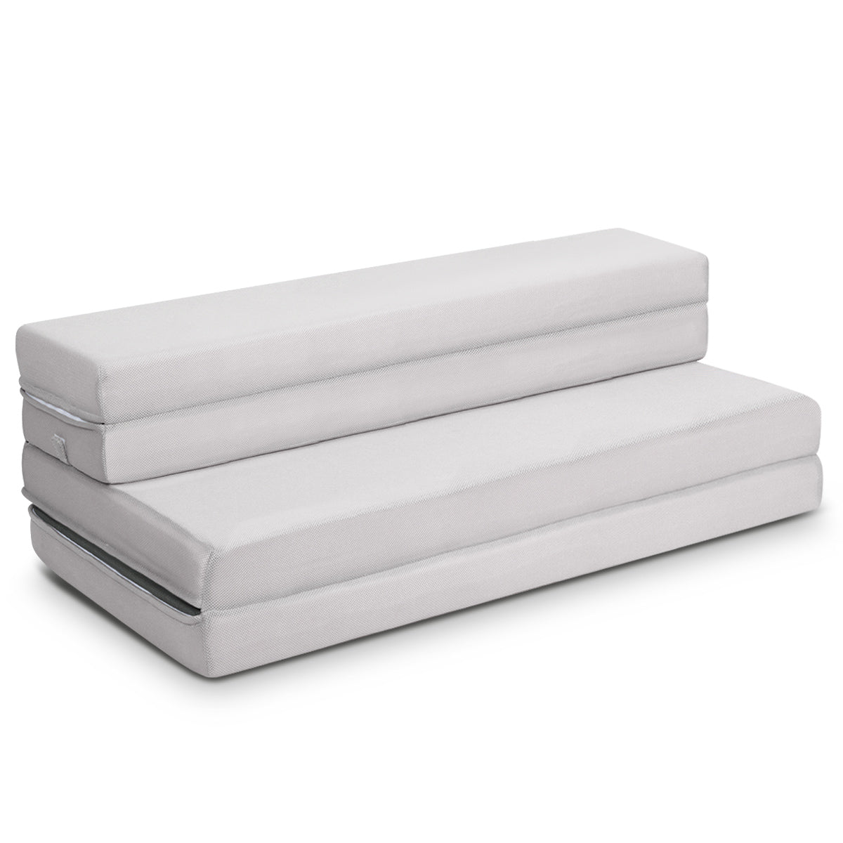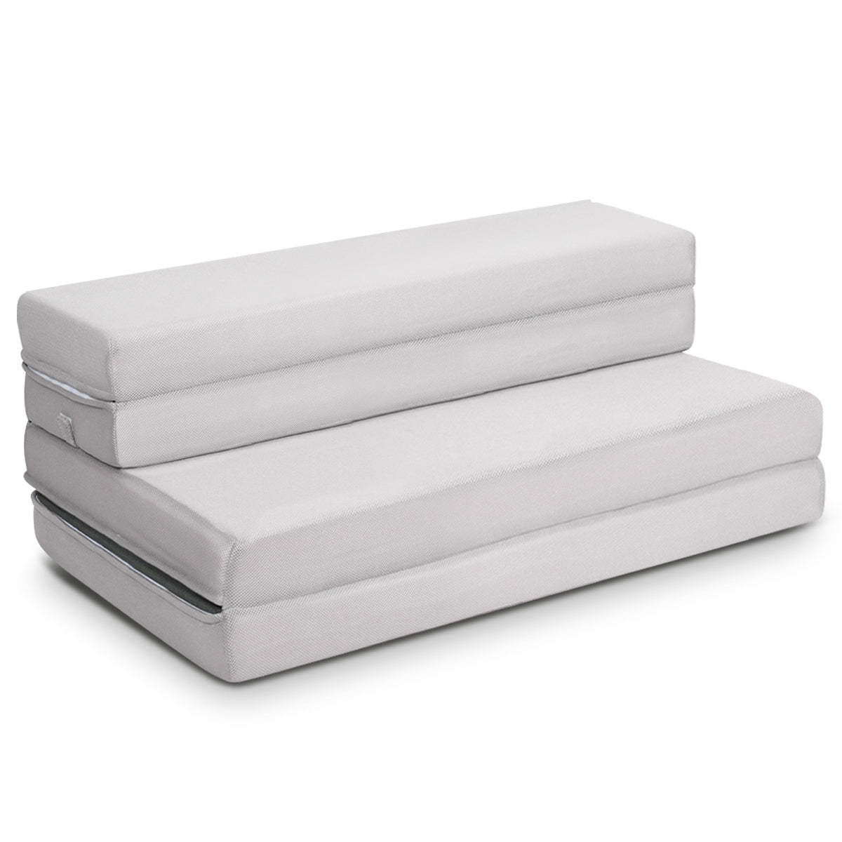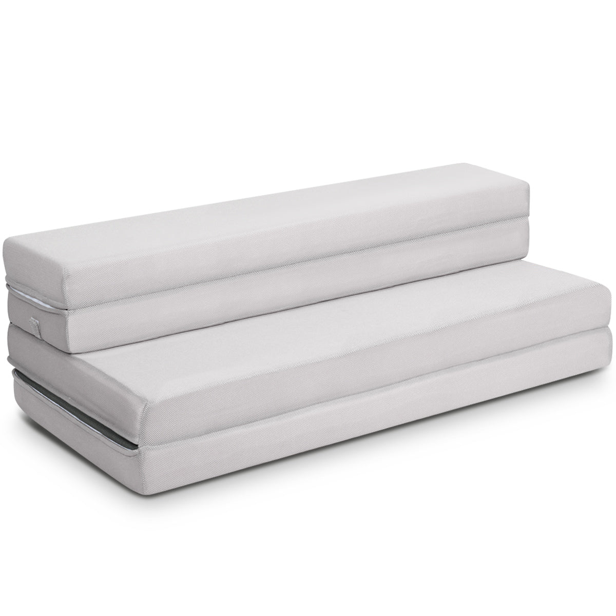 The convertible folding mattress is a perfect choice for house guests. Coming with the high:density sponge which is soft and resilient, you will feel comfortable and stress:relieving. Featuring with the removable breathable mesh and single jersey cover, our sofa bed can provide you with both cozy and reassuring. What's more, the cover can be removed for cleaning with smooth zipper. Furthermore, humanized handles and hook and loop fasteners are equipped for convenient carrying and moving. This mattress can be folded into a compact size when not in use for space saving. Because of the modern and concise design, our mattress can match well with your other furniture.