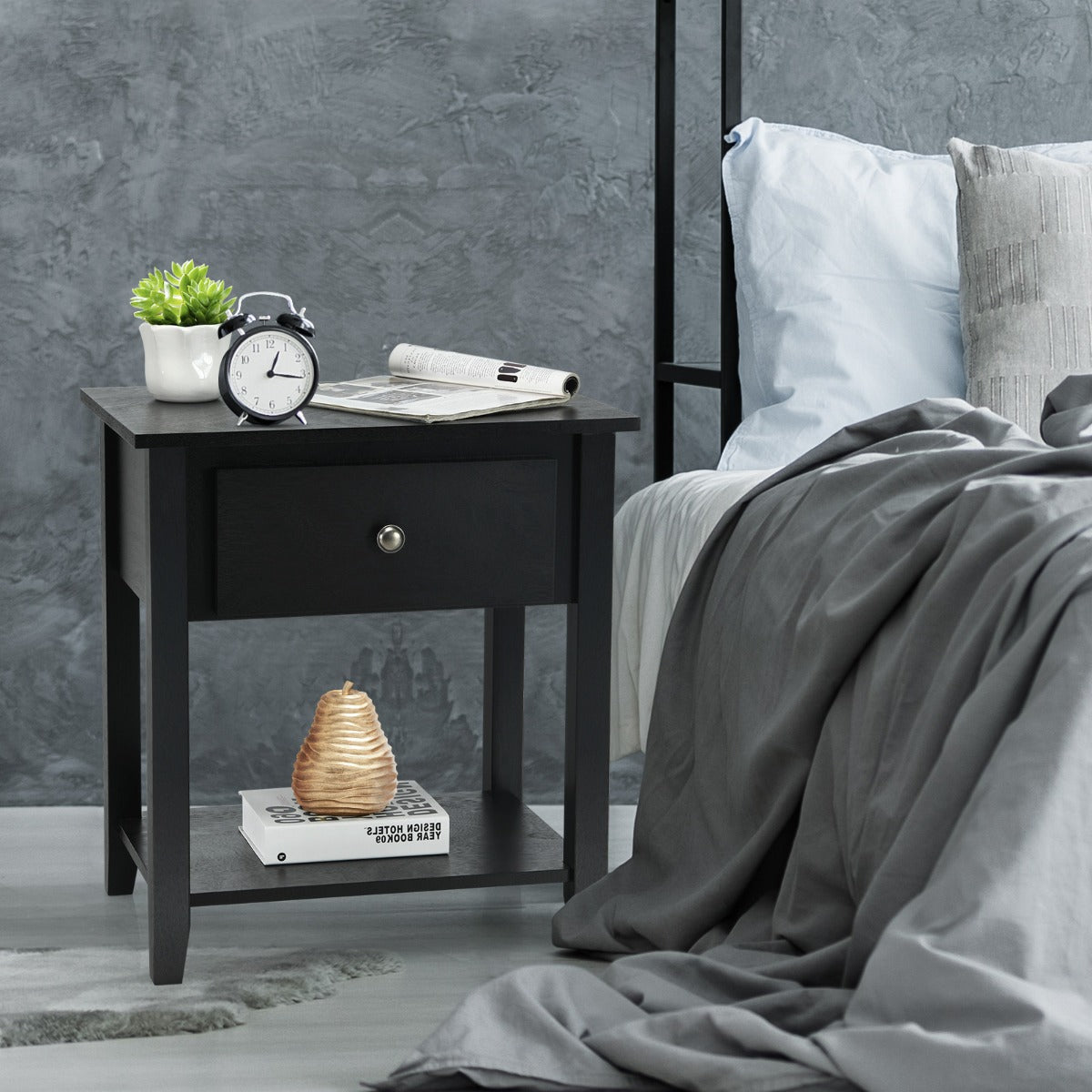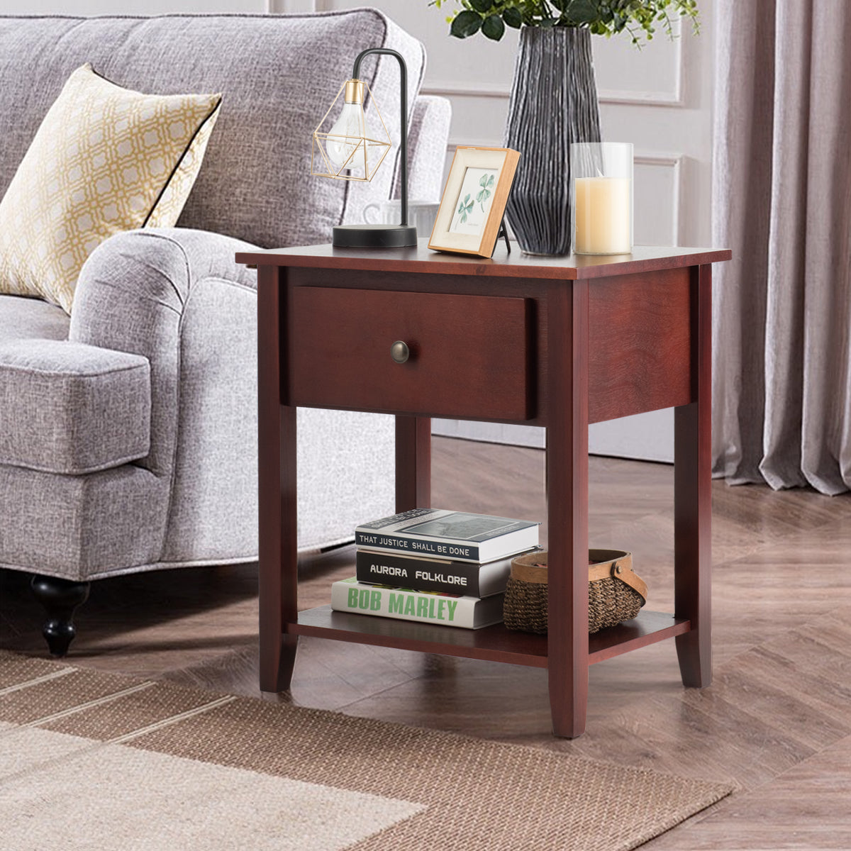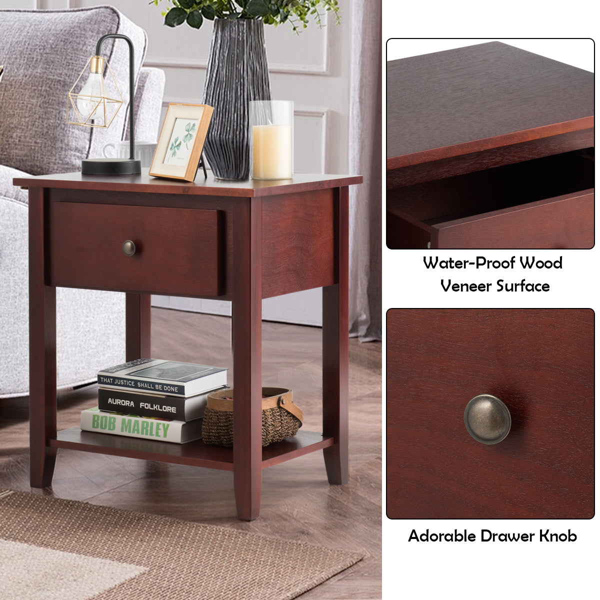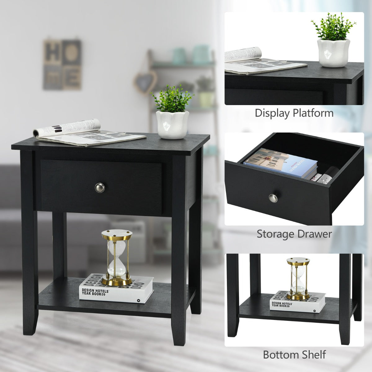 Adequate Storage Spaces: This side table can greatly increase the utilization of space and provides a perfect storage solution for your home. You can display some daily necessities on the tabletop. The drawer provides enough space to organize your items. In addition, the bottom shelf offers an extra storage place for items of different heights.