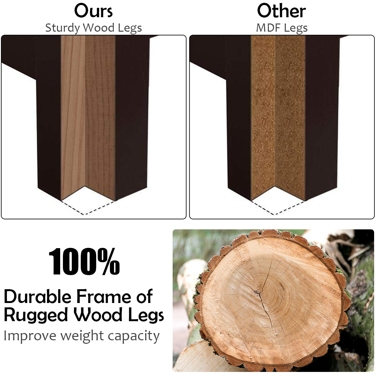 4 wooden legs provide strong support