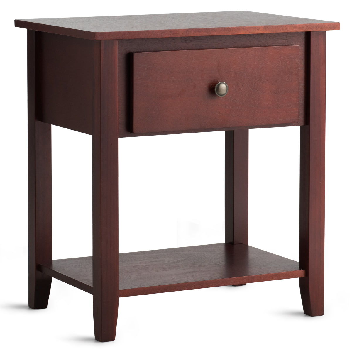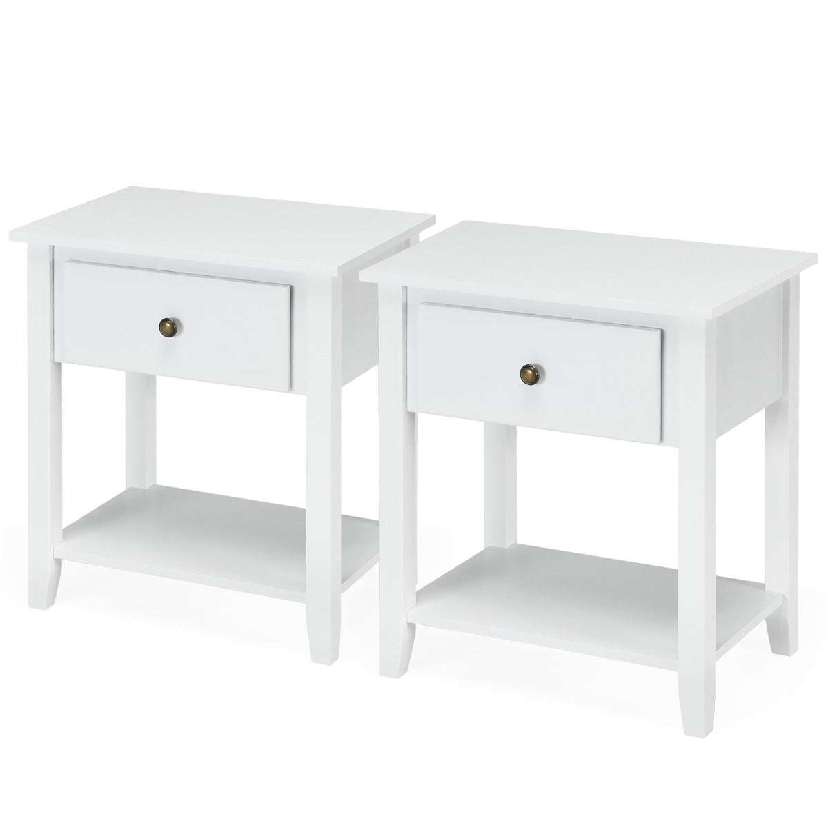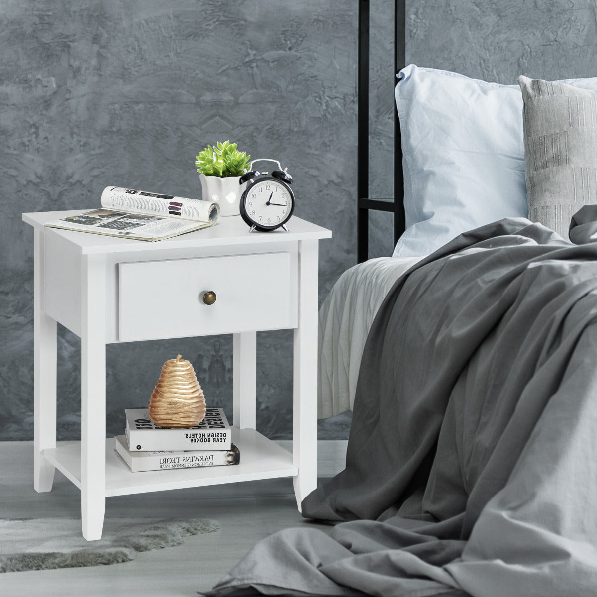 This cabinet is made of premium MDF material and pine wood, which is durable and can be used for a longer time. The strong construction and 4 legs are stable enough to support the weight of the table itself and the objects placed on it. Besides, the lightweight design is easy to transport, which allows you to place this end table anywhere you want. With a drawer and a lower shelf, this side table provides plenty of storage space for you to store and display your daily necessities. Comes with clear instructions and all components, so it is easy for you to complete the installation in a short time. The uniform spray paint forms a smooth surface, which can be easily cleaned off with a damp cloth and helps keep your house tidy. This practical side table can add an elegant feeling to your home while providing plenty of storage space and display space.