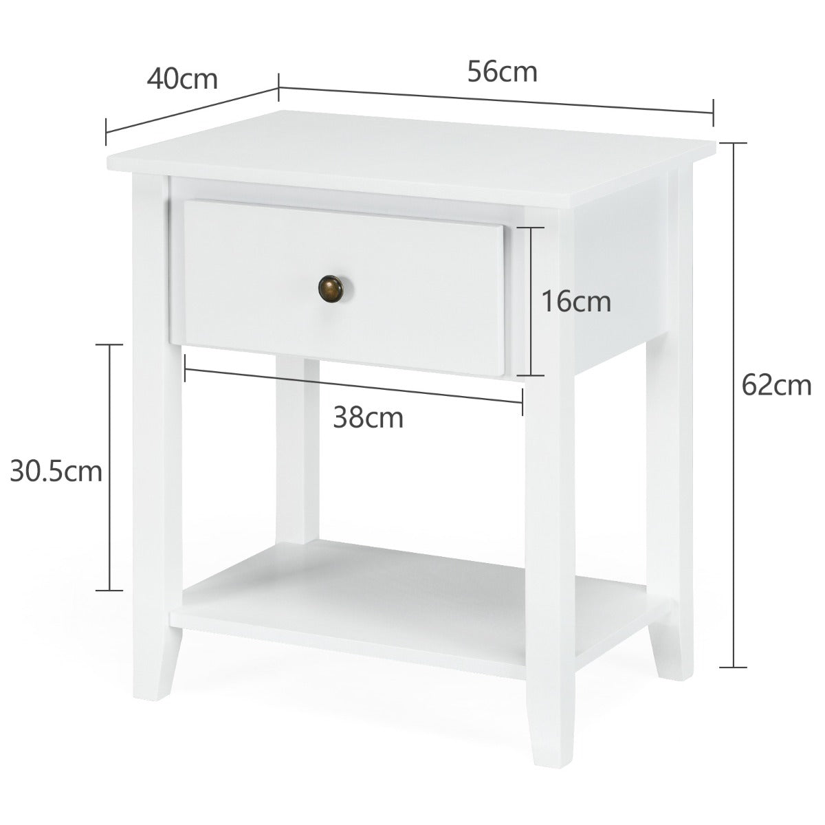 Drawer dimension: 38x16cm (L x W)