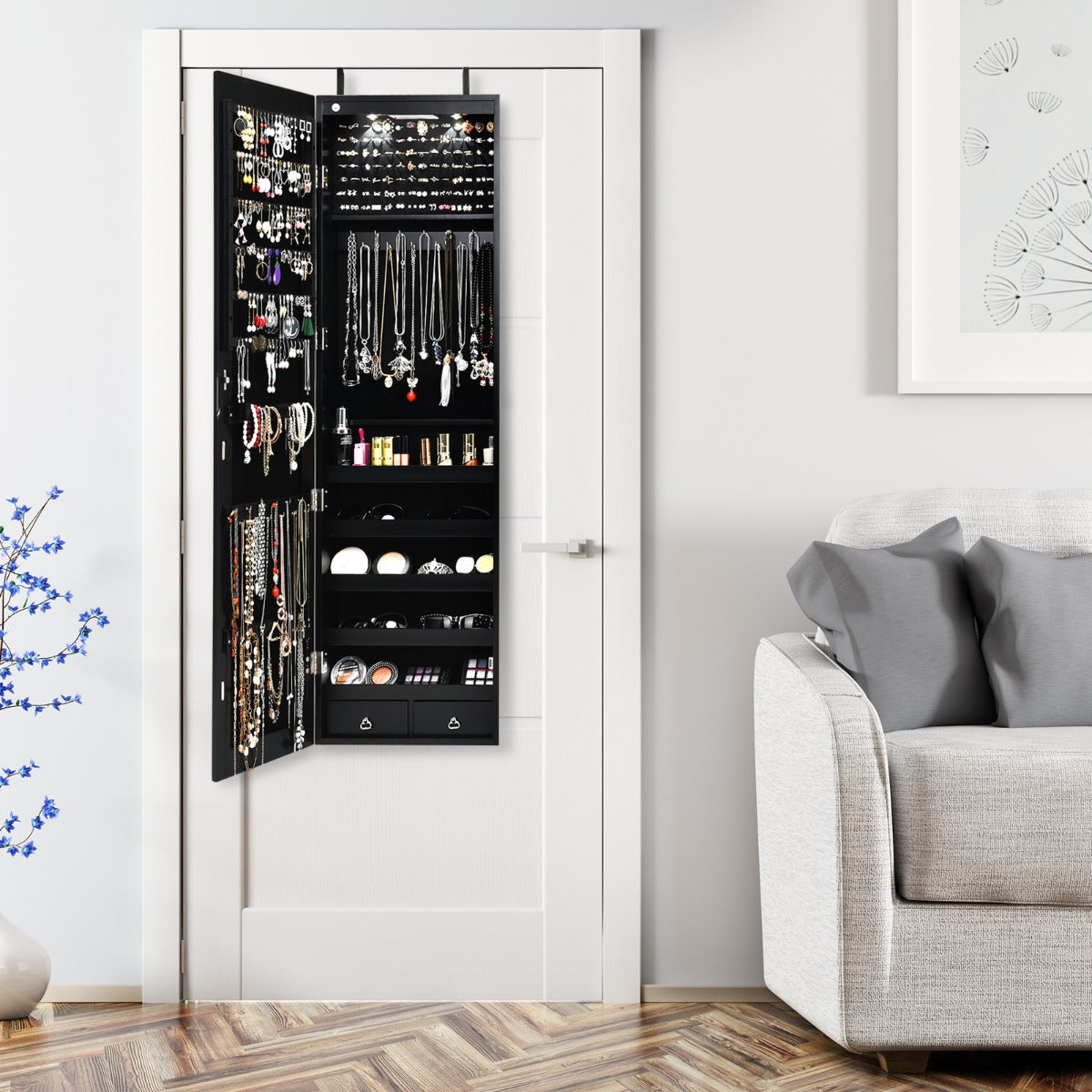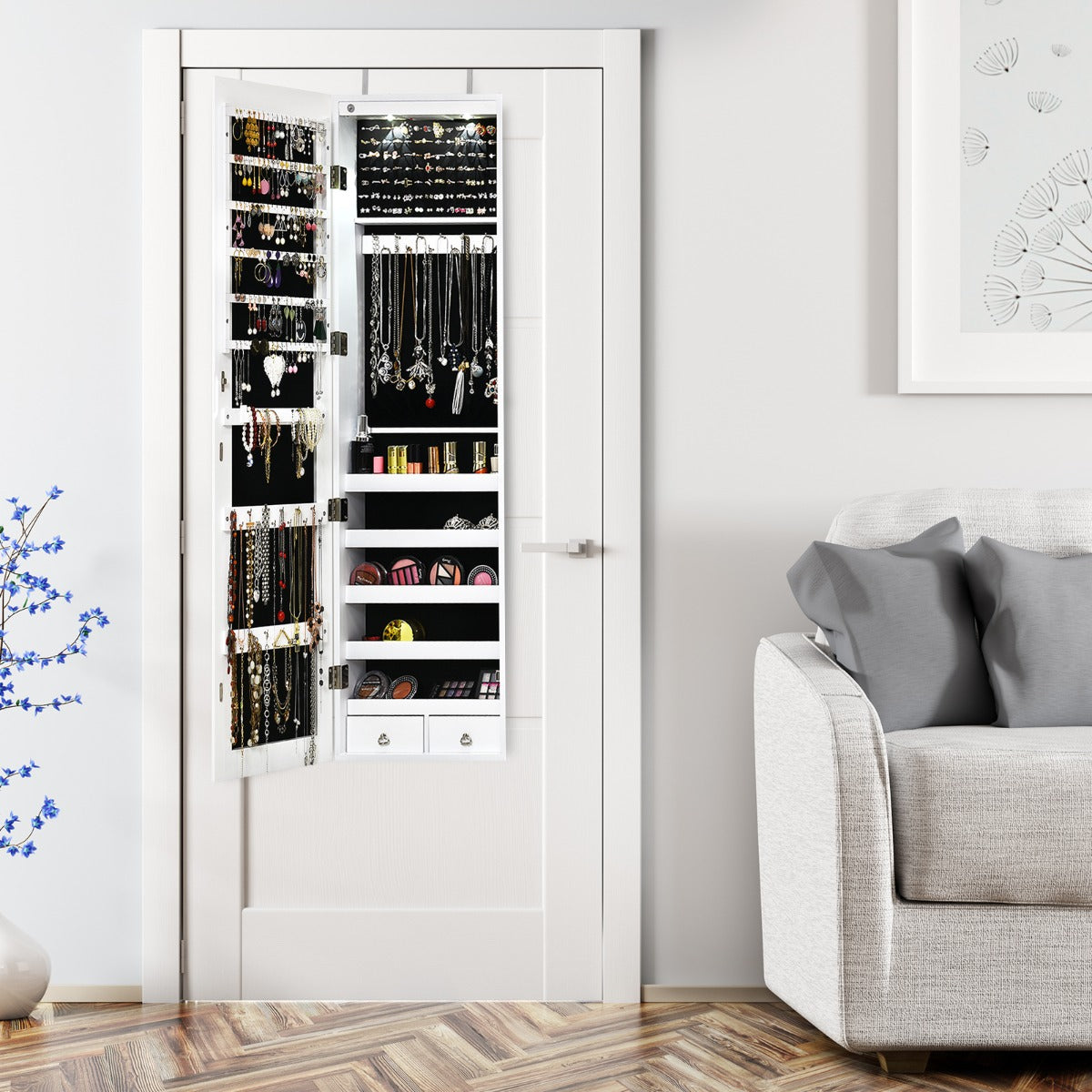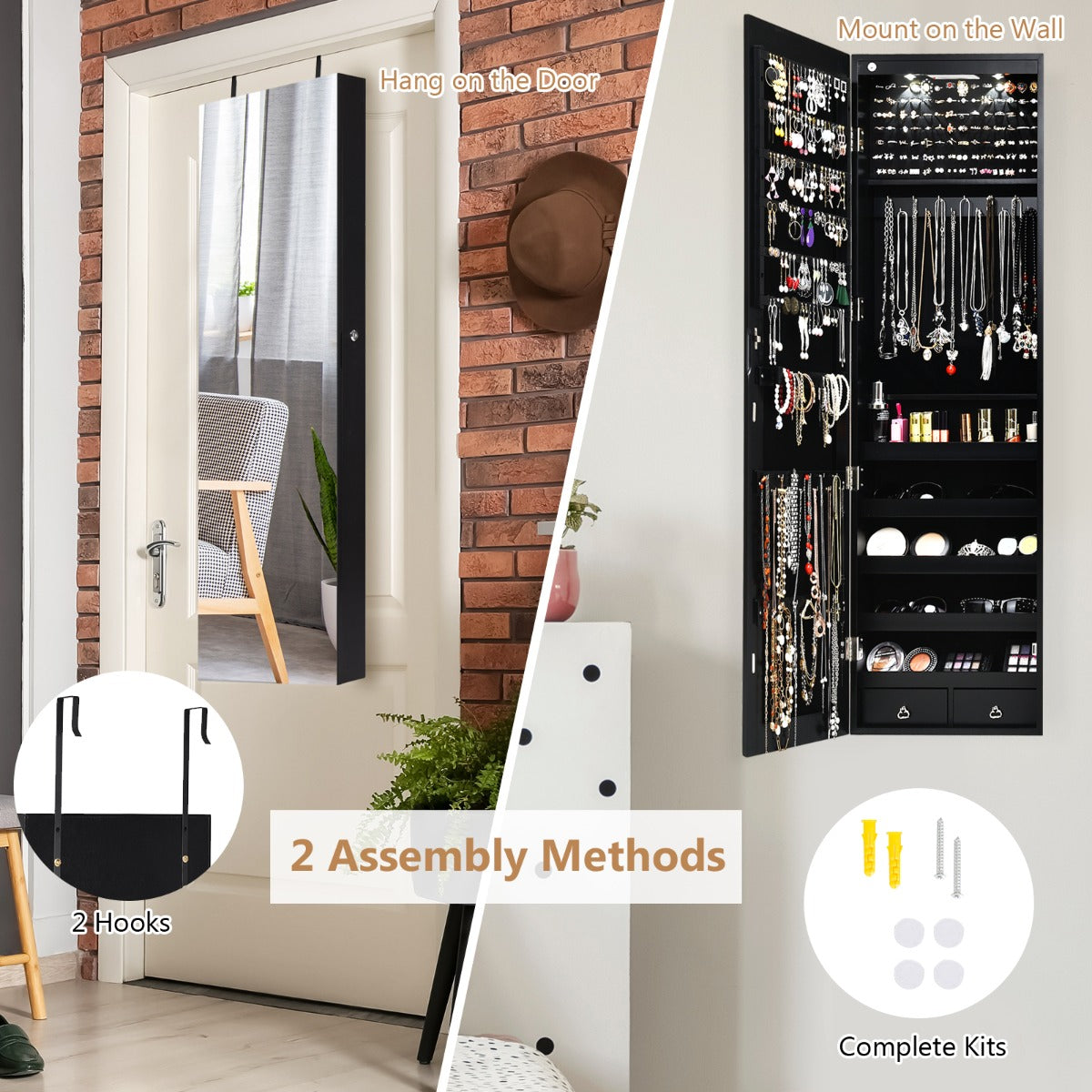 Wall & Door Mounted Available: The mirror jewelry armoire can be hung on the door with the provided hooks, greatly saving space. Additionally, the complete kits allow you to install the makeup armoire on the wall as you like. Coming with easy-to-follow manual, the assembly can be completed quickly.