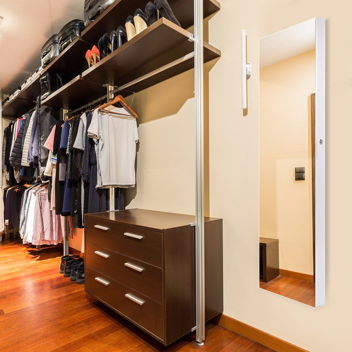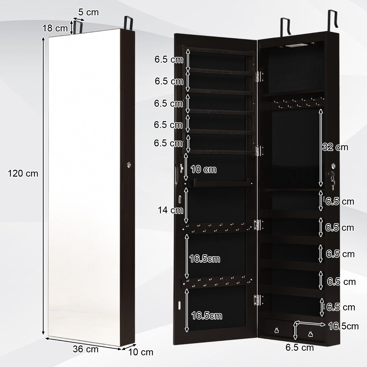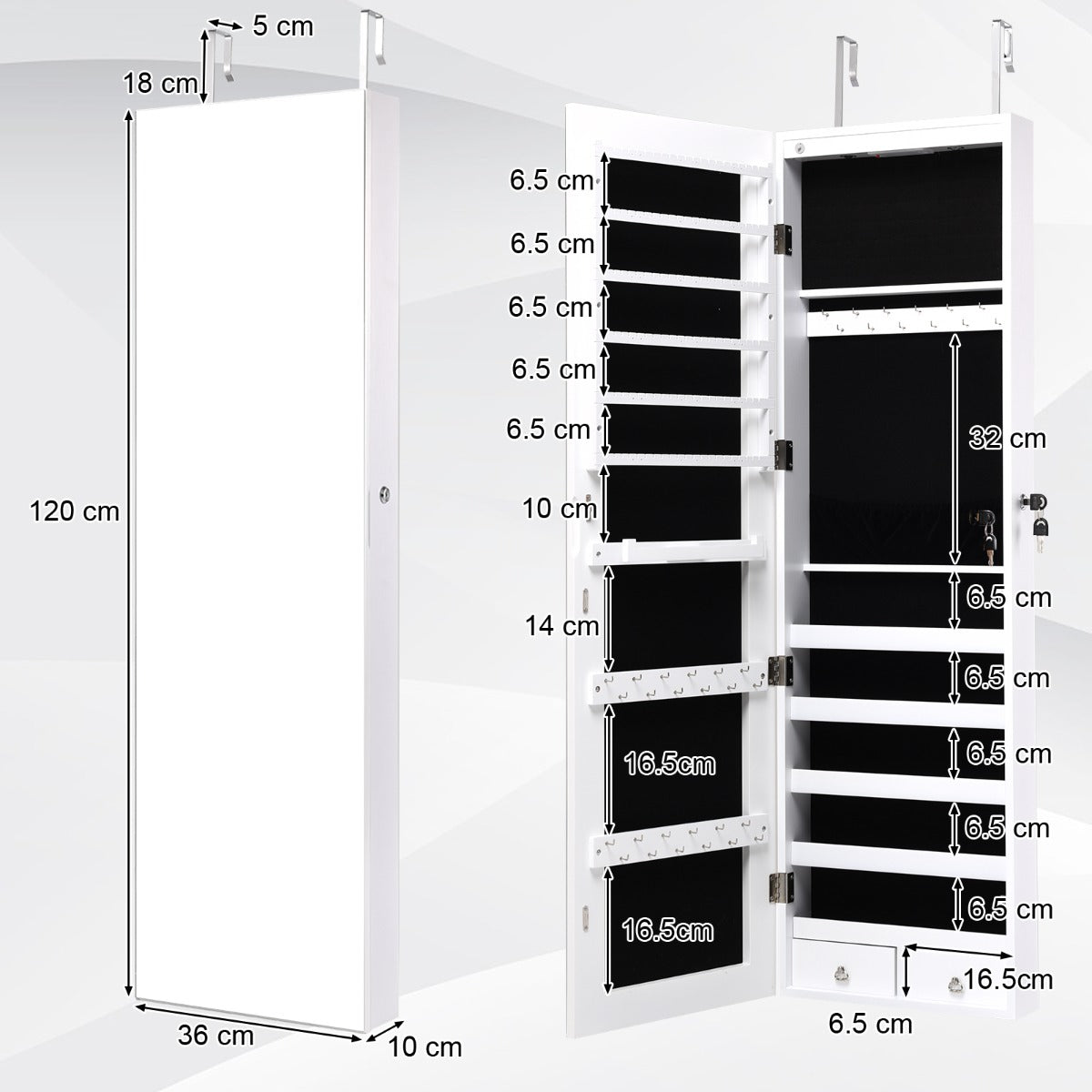 Full-length Dressing Mirror: Measuring 36 cm x 10 cm x 120 cm (L x W x H), this led jewelry organizer offers large full-length mirror to let you check your look from head to toe. Moreover, mirrored design brings 2-in-1 use, and the armoire organizer is suitable for bedroom, dressing room, and many other occasions.