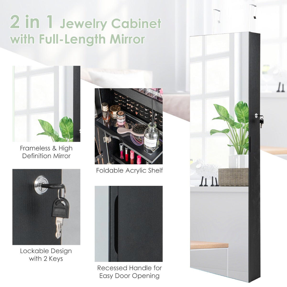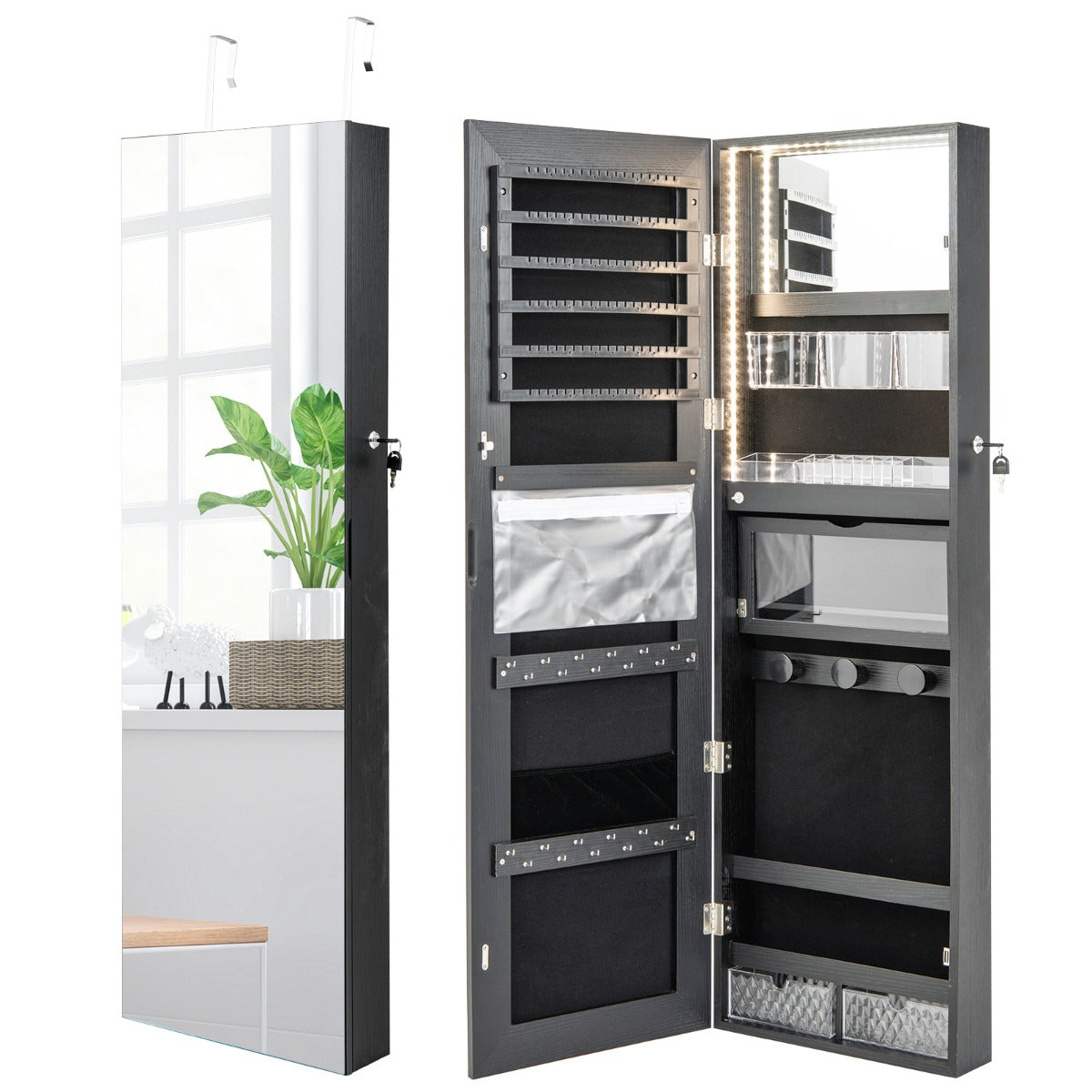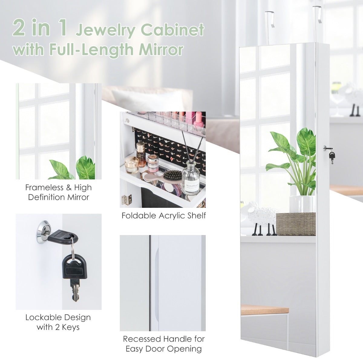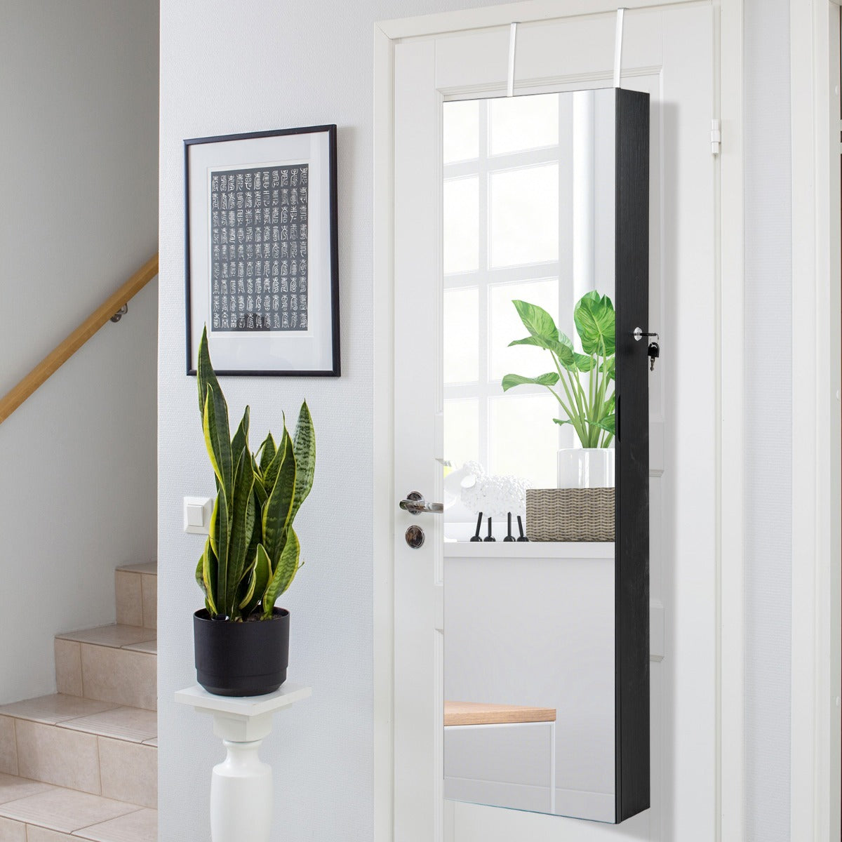 Wall Mounted or Door Hanging Jewelry Armoire: You can mount this mirrored jewellery organizer on the wall by using the screws supplied or hang it on the door with the hooks included. 2 adjustable heights are available when hanging the cabinet over the door. Moreover, this mirrored jewjewellerybinet is pre-installed to save time and energy.