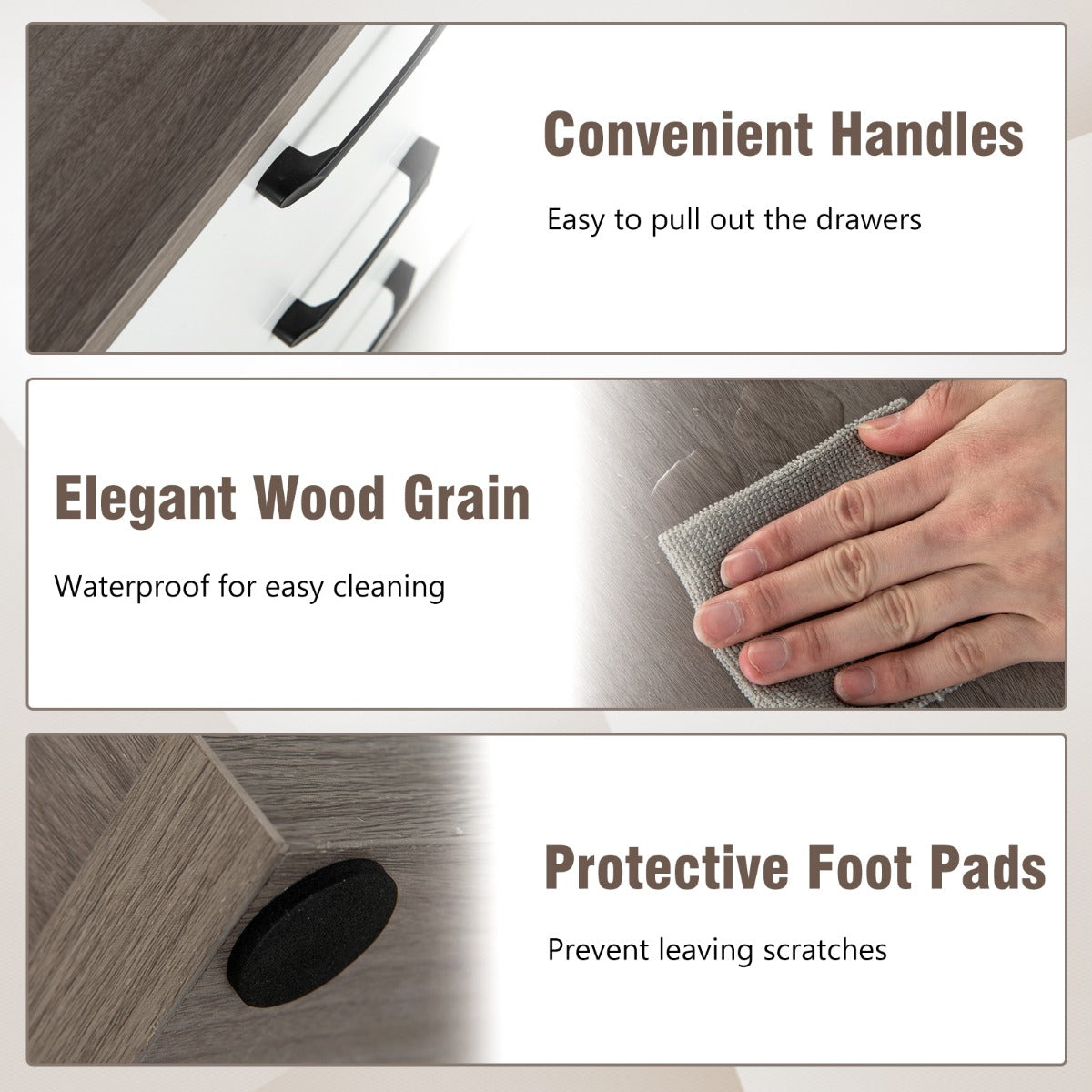 Brighten up Your Living Space: The perfect combination of white-painted surface and gray wood grain showcases modern and stylish appearance. So simple yet elegant the design of storage dresser is that it will match well with different home decoration, either for living room, bedroom, or study.