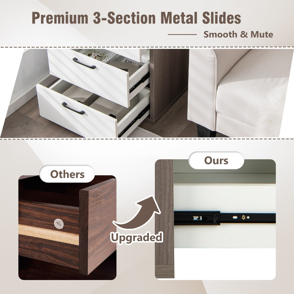 Practical 3 Drawers for Storage: The storage dresser is designed with wide cabinet top and 3 slide-out drawers to help you sort various daily supplies in order and release you from trouble of messy small stuffs. Meanwhile, the drawers feature full-extension ball bearing drawer slides which make it smooth to open or close.