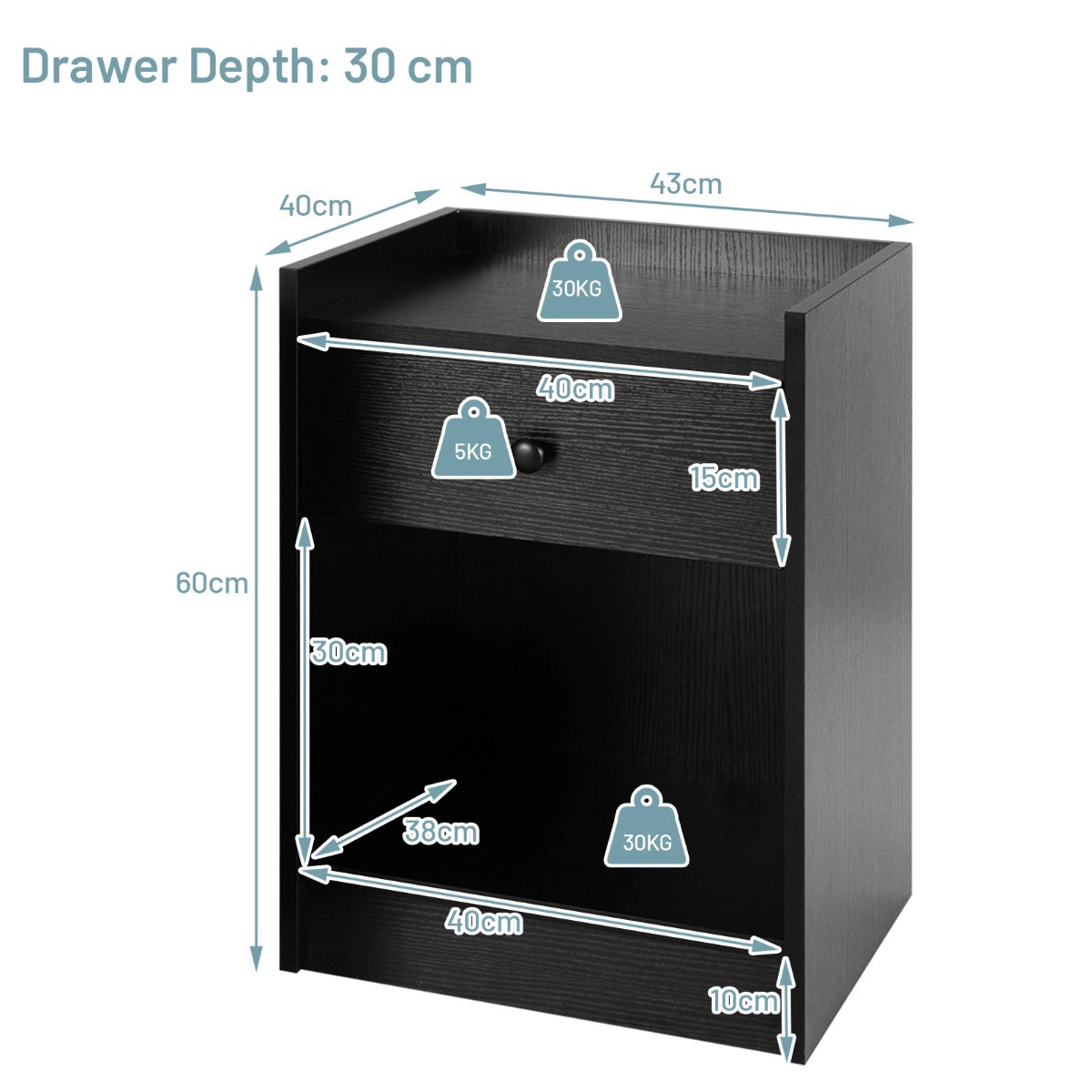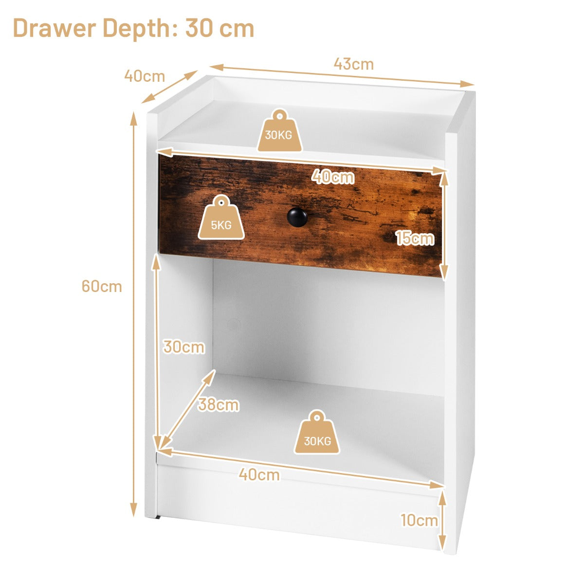 Our 2-piece bedside table with drawer and open compartment can help you sort your items. The durable MDF material ensures its long-term use. The table top and open compartment can support a weight of 30 kg, and the drawer can...View More
