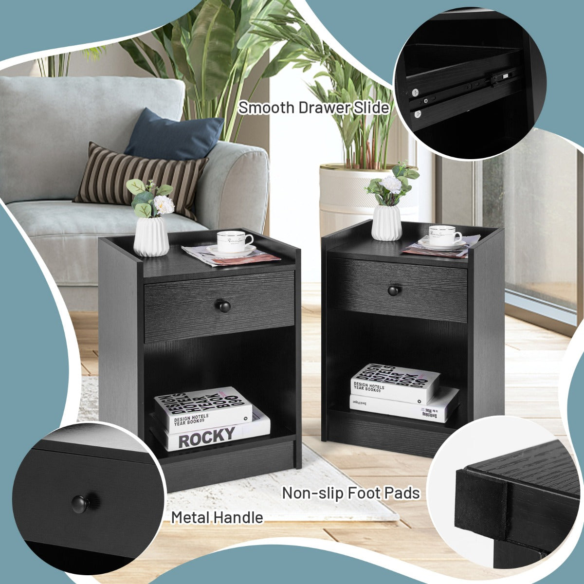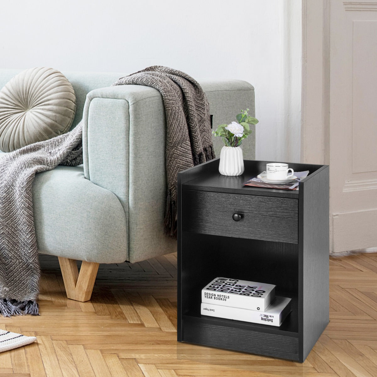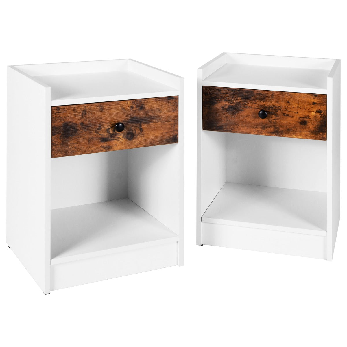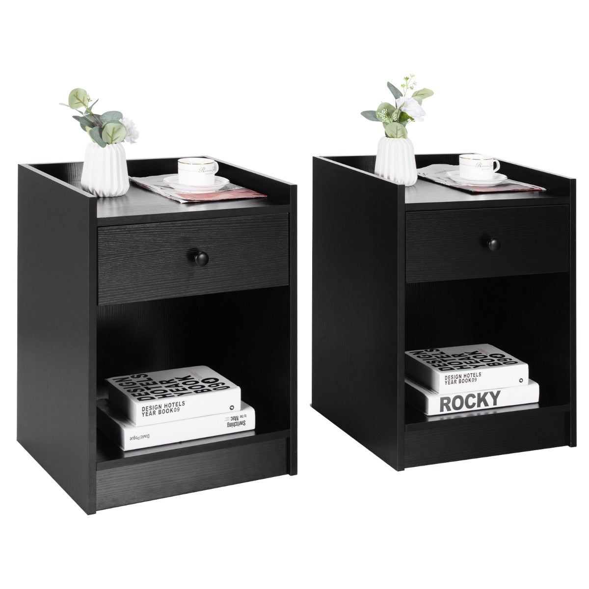Aussies Market Set of 2 Nightstand with 1 Drawer and Storage Compartment