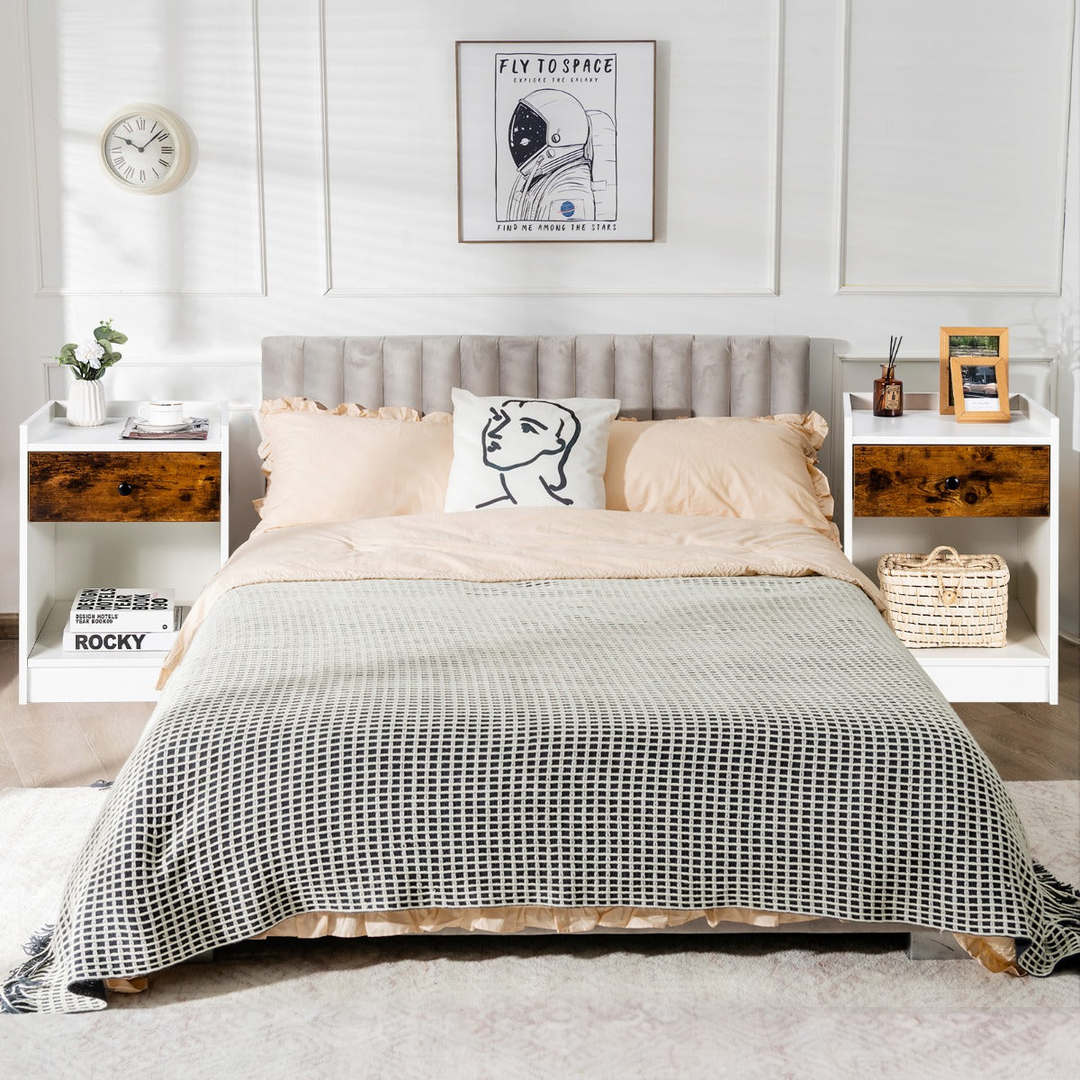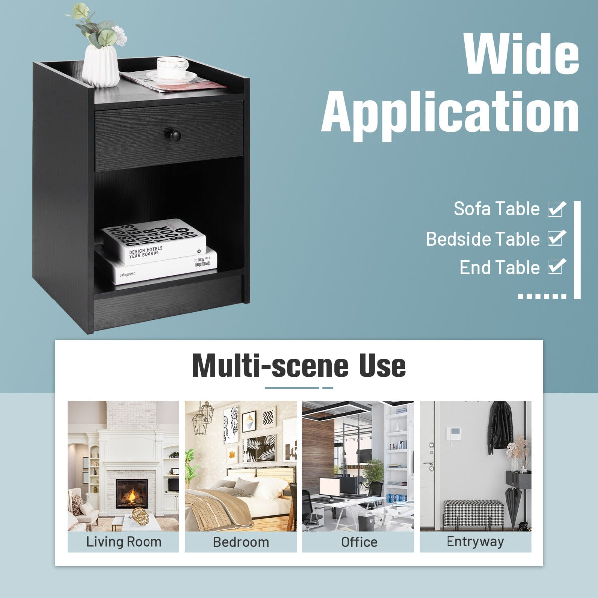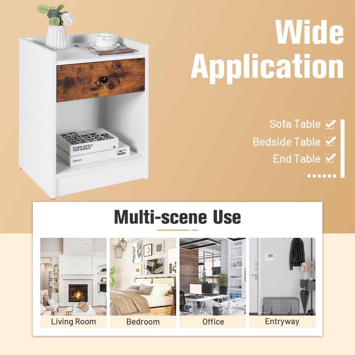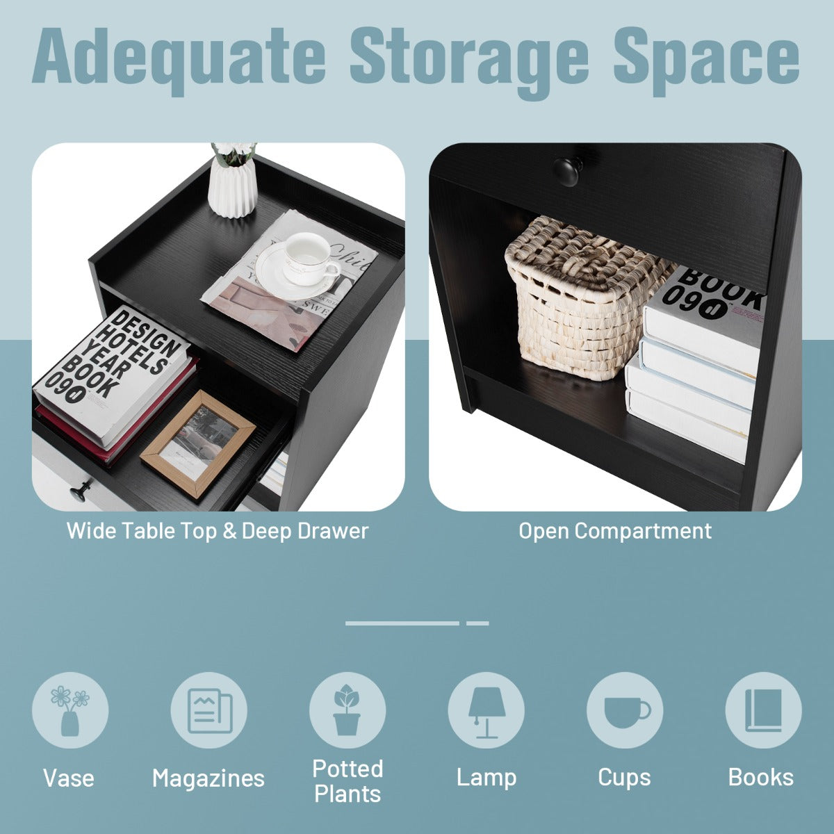 Aussies Market Set of 2 Nightstand with 1 Drawer and Storage Compartment