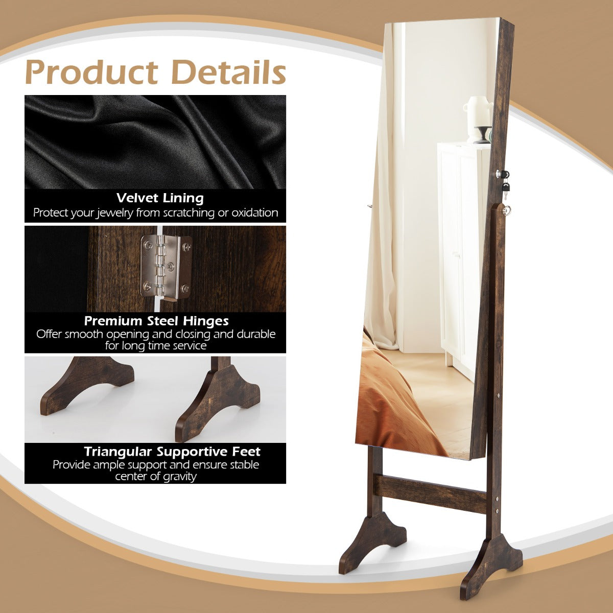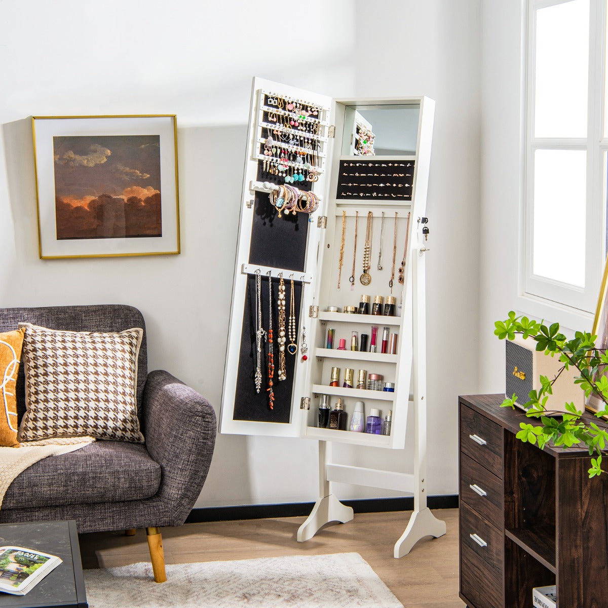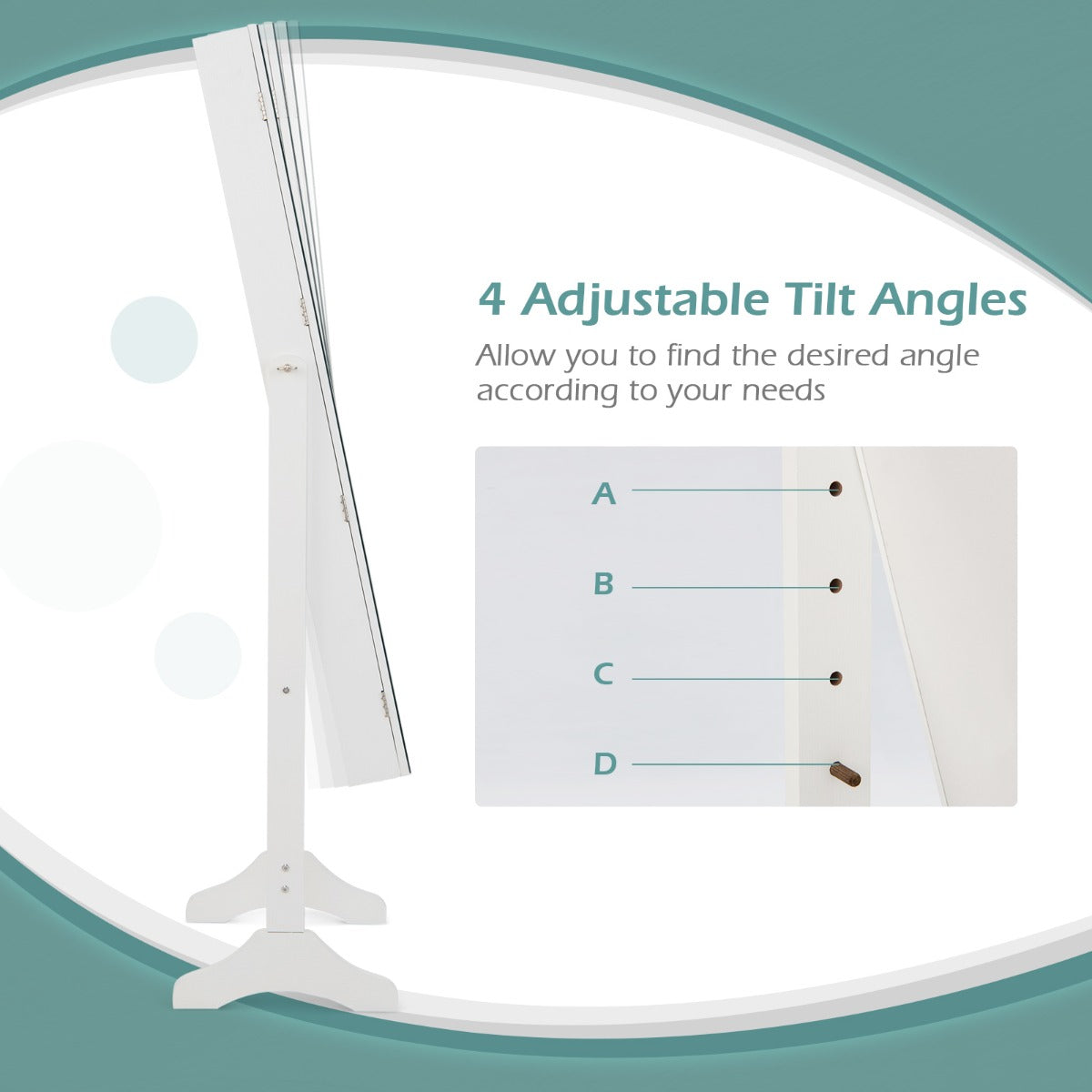 Adjustable Full-length & Frameless Mirror: The full-length mirror of this standing jewellery cabinet is frameless, which provides a wider view from head to toe comparing framed mirror. Also, the mirrored jewellery cabinet features 4 adjustable tilt angles, allowing you to find the desired angle according to your needs.