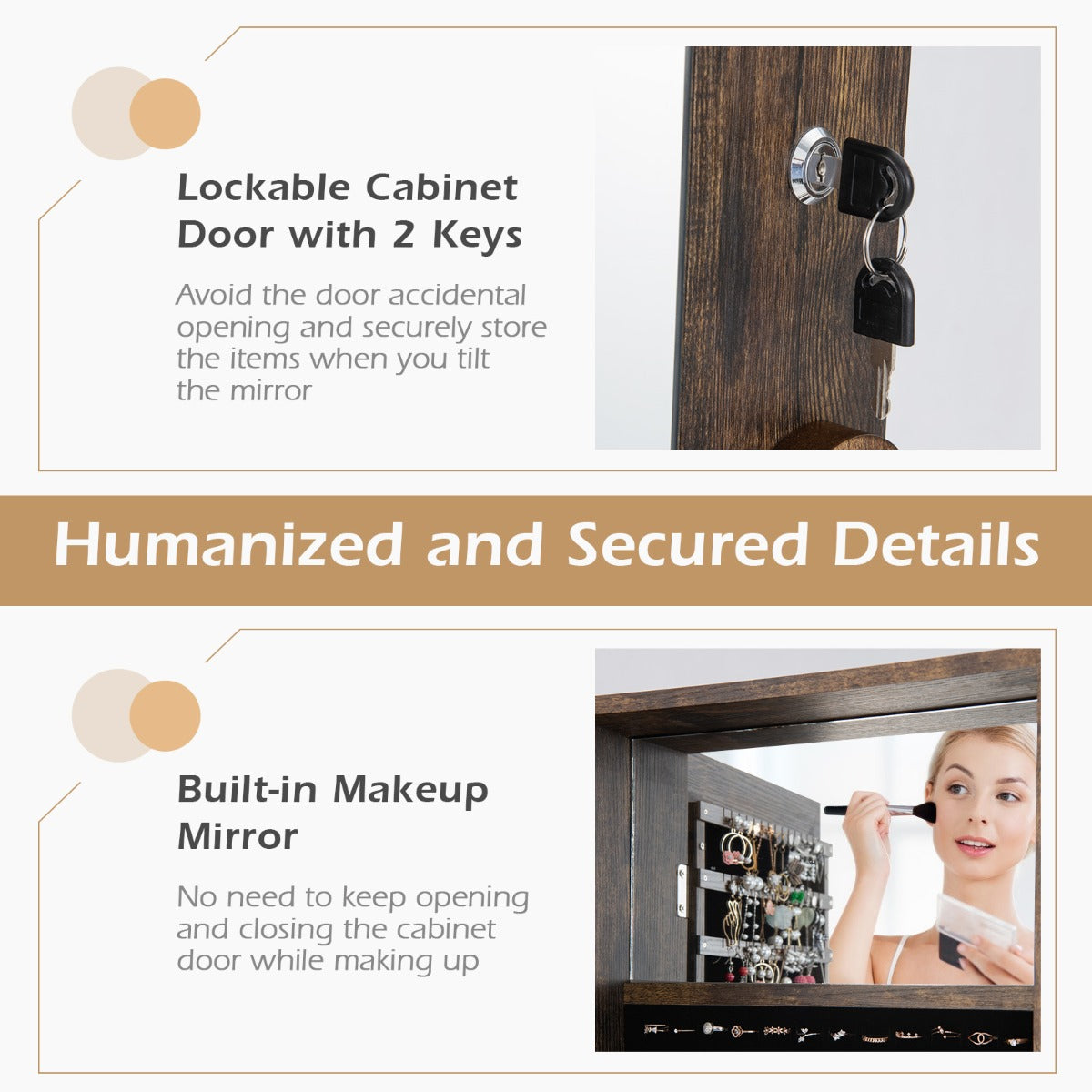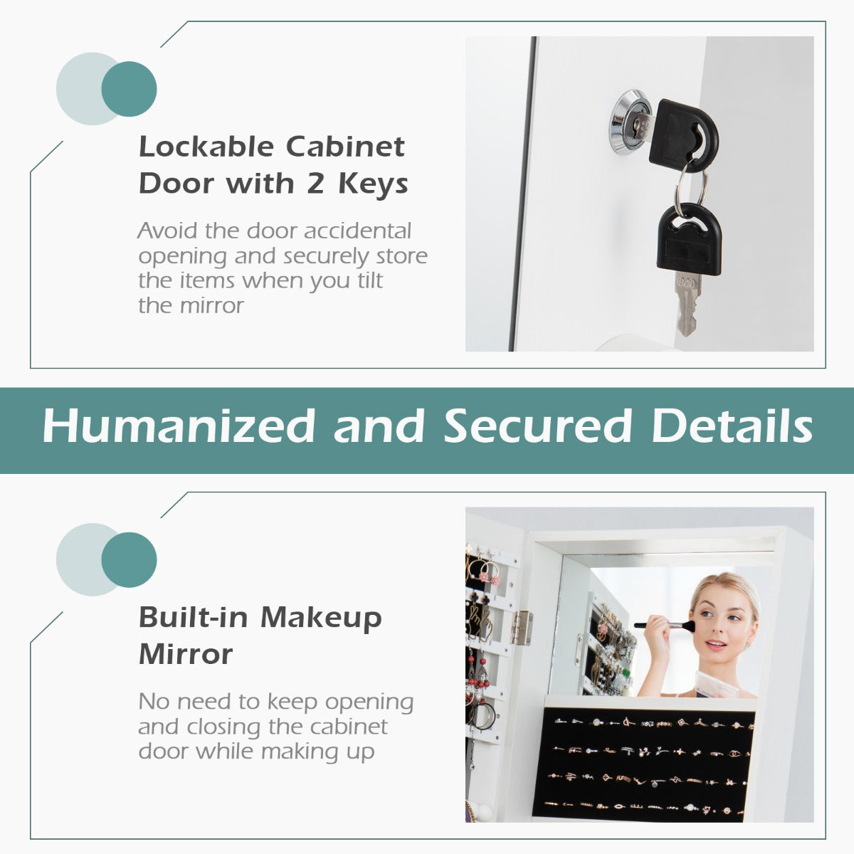 Built with Lockable Door & Makeup Mirror: Our jewellery storage cabinet is equipped with a lockable door that avoids the door from accidental opening and keeps items in place when you tilt the mirror. Moreover, the built-in mirror is convenient for makeup, avoiding frequent opening and closing of the cabinet door.