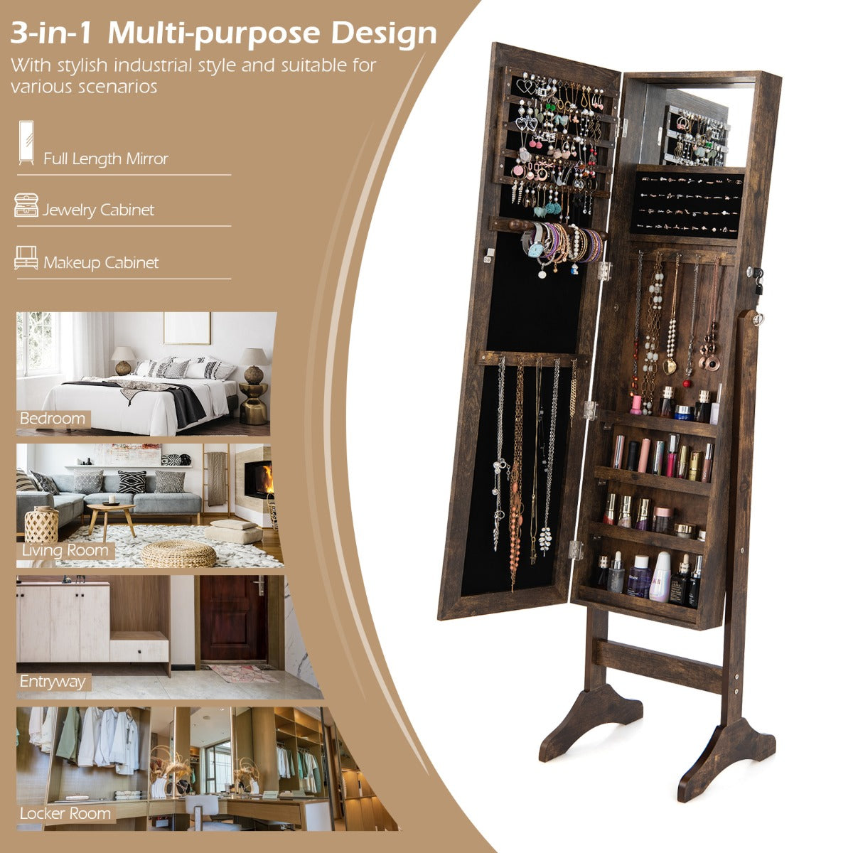3-in-1 Design for Various Scenarios: This 3-in-1 multipurpose jewellery cabinet combines a full-length mirror, jewellery cabinet and makeup cabinet in one, which is space-saving and suitable for many places like bedrooms, locker rooms and more. Also, the assembly is easy with instructions and accessories.