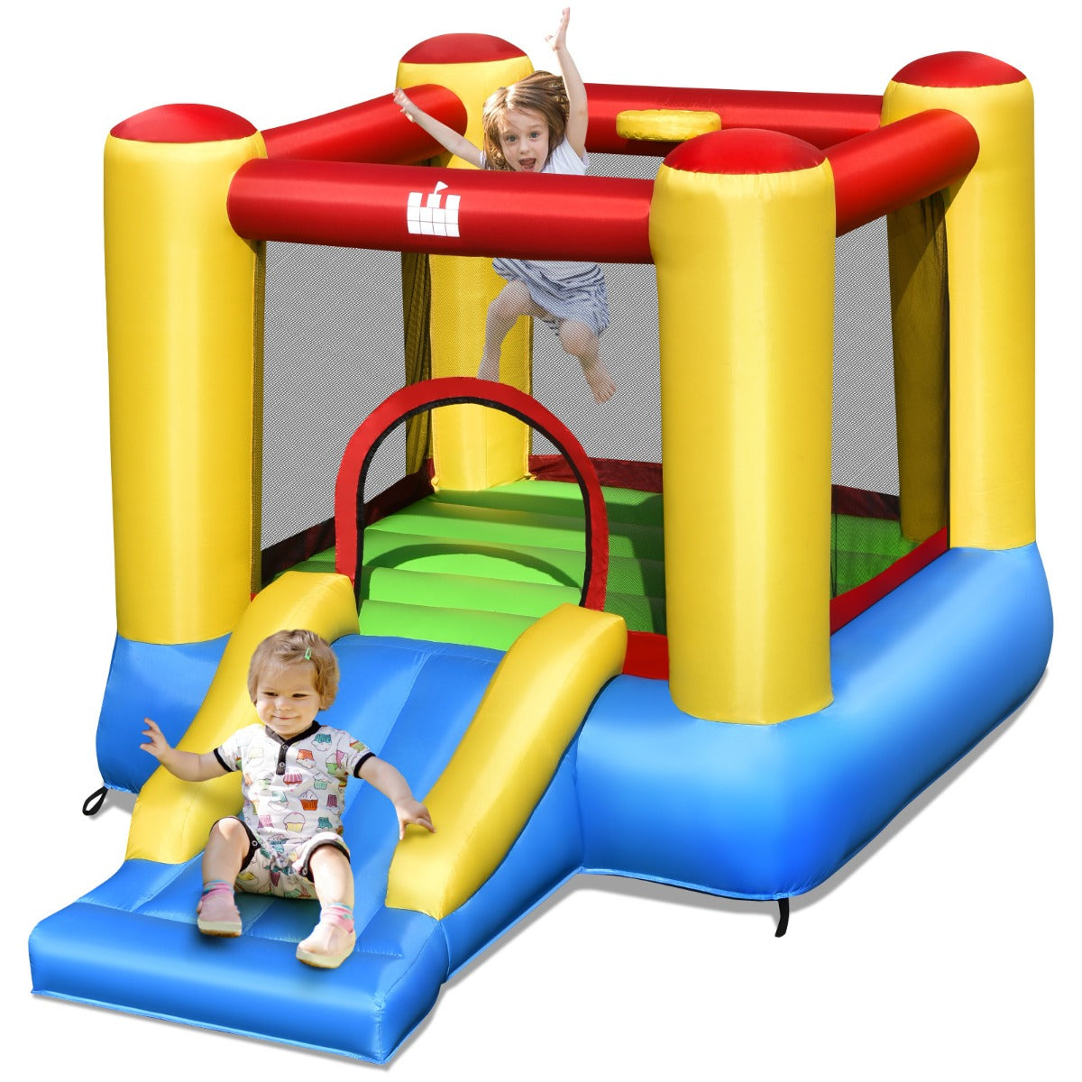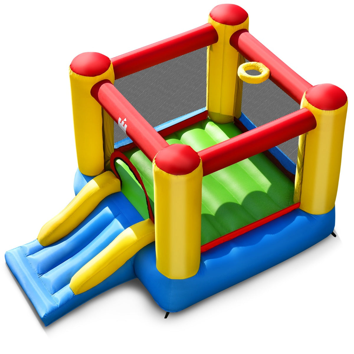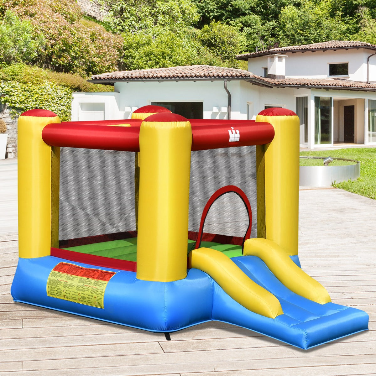 A large jumping area with a slide provides endless fun