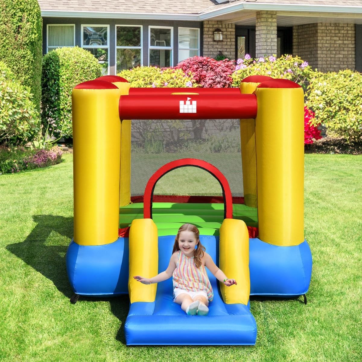 Ideal Gift & Multiple Use: With a cute and colourful appearance, this inflatable bouncer will be a great gift for birthdays, Thanksgiving, Christmas or any holiday season. What's more, you can place this versatile bounce castle in the garage, backyard, garden and so on, which allows your children to jump and play with friends happily.