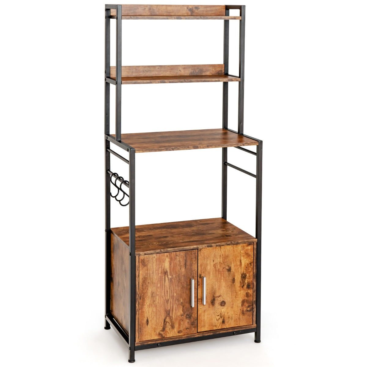 Ample Space for Storage: The 4-tier storage shelving can accommodate a variety of stuff, such as book, flavouring, tableware, kitchen appliance, etc. Besides, the storage cabinet with large storage capacity allows you to sort out various daily items. S-shaped hooks help to hang kitchen utensils and towels for access.