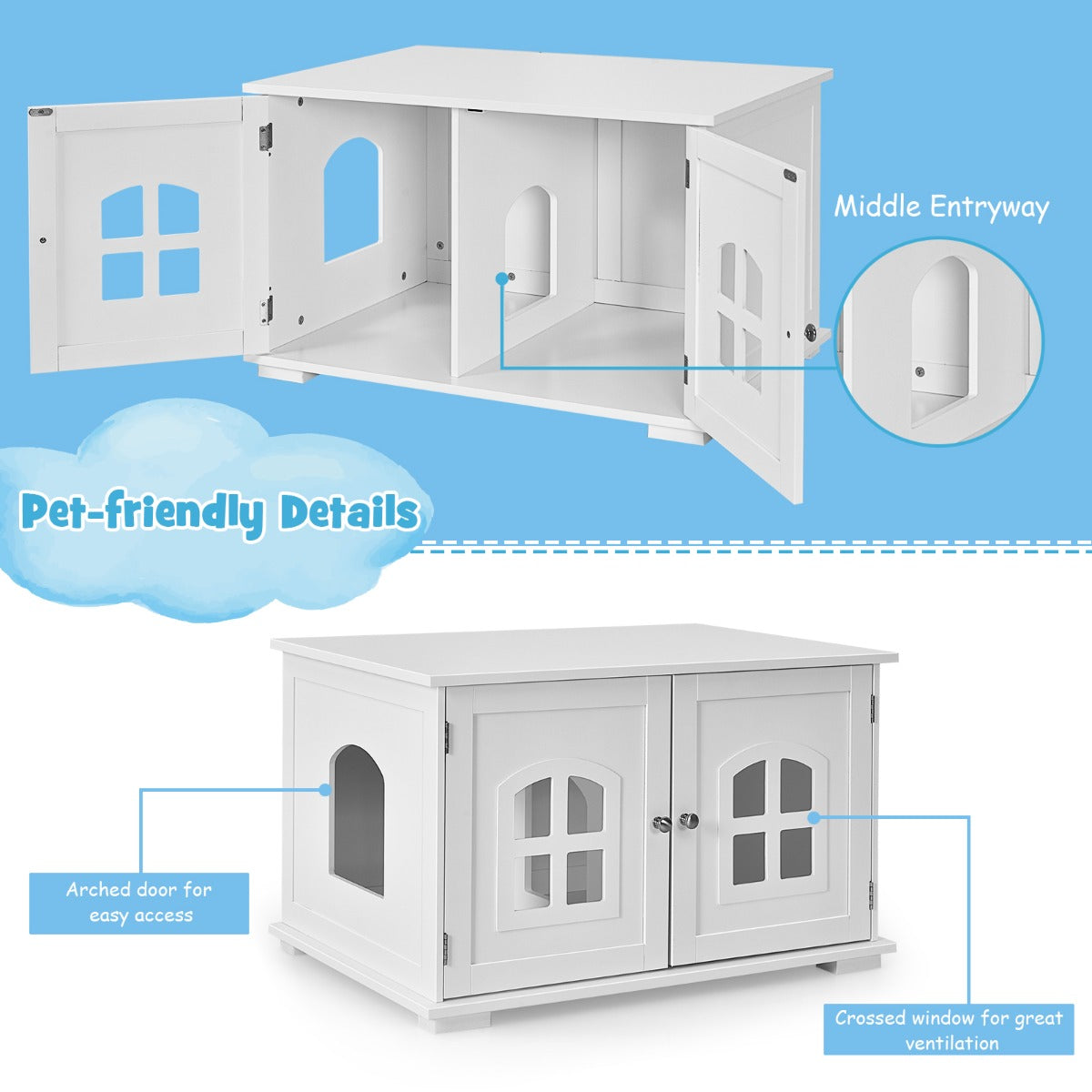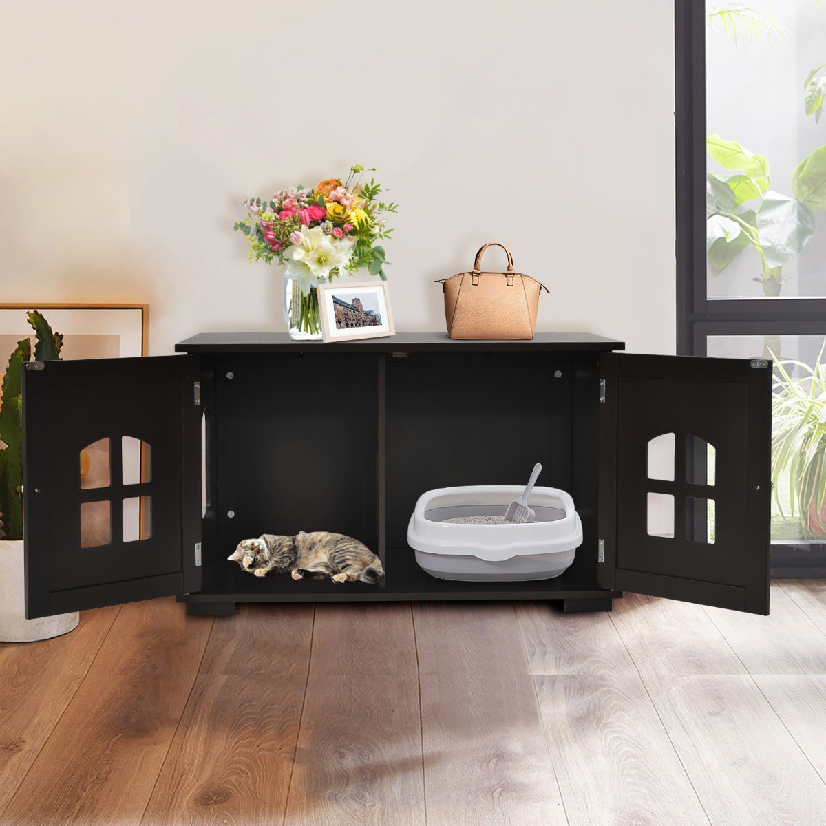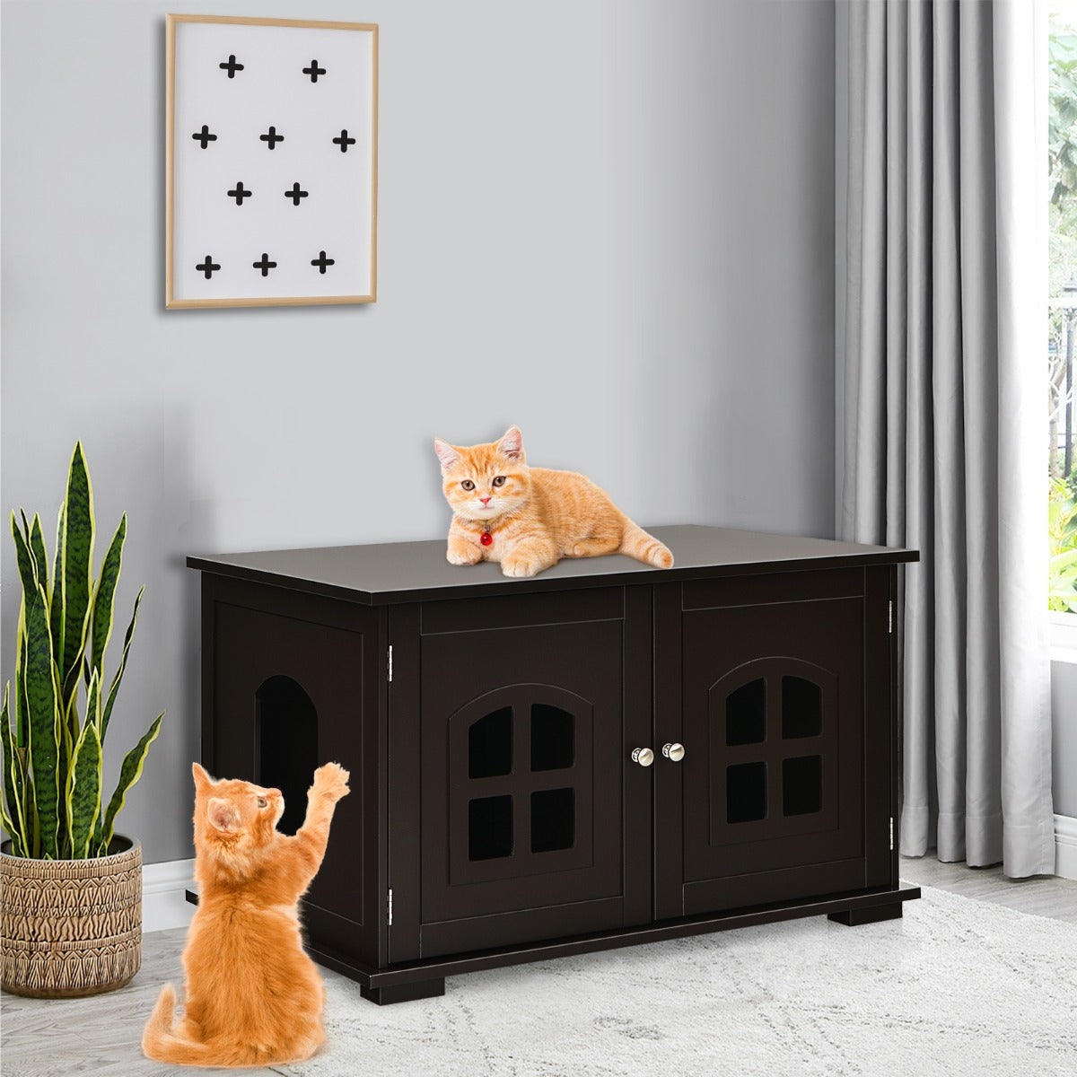 Aussies Market Cat Hidden Litter Box Enclosure with Cross Windows& Double Door