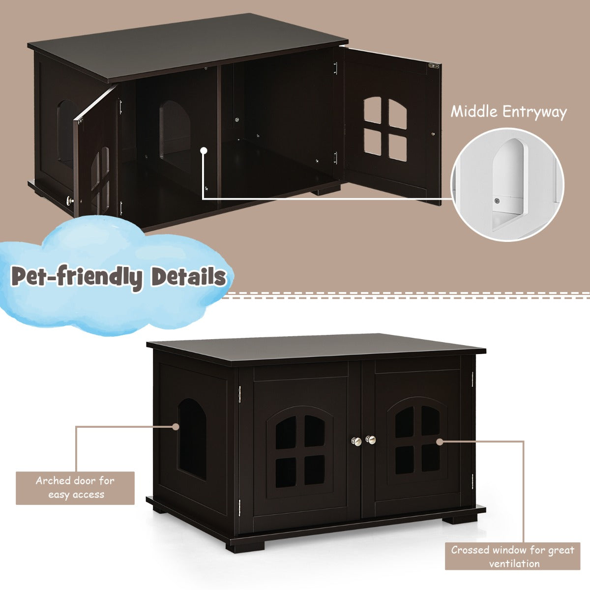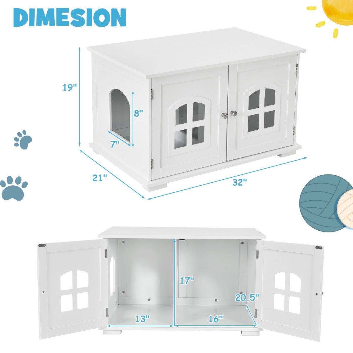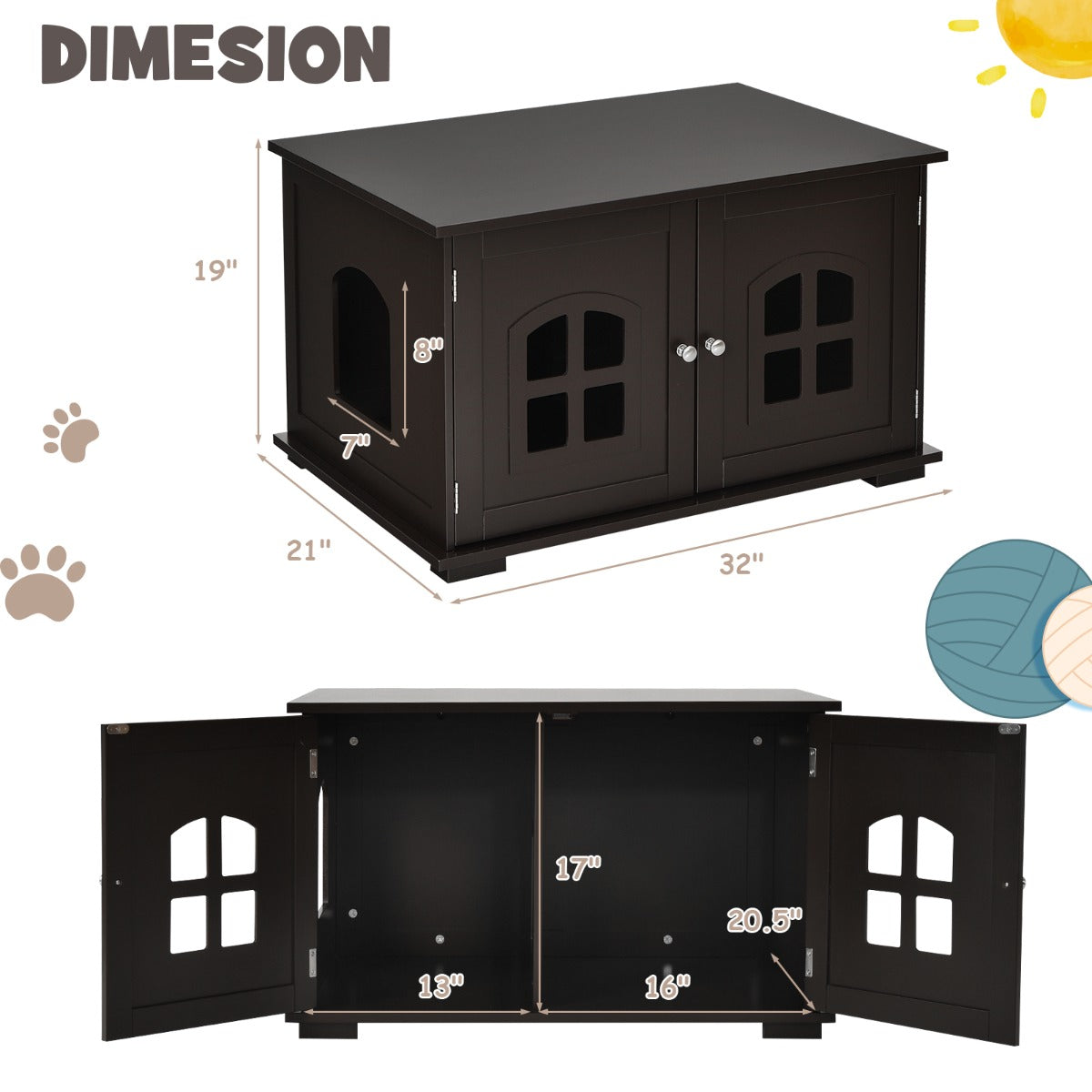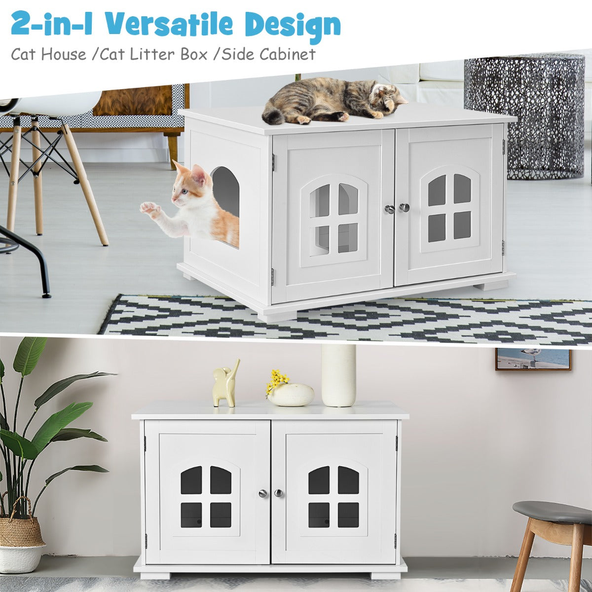 Aussies Market Cat Hidden Litter Box Enclosure with Cross Windows& Double Door
