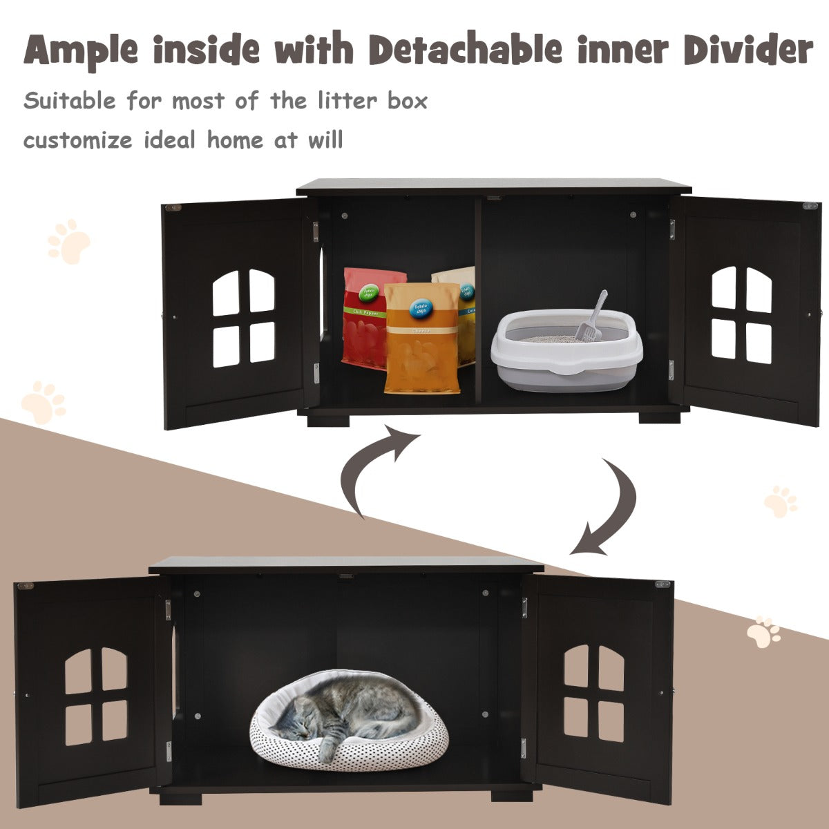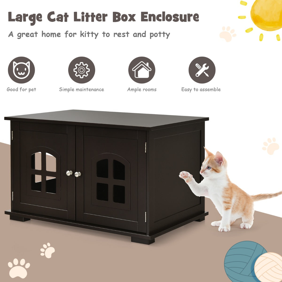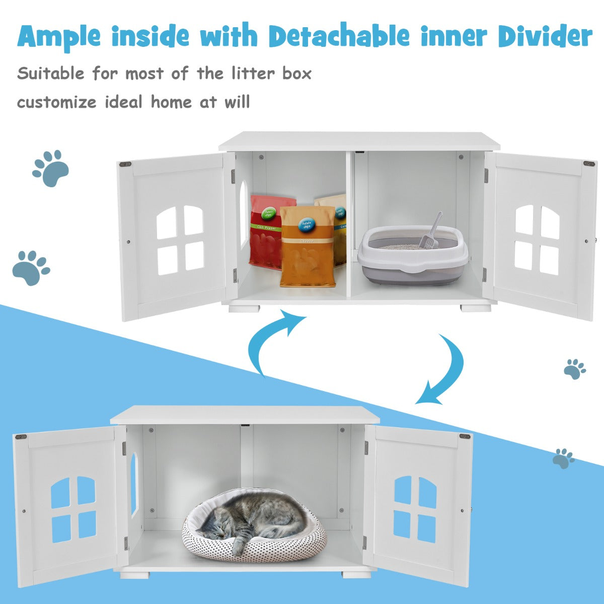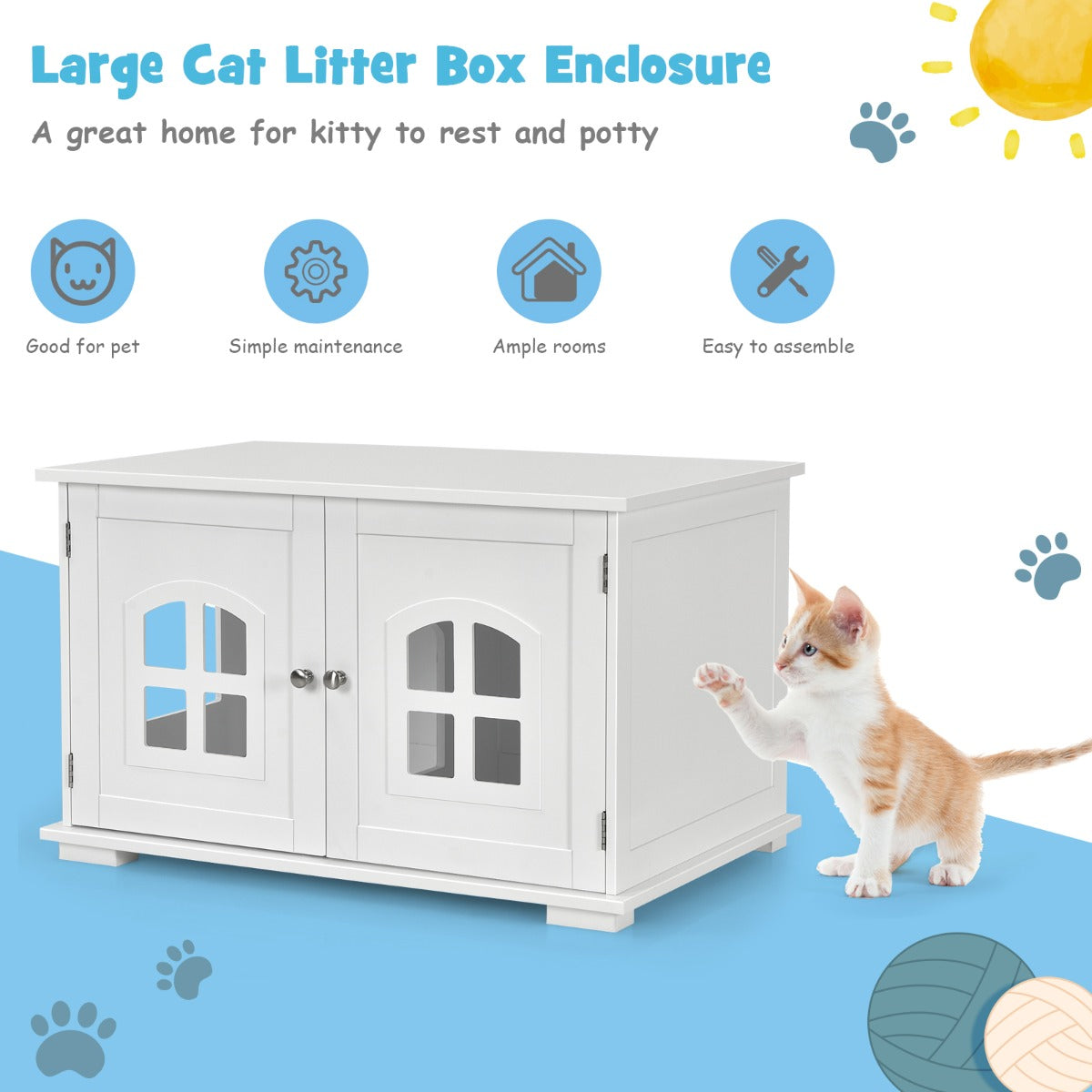 Give your cat friends a sweet home with our cat litter box enclosure. Our cat house has ample rooms for cats to walk around inside or for you to place litter boxes, mats, cat beds, and more. 2 storage doors...View More