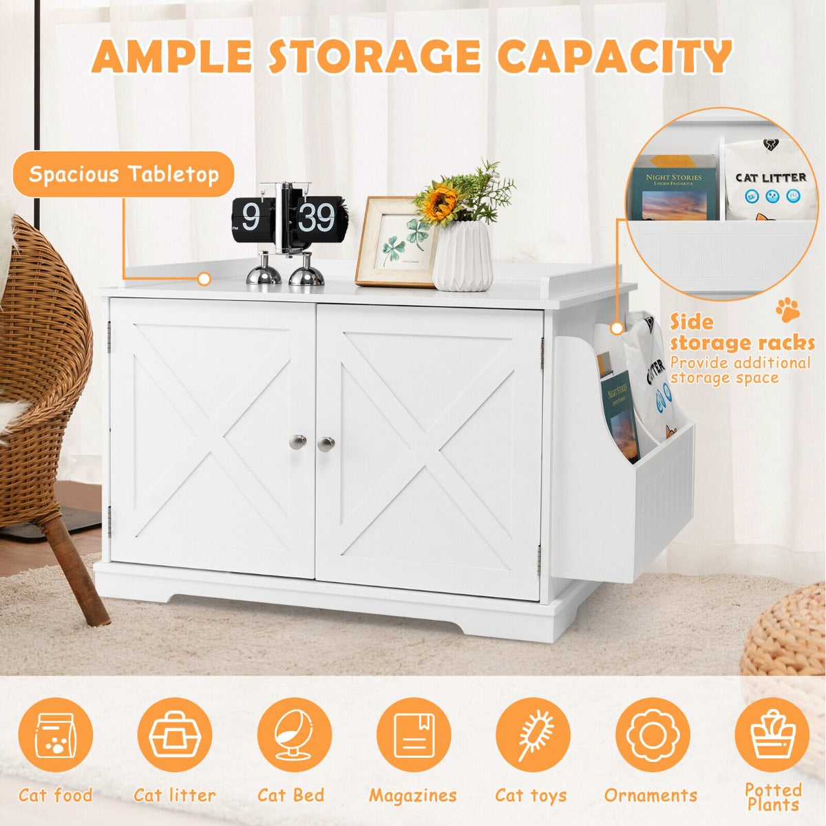 Can be used as a cat litter box enclosure, cat house, nightstand, end table, and more
