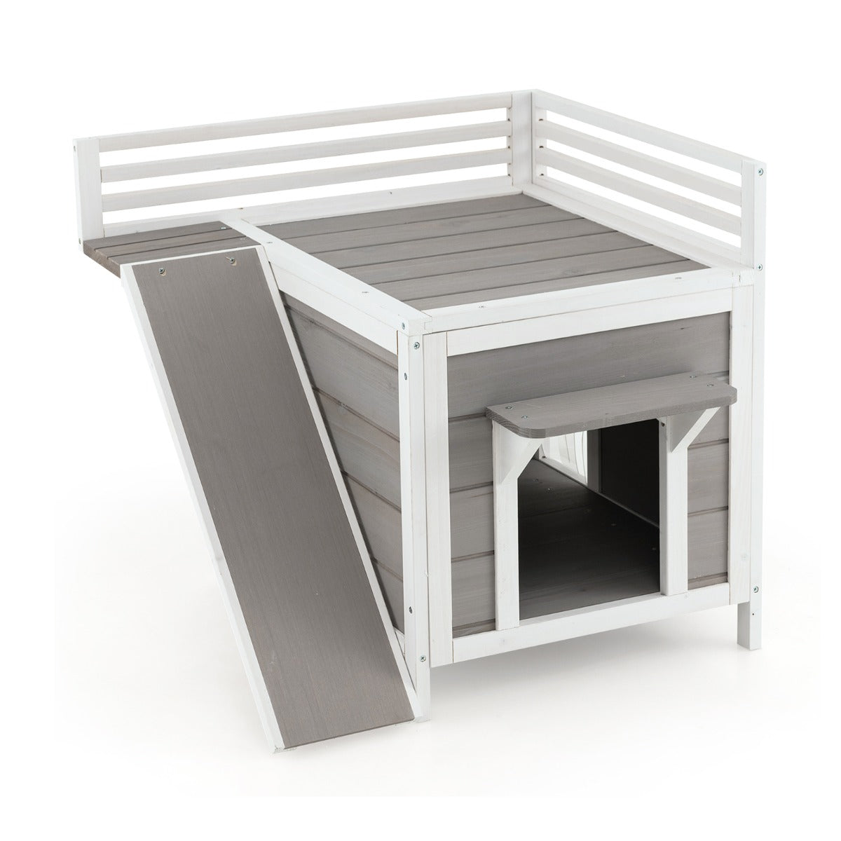 Spacious Space with Side Ladder: This cat shelter is designed with a wide cat balcony, a Cat Condo with Escape Doors, and a Wide Side Ladder for ample space. The cat feeding station on the upper level can keep dogs out of the cat food, and the side ladder can provide an entertainment center for cat playing.