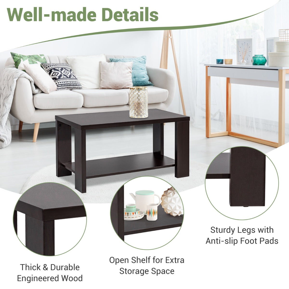 Are you still looking for a nice coffee table? If so, this 2-tier vintage coffee table is highly recommended to you. Constructed of high-quality engineered wood with a premium melamine finish, this sofa table is stable, wear-resistant, heat-resistant, waterproof and...View More